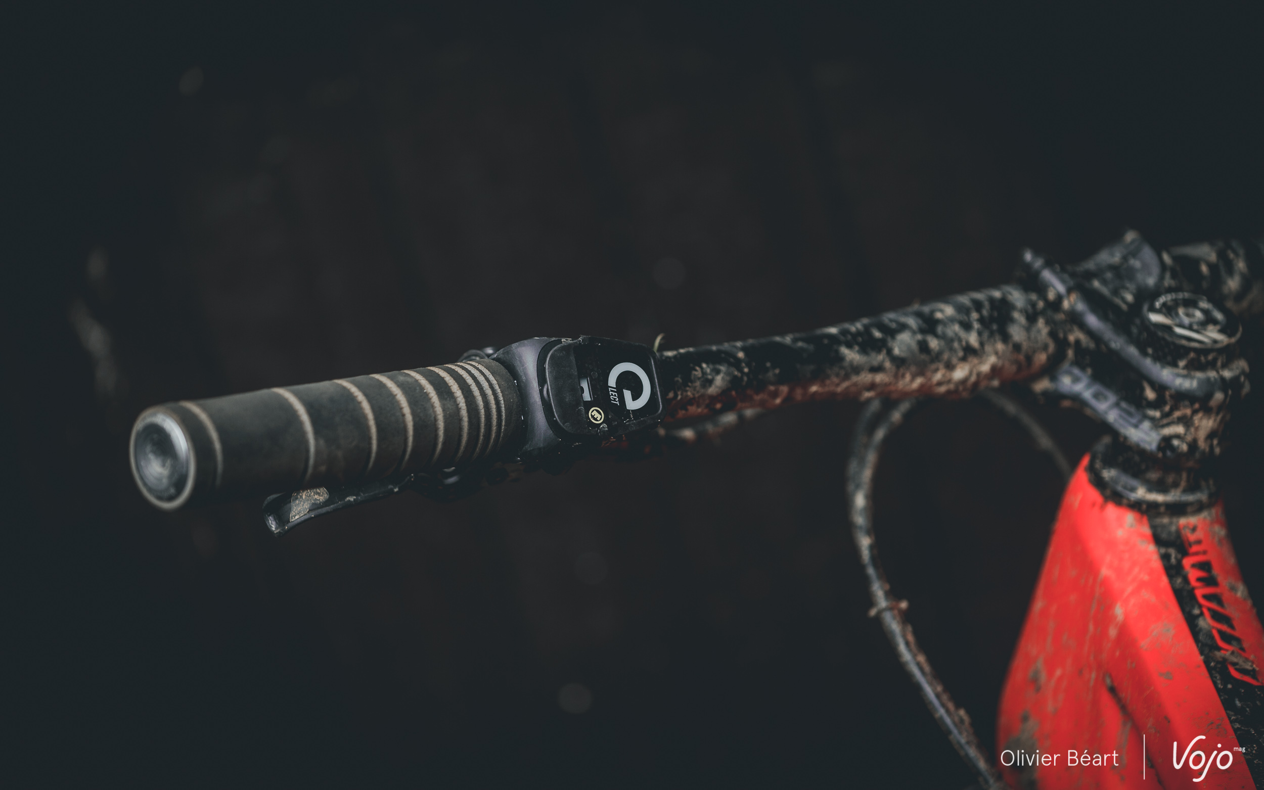 Si le montage et la synchronisation sont un jeu d’enfant, se servir de la tige de selle télescopique Magura Vyron l’est aussi. En début de sortie, vous appuyez une fois sur le bouton situé sous la selle, ou sur la commande au guidon pour la « réveiller », et le tour est joué, elle est prête à être utilisée. Une petite lumière verte sur la commande vous le signale d’ailleurs. On pourrait craindre qu’elle se remette en veille pendant une liaison entre deux spéciales, mais elle se réveille vite et nous ne nous sommes jamais retrouvés à l’entame d’une descente avec une tige de selle qui ne voulait pas répondre.