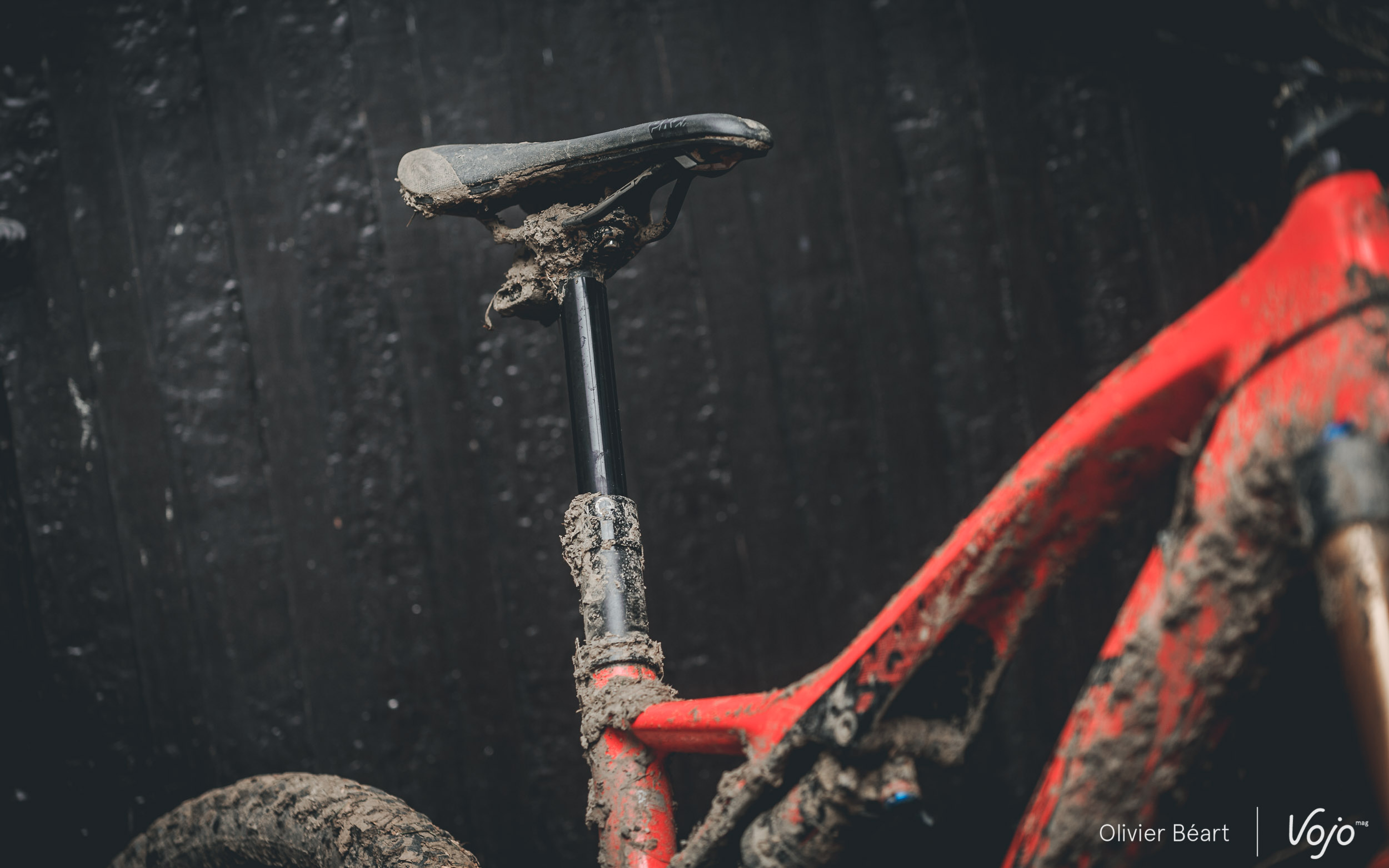 Très vite, on se rend compte de l’énorme point fort de cette Magura Vyron : sa facilité d’installation ! Quand il faut se prendre la tête avec des câbles à passer dans le cadre (ou, plus rarement, en extérieur) et un premier réglage bien souvent fastidieux, ici, c’est réellement du « plug and play ». On retire son ancienne tige de selle, on place la Vyron… et le tour est joué ! Ou presque : il faut synchroniser la tige et la commande, mais l’opération est simple et bien expliquée dans le mode d’emploi.