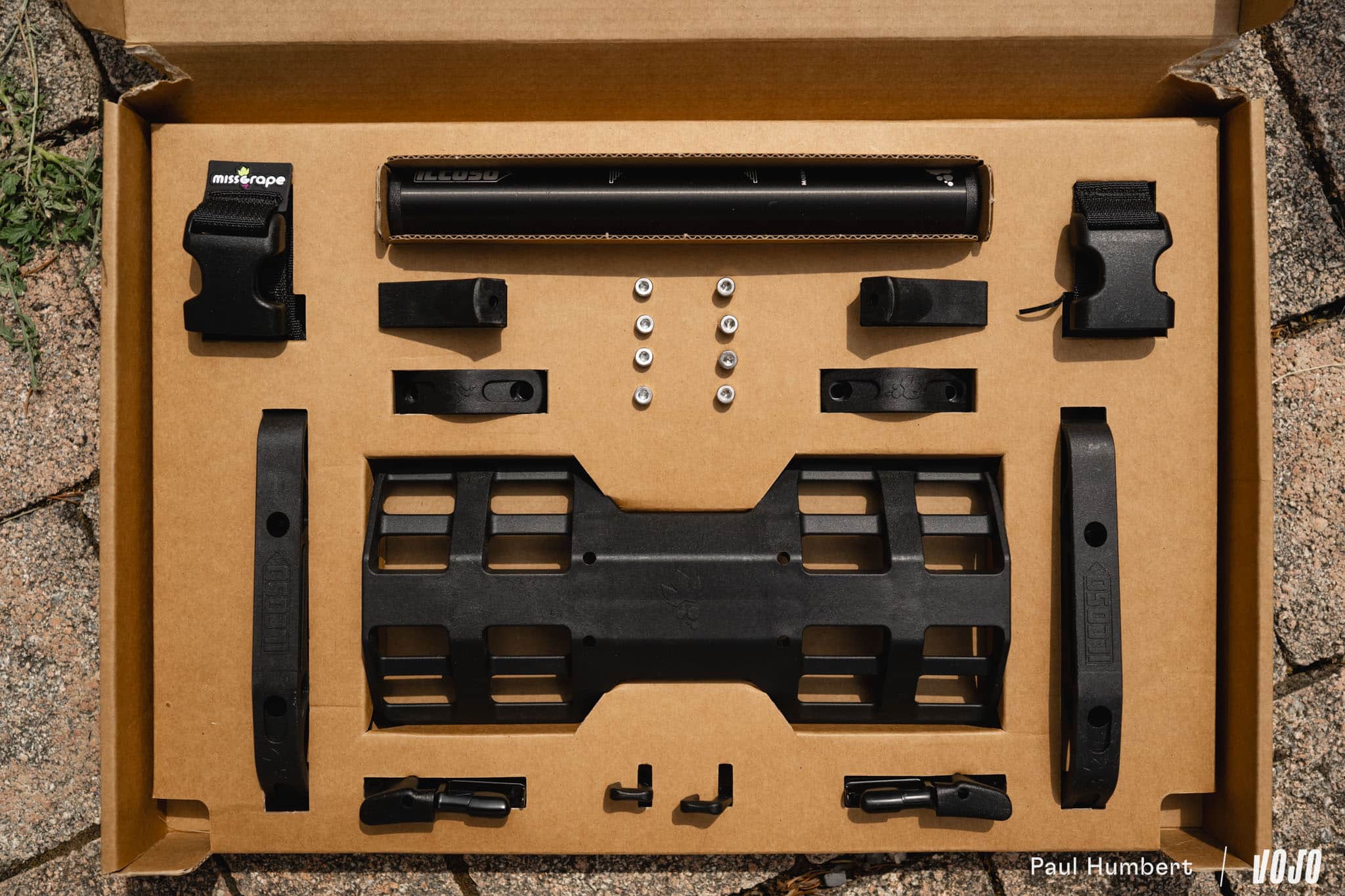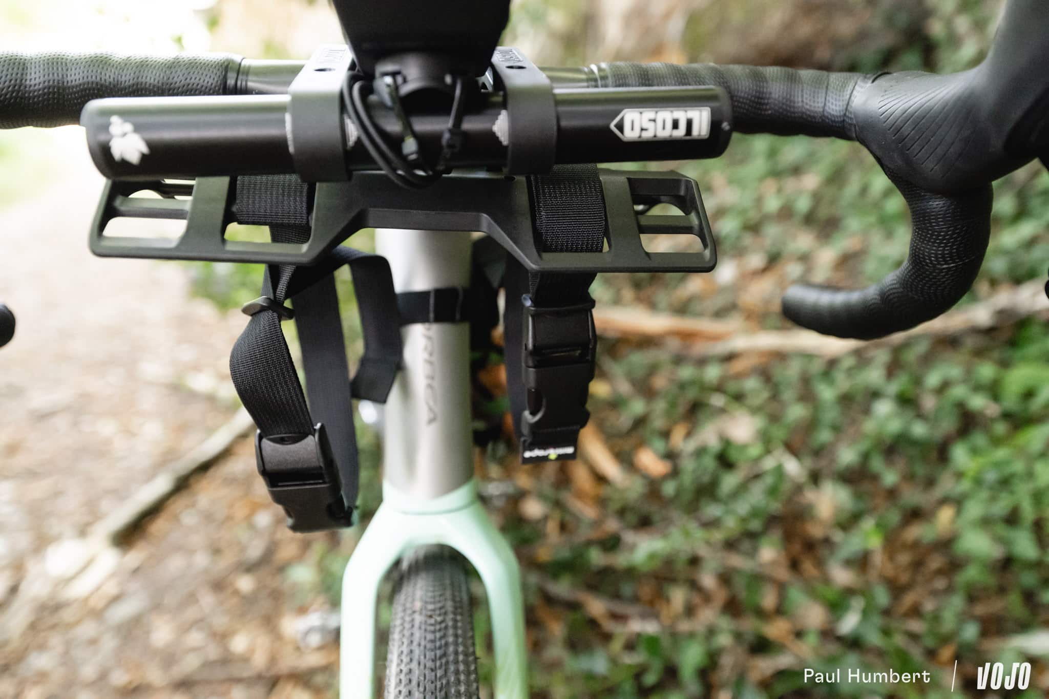 Avant de partir à l’aventure sur les chemins, le Missgrape Ilcoso nécessite une petite période de rodage pour trouver ses bonnes positions de serrage, la bonne position de la structure, les adaptateurs pour accessoires… Mais une fois que vous êtes au point, c’est une excellente solution pour transporter un sac à l’avant de votre vélo, sans frottement, sans ballotement, et avec une facilité d’accès à votre sac. C’est devenu un « must have » de l’aventure gravel. On imagine qu’une déclinaison en 35 mm sera facile à produire, et elle s’ouvrira ainsi à un public de vététistes qui ne peuvent pas facilement utiliser de sacoches de cadre ou de selle.