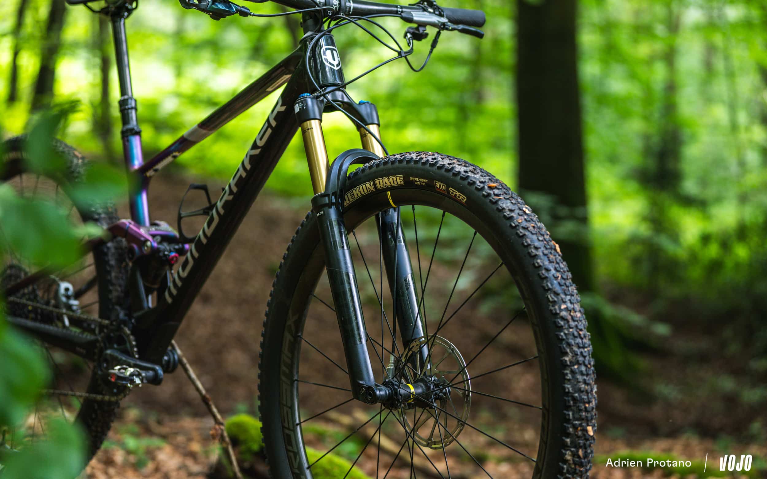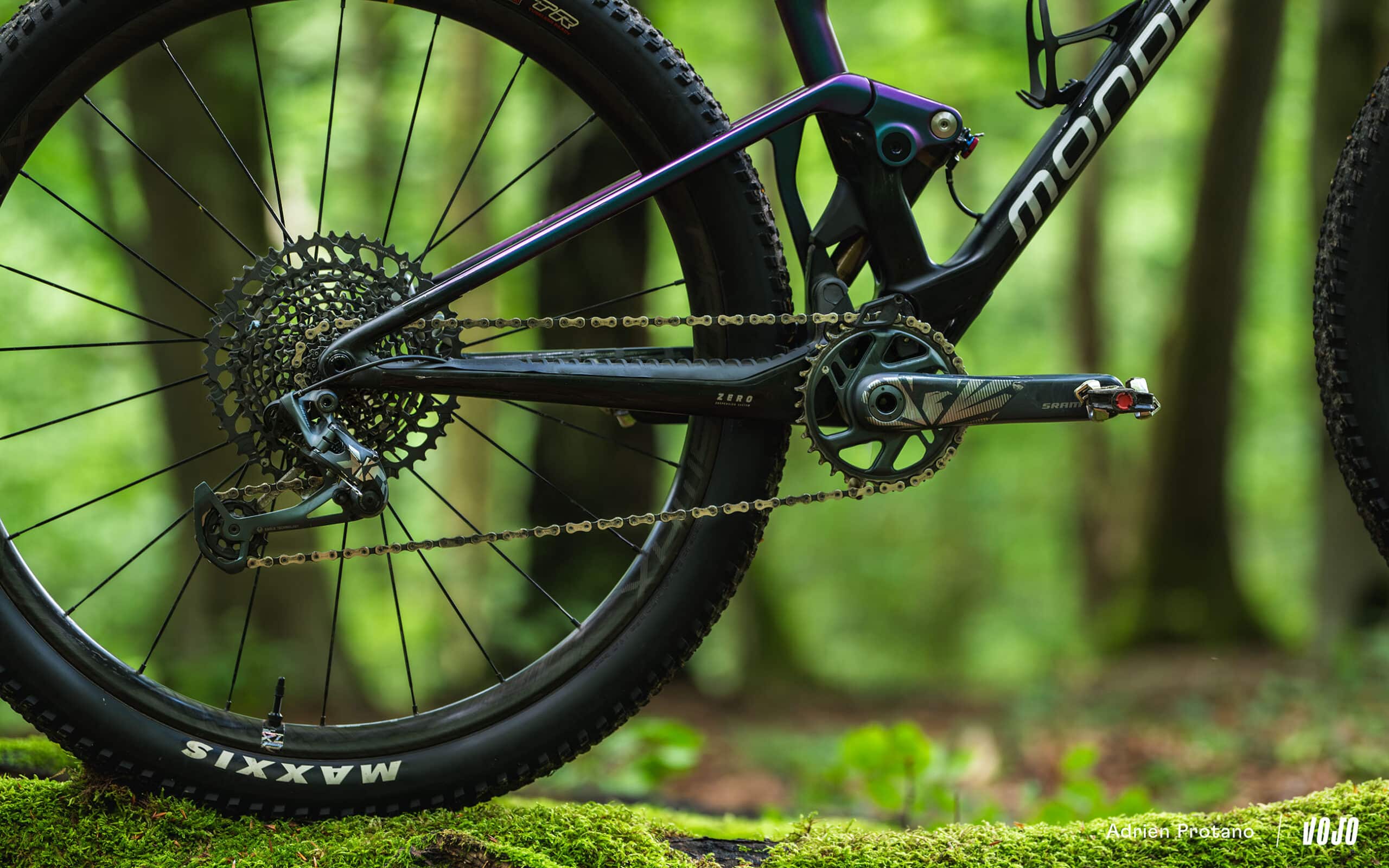 Du côté du vélo complet, notre modèle d’essai, le Mondraker F-Podium RR tarifé à 7999 € pointe à 11,78 kg (en taille M, sans pédale, mais avec porte-bidon). Un score qui le place loin des meilleurs de sa catégorie… À titre de comparaison, dans le même ordre de tarif, le Specialized Epic 8 Expert (7500 €) est à 11,10 kg, le Scott Spark RC World Cup TR (7999 €) affiche 10,9 kg et l’Orbea Oiz XTR Team (7999 €) a été pesé par nos soins à 10,6 kg. Mais c’est plutôt assumé par Mondraker, qui a privilégié une suspension sans concession et des équipements plutôt costauds, quitte à prendre quelques grammes au passage.