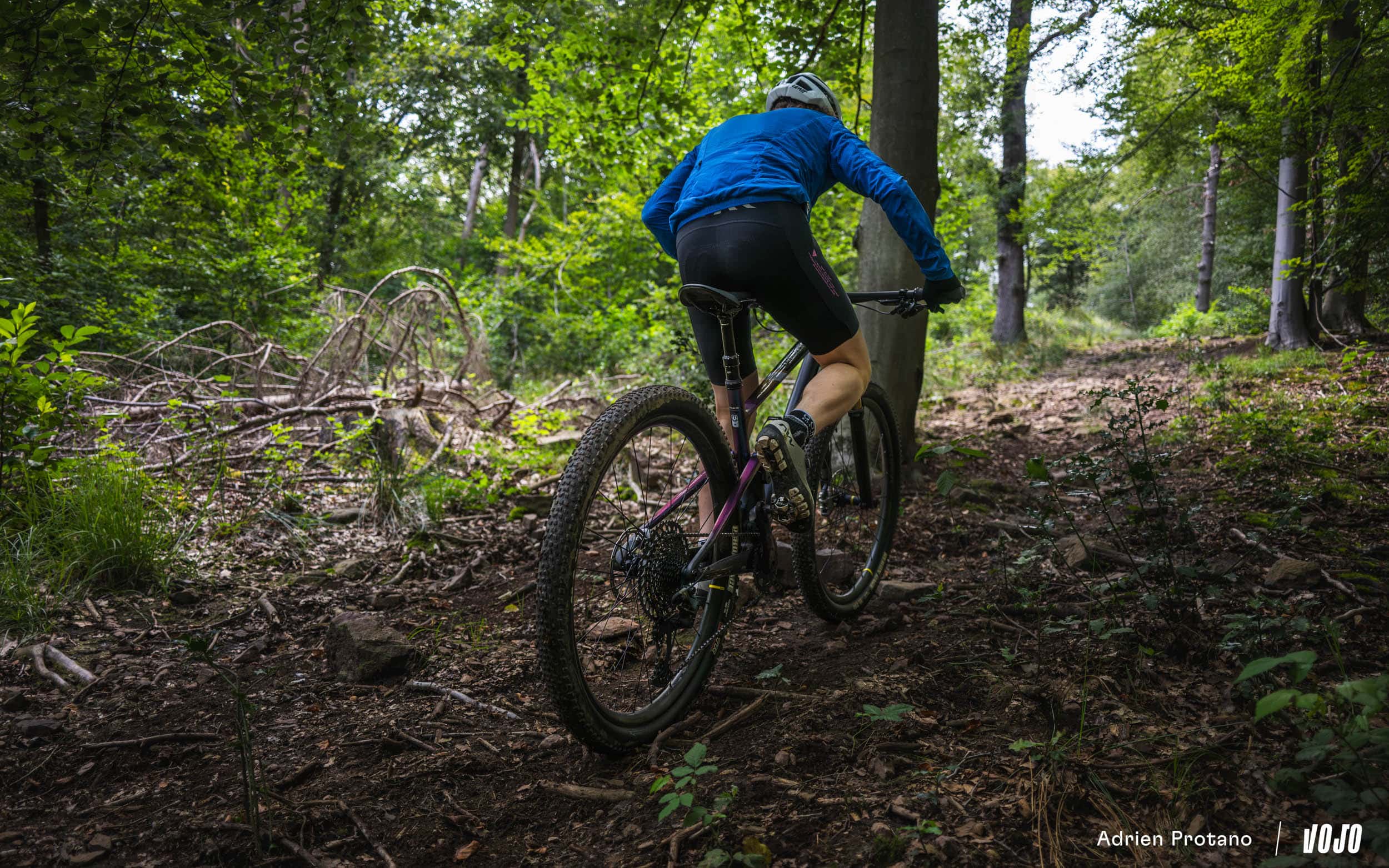 Cette position intermédiaire nous a également semblé tout indiquée sur les singletracks mixtes (oscillant entre montées et descentes, et/ou cassant mais sans gros dénivelé). Celle-ci permet d’avoir un vélo qui offre du confort sur les petits et moyens impacts, tout en gardant une bonne assiette et en permettant d’envoyer les Watts pour faire défiler le paysage.