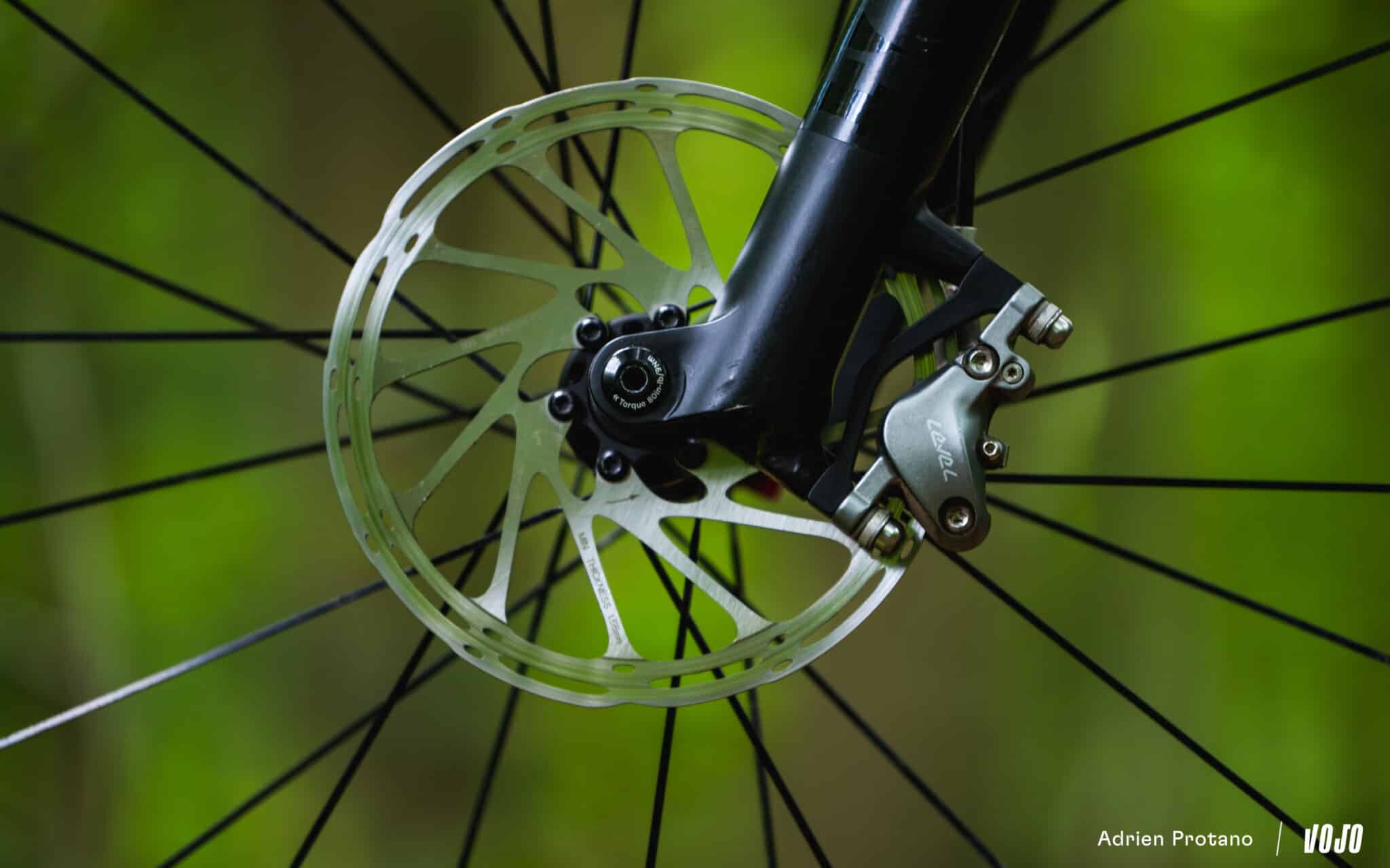 Sram est également présent au niveau du freinage avec une paire de Level Bronze Stealth à deux pistons, associés à des disques de 180 mm à l’avant et 160 mm à l’arrière. Sur le terrain, le freinage est suffisant, mais vu les capacités de l’engin en descente, peut-être que la version 4 pistons aurait été plus appropriée.