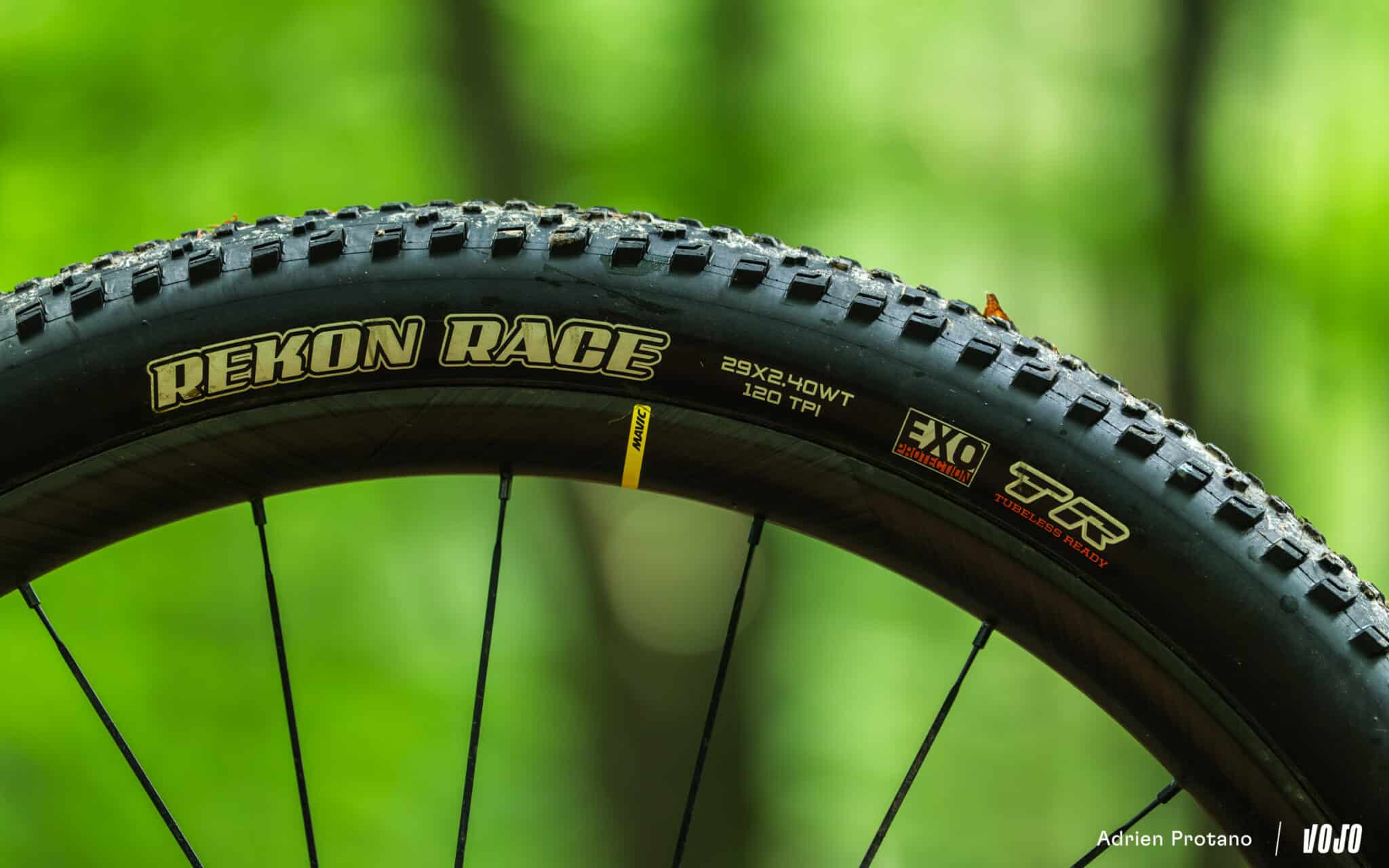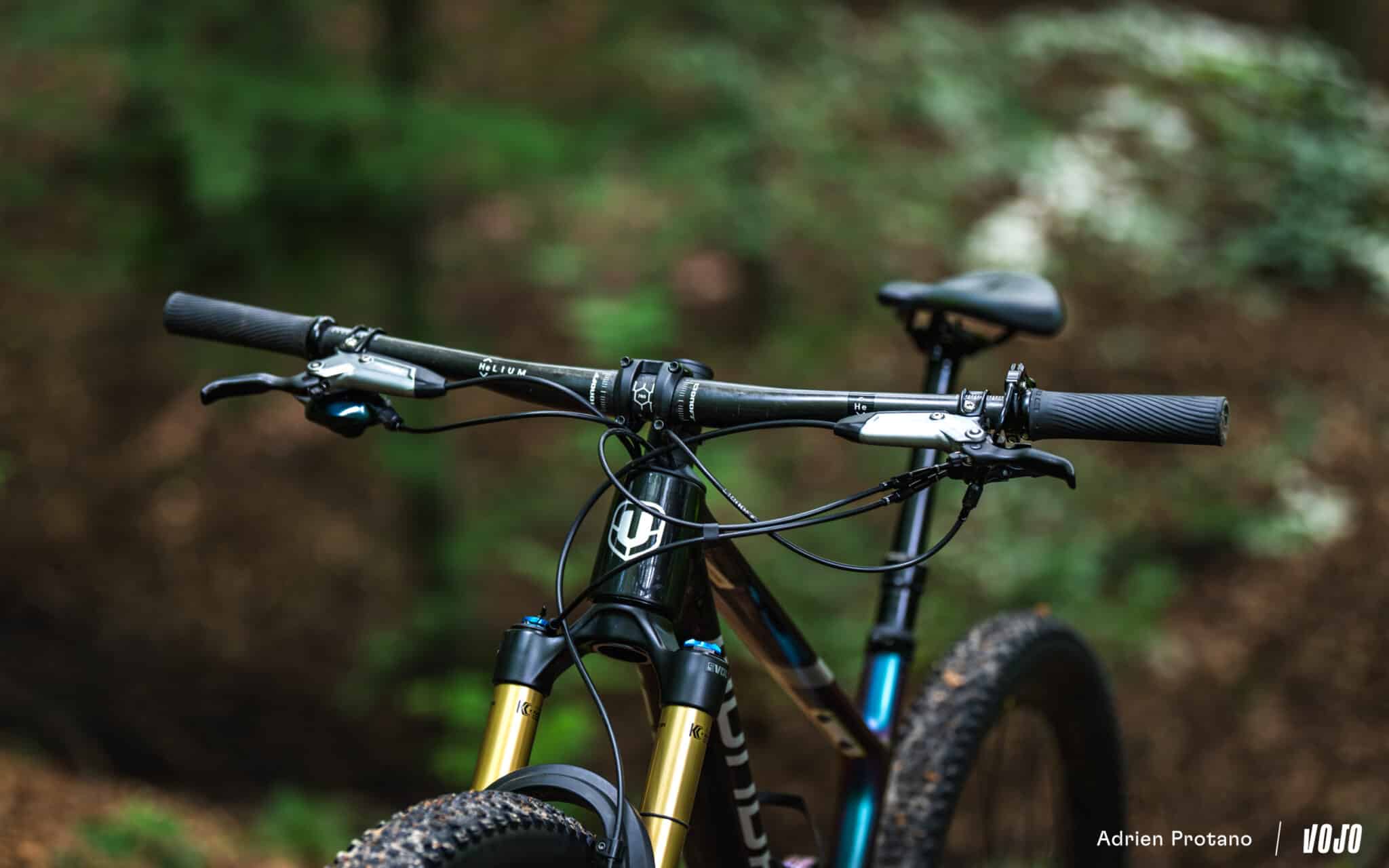 Le train roulant est composé d’une paire de roues Mavic Crossmax XL R en carbone, avec une largeur interne de 30 mm. Celles-ci sont chaussées de pneumatiques Maxxis Rekon Race en 2.4 (carcasse EXO). Même si les Mavic sont plutôt performantes et homogènes dans leur comportement, ce ne sont clairement pas les plus légères du marché et il y a du poids à gratter à ce niveau dans le cadre d’un éventuel upgrade.