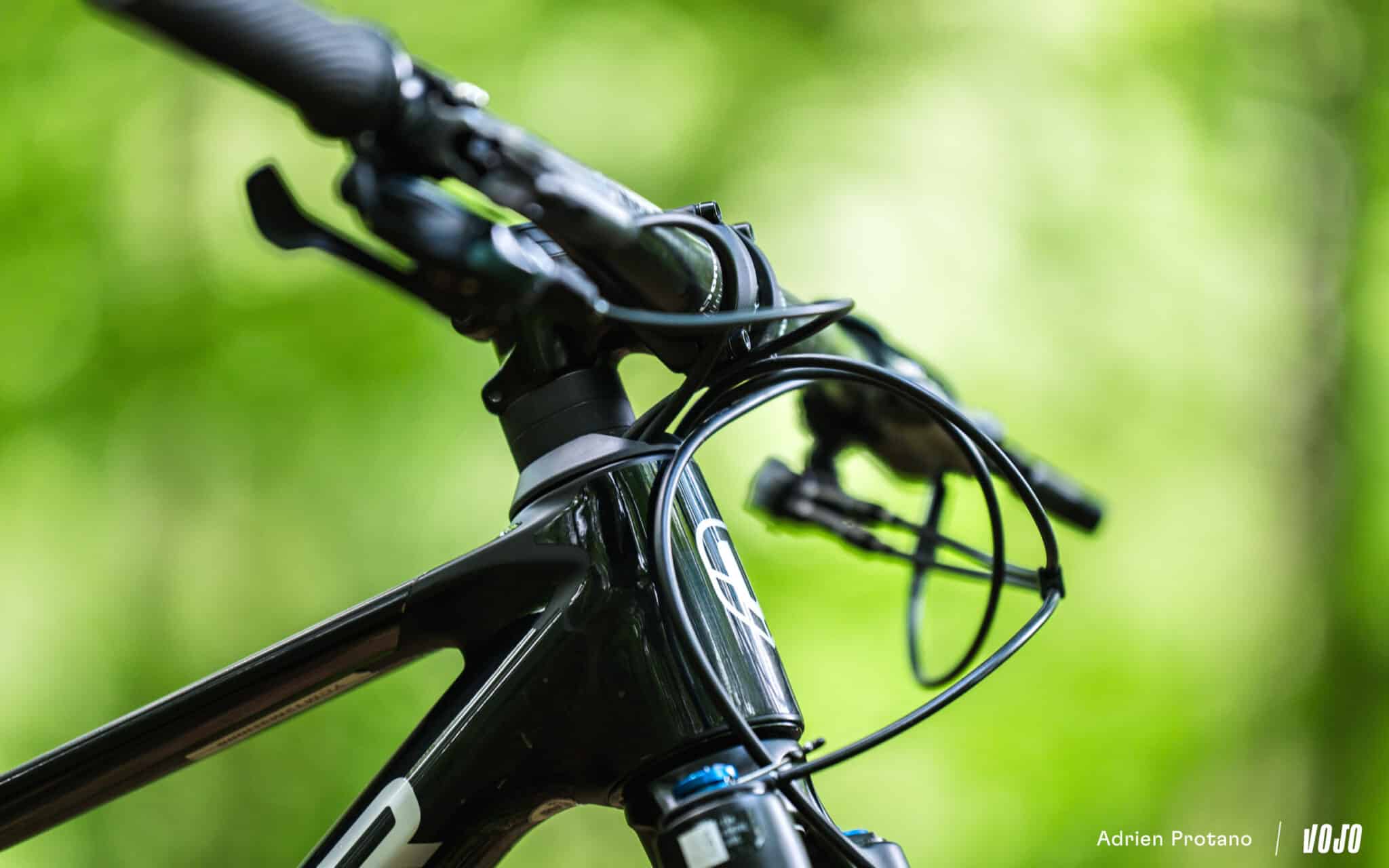 Sûrement moins pratique, mais plus esthétique, Mondraker a opté pour un passage interne des gaines dont l’entrée se fait désormais au sein du jeu de direction.