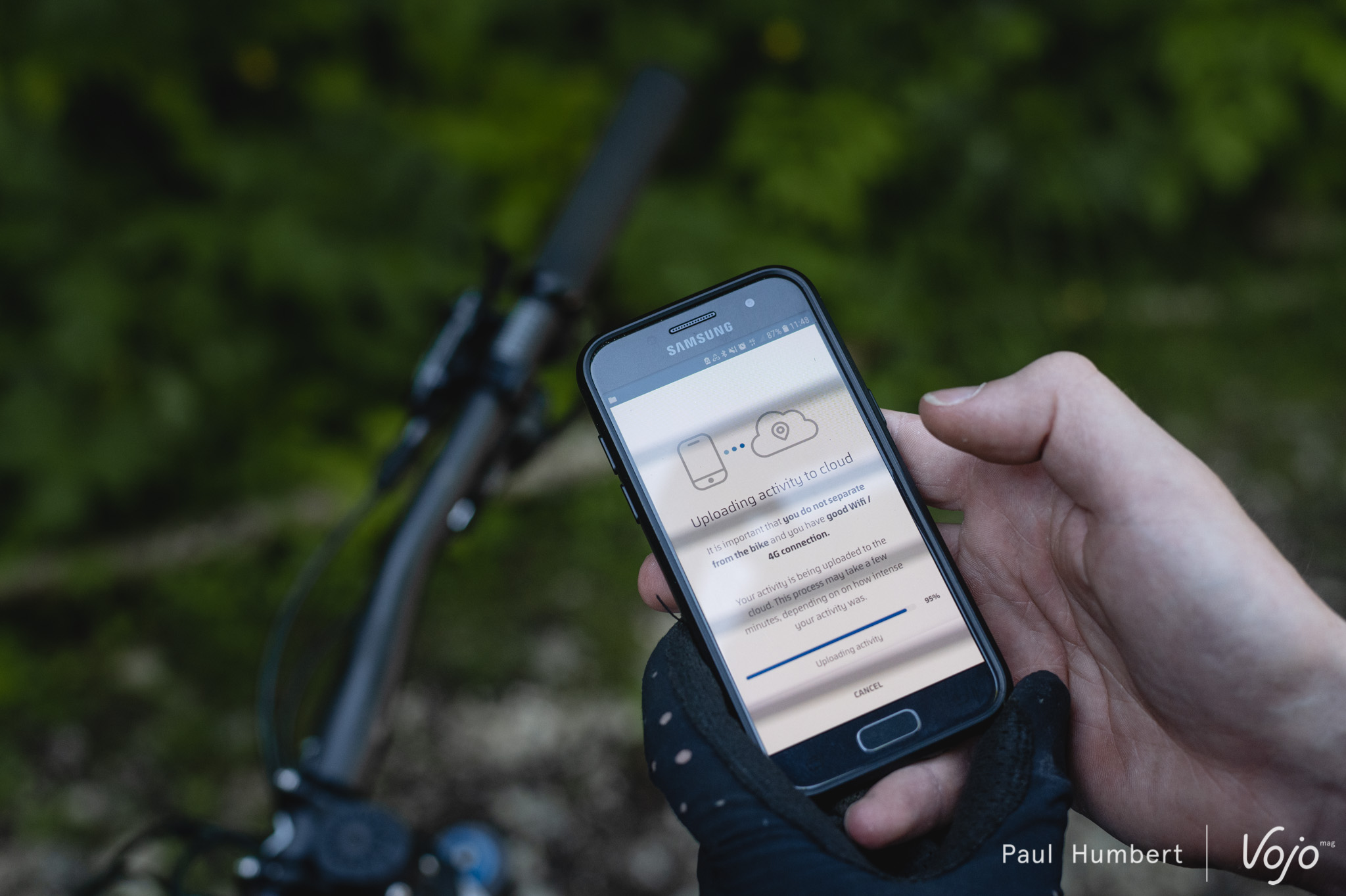Les capteurs rentrent en jeu juste après. En effet, le système permet de vérifier que la pression conseillée par l’application donne le sag souhaité. Pour cette étape de vérification, il vaut mieux être deux : vous montez sur votre vélo, vous ne bougez plus et vous laissez votre téléphone à quelqu’un d’autre qui lance le processus. C’est déjà un peu plus intéressant !