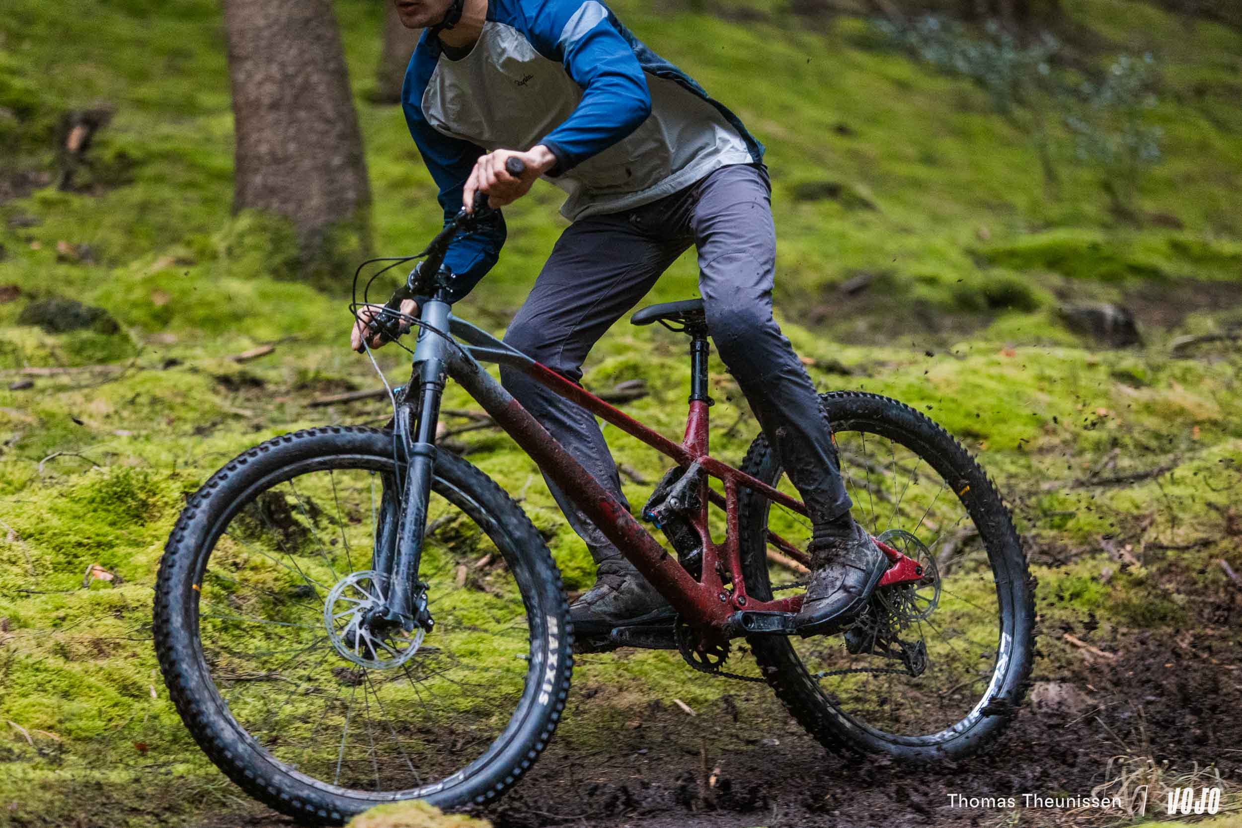 Le train roulant est composé de roues maison de 25 mm de largeur interne (MDK-XP1 29 TLR) et de pneumatiques Maxxis Ardent en 2.4 de section, gomme dual et carcasse EXO. Notons que le cadre est effectivement en mesure d’accueillir des pneus en 2.4, là où le Chrono est limité à une section de 2.2.