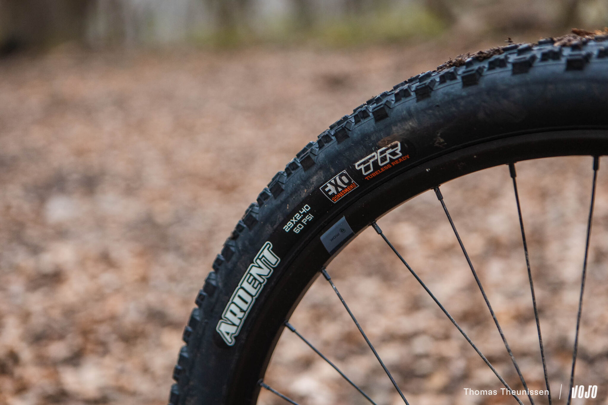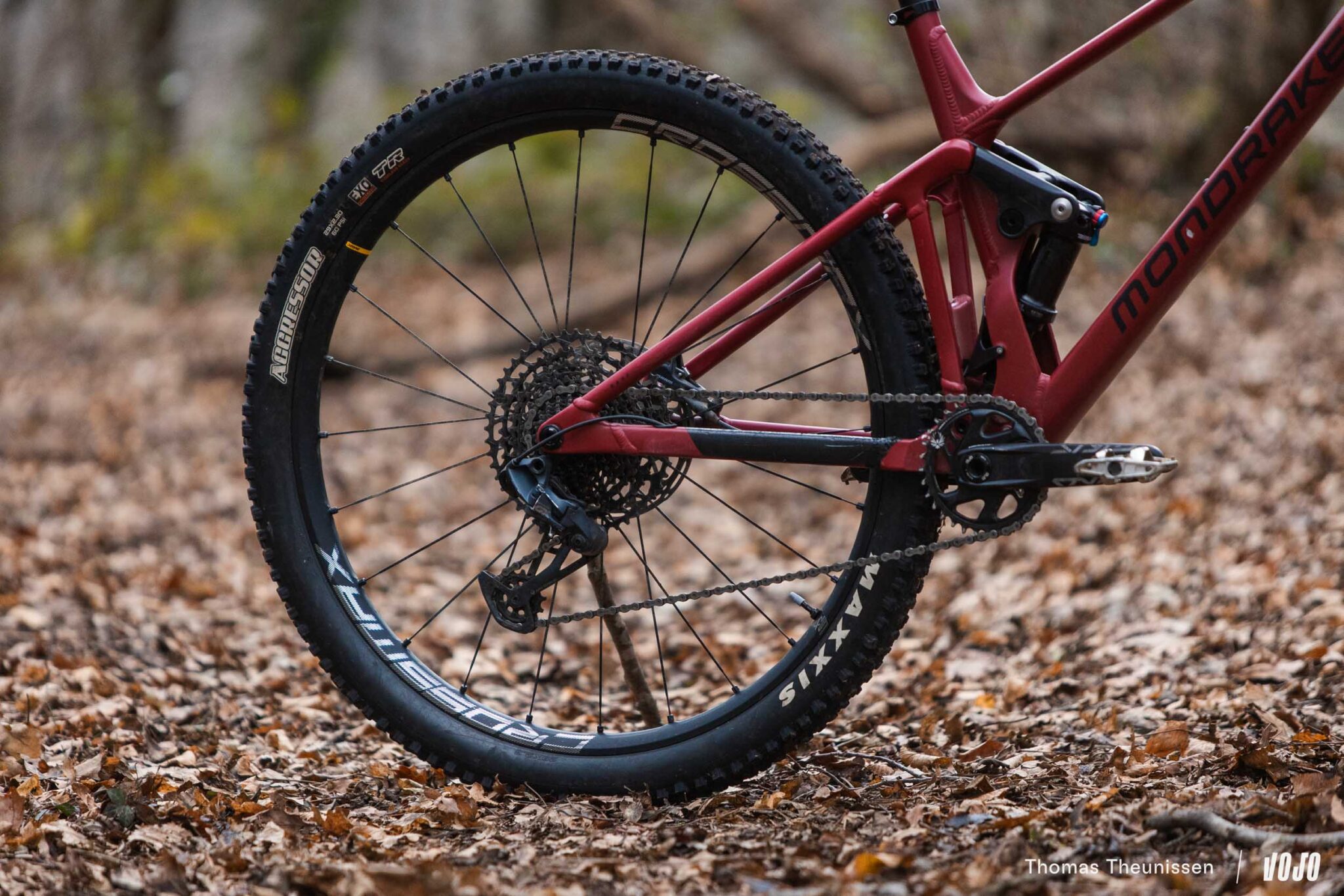 Le train roulant est composé de roues maison de 25 mm de largeur interne (MDK-XP1 29 TLR) et de pneumatiques Maxxis Ardent en 2.4 de section, gomme dual et carcasse EXO. Notons que le cadre est effectivement en mesure d’accueillir des pneus en 2.4, là où le Chrono est limité à une section de 2.2.