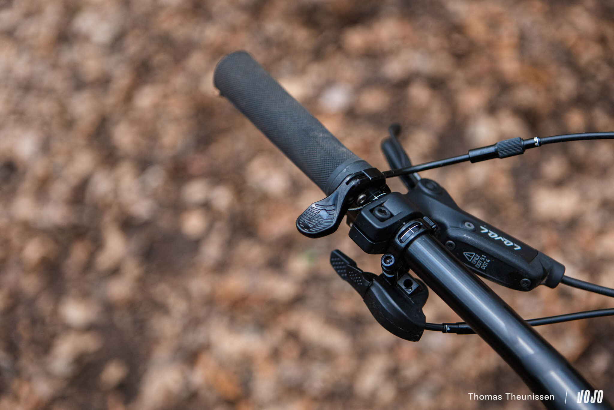 Au-delà du poste de pilotage maison de chez Mondraker, avec un cintre de 740 mm de large et une potence de 50 mm, remarquons que la marque espagnole a fait l’effort de doter le Chrono DC R d’une tige de selle télescopique de série !