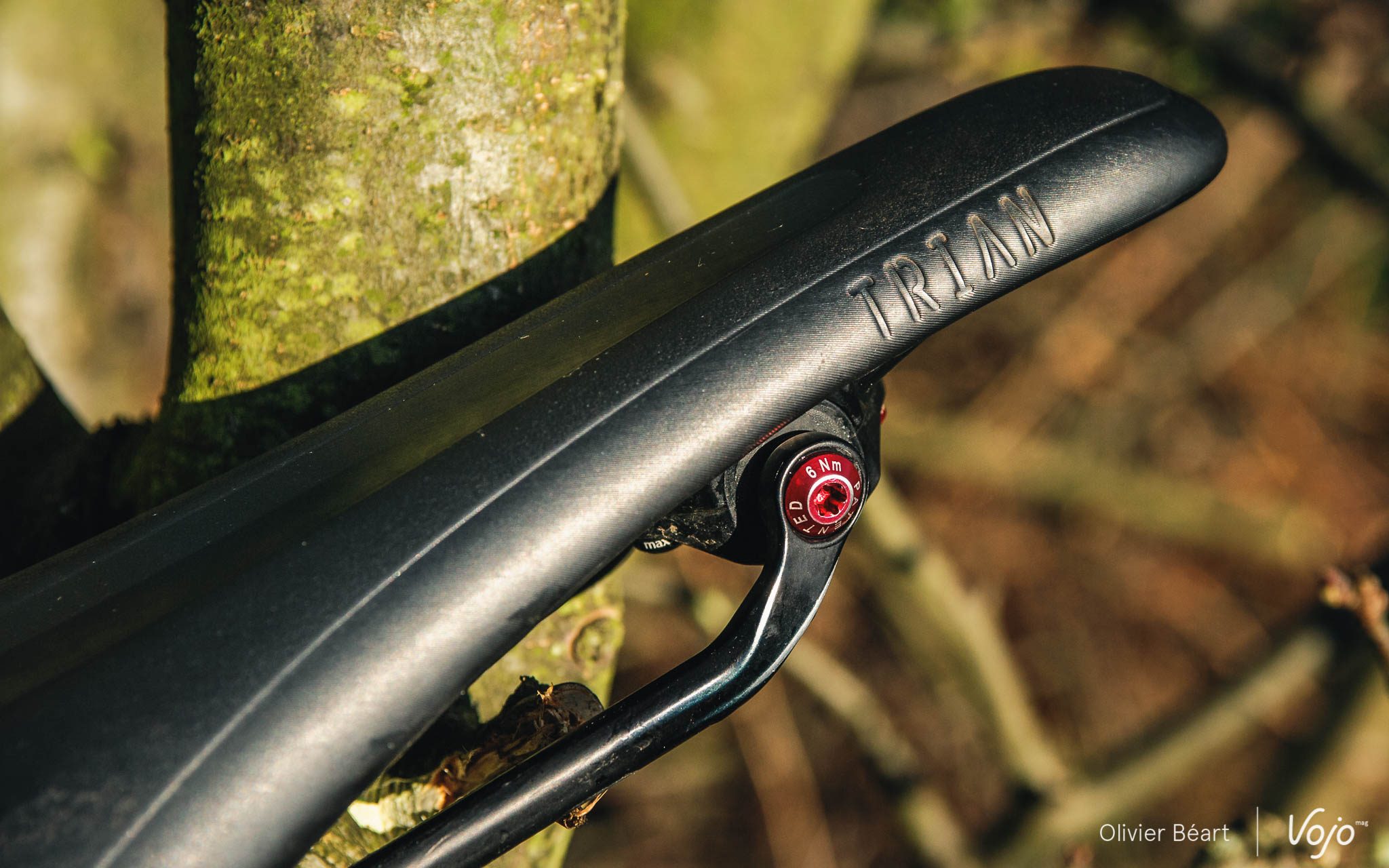 Livrée dans un original sac plastique, la selle Morgaw Trian est très bien finie et son look est encore plus flatteur si on opte pour de la visserie colorée, même si le revêtement de l’assise fait un peu plastique. Au montage, il conviendra de faire attention à la forme des rails car ceux-ci sont ovalisés (9mm de haut et 7mm de large), ce qui peut poser des soucis de compatibilité avec le chariot de certaines tiges de selle.