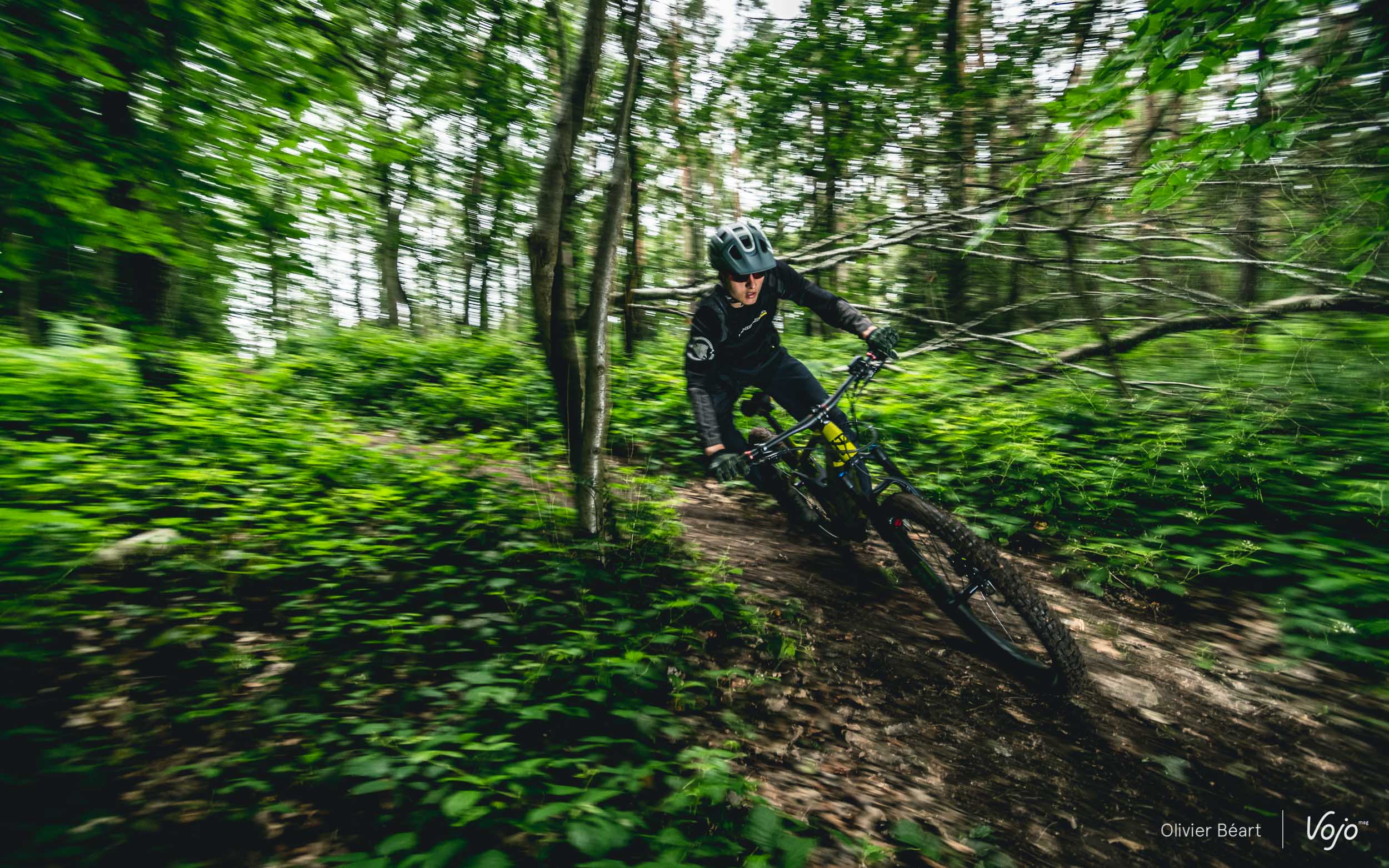 Ce n’est pas un DH, mais il accepte aussi sans souci qu’on l’emmène jumper ! Là, l’équilibre parfait des masses est un énorme atout par rapport à des ebikes trop chargés de l’avant à cause d’une batterie qui remonte bien trop haut dans le tube diagonal. Ici, rien de tout cela, le vélo se pilote (presque) comme un gros bike d’enduro et il met d’emblée vraiment en confiance… ce qui permet d’ouvrir les gaz et de s’amuser comme un petit fou.