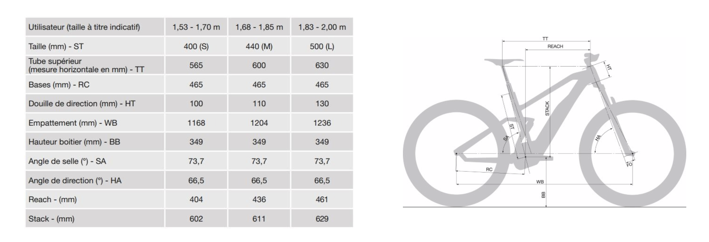 On sort un peu des recommandations de la marque, mais on se retrouve avec un vélo plus long (reach de 460mm) qui se montre plus adapté à un pilotage pointu, où on va rechercher de la stabilité à haute vitesse quitte à devoir brusquer un peu plus le vélo dans les changements de direction. Comme nous le verrons plus loin, nous n’avons pas regretté ce choix, cohérent sur un modèle Race au débattement plus généreux et destiné à un usage plus engagé que le Trail, pour lequel on restera plus dans les recommandations de la marque au niveau des tailles. Par contre, on pourra regretter qu’il n’y ait que 3 tailles au catalogue, ce qui n’offrira pas aux grands cette possibilité de jeu sur les tailles en optant pour un XL.
