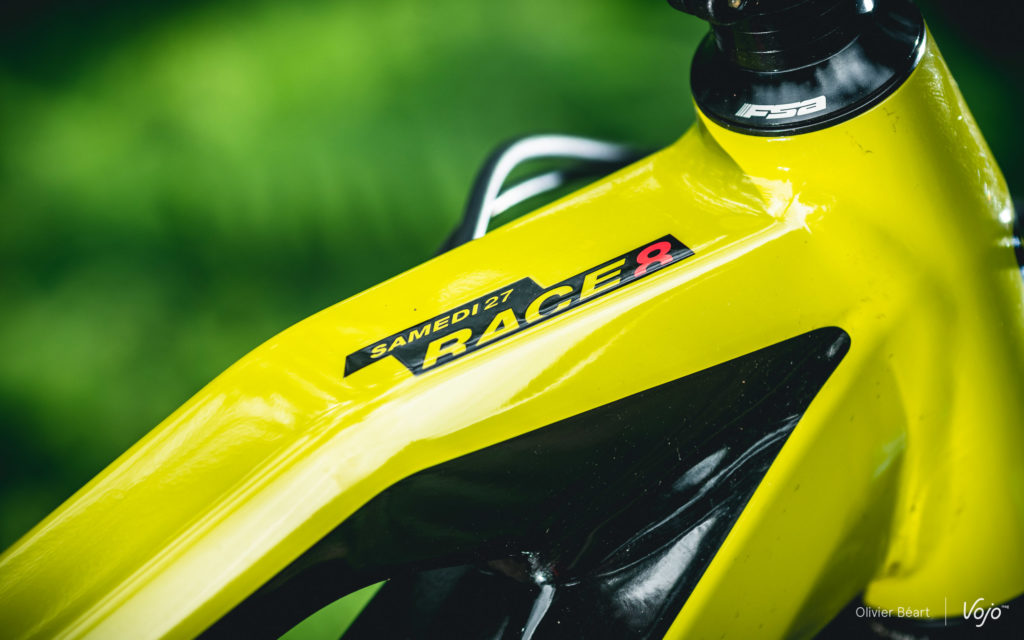 Depuis notre premier essai du Moustache Samedi 27 Race 8, que nous avions opposé à son frère en carbone Race 9 début 2017, le châssis n’a pas beaucoup changé, mais l’équipement a été raffiné et le modèle a même baissé de prix, passant de 5399€ à 5199€ aujourd’hui. Nous n’allons pas vous refaire en détails toute la présentation statique du modèle afin de nous concentrer sur les impressions au guidon, et nous vous renvoyons vers nos articles déjà parus : le test Samedi 27 Race 8 vs Race 9 – le test du Samedi Trail 6
