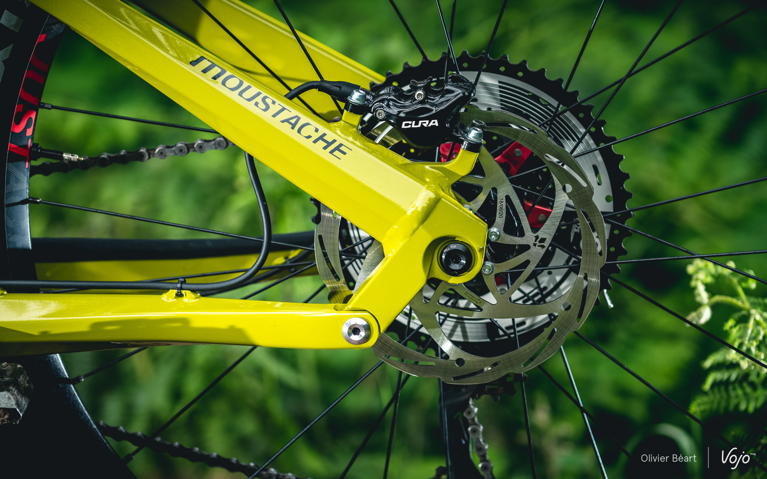 Si les roues carbone permettent sans doute de gagner un peu en rigidité et en légèreté, la dernière génération de jantes alu Moustache offre déjà des performances largement suffisantes à nos yeux. D’une largeur de 35mm, elles sont aujourd’hui bien plus résistantes que les premiers modèles que nous avions pliés trop facilement lors de notre premier essai paru en 2017.