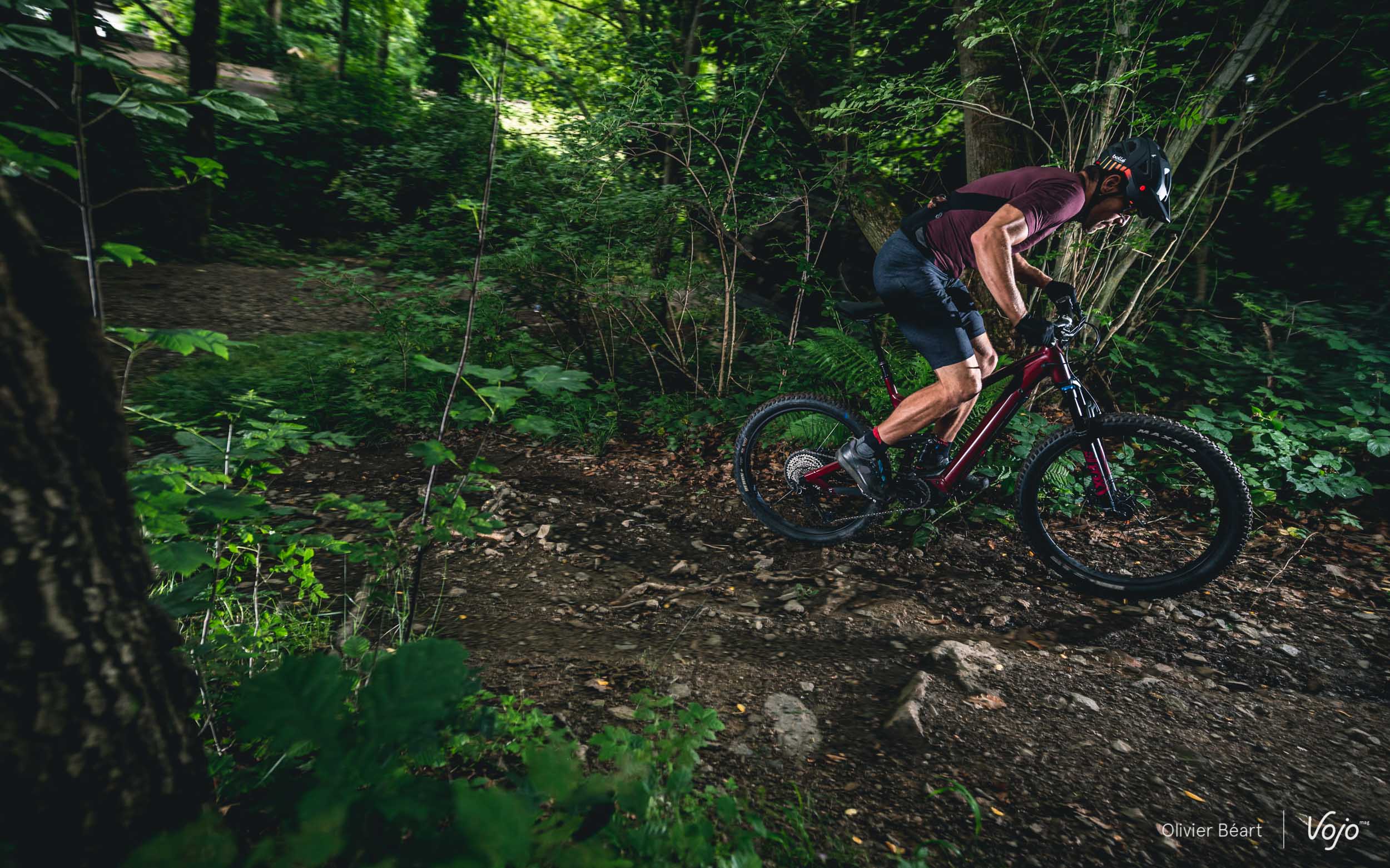 En plus de nos testeurs habituels et du coordinateur du test issu directement de l’équipe rédactionnelle Vojo, nous avons aussi tenu à faire essayer ce vélo à deux bikers moins expérimentés mais tout aussi passionnés. Maxime, 30 ans et jeune papa, ainsi que Michel, 50 ans, ont découvert le VTT récemment à travers le VAE qu’ils pratiquent régulièrement en mode rando. Ils étaient donc tout indiqués pour tester avec nous ce Moustache Samedi 27 Wide 6 et pour le comparer, le premier à son Cube Stereo Hybrid et le second à son Scott Strike.