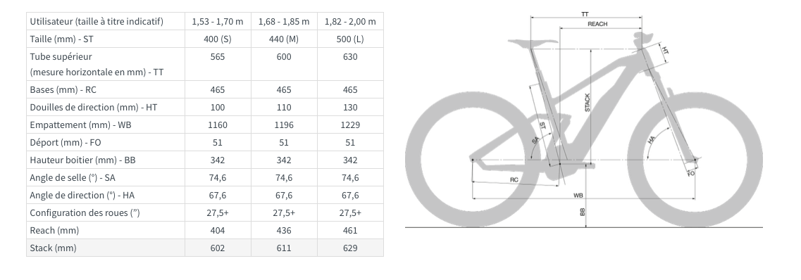 L’examen des chiffres montre quelques différences entre le Off semi-rigide et sont grand frère tout suspendu, le Trail. Si les angles sont très proches (67,7/67,6° pour la direction et 73,3/74,6° pour le tube de selle, mais les valeurs vont se rejoindre au SAG quand on sera assis sur la selle du Trail 6), le tout suspendu affiche un reach plus long, avec 436mm contre 398 pour le Off. Cela dit, nous verrons plus loin sur le terrain que cela ne se sent pas tant que cela.