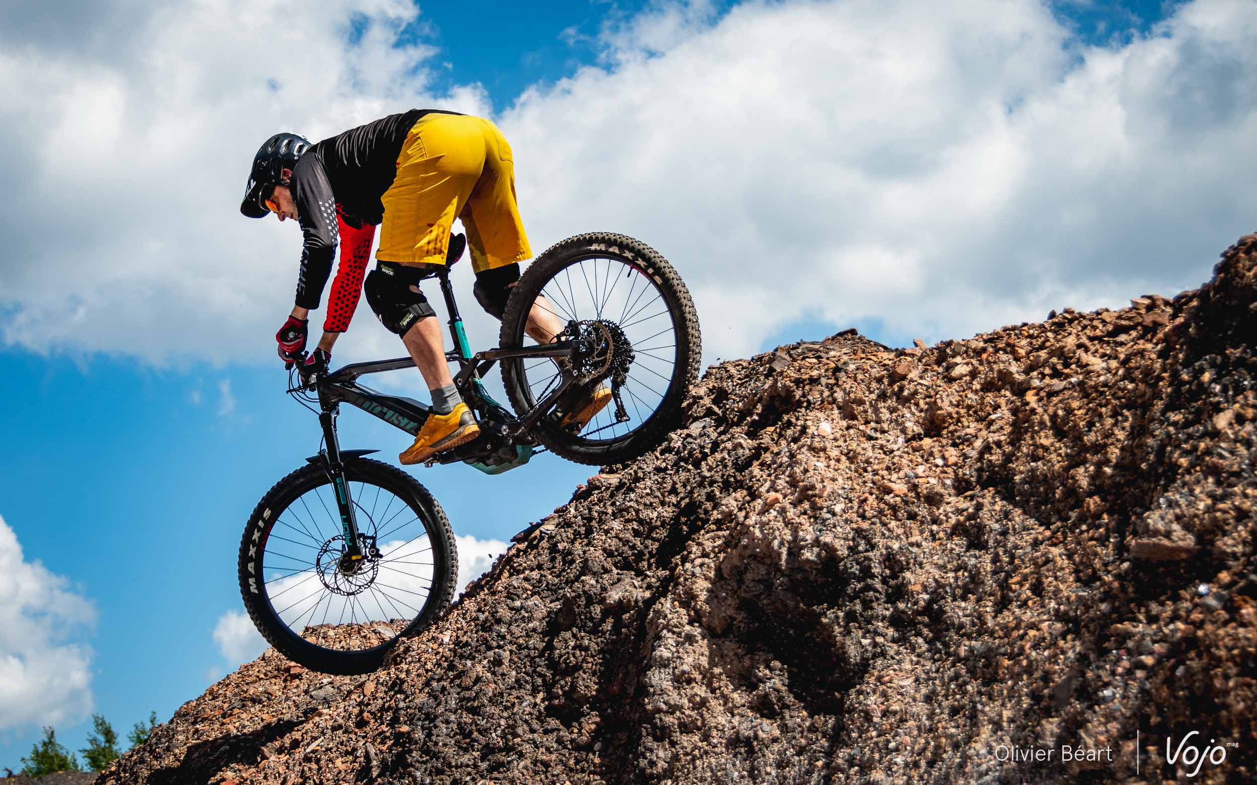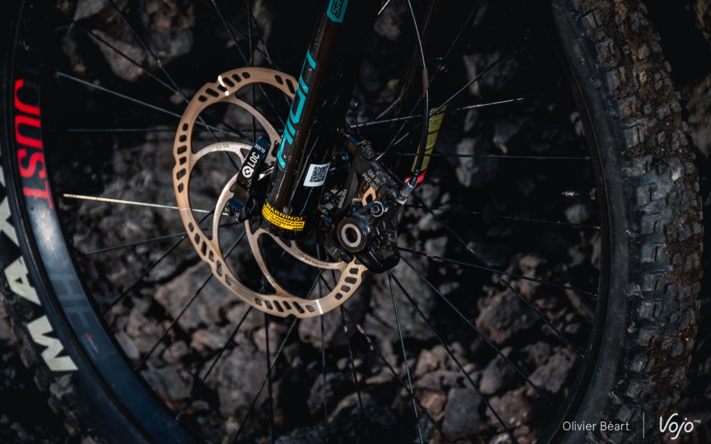 On va le dire une dernière fois, mais quand on ouvre les gaz en grand, la fourche est vite dépassée, donnant l’impression de dribbler et de mal maîtriser son rebond. Là aussi, il semble que la marque ait entendu les remarques et qu’one montée en gamme soit prévue pour la Saison 8 qui pointe le bout de son nez. Vu les capacités du vélo, le pneu avant Maxxis Rekon est trop rond et manque d’accroche latérale. à notre goût. Il n’est pas non plus hyper polyvalent et il se montre vite dépassé dans la boue. Néanmoins, c’est un détail et investir dans un pneu avant s’il ne vous convient pas, c’est finalement assez peu de chose. D’autant que tout le reste est vraiment cohérent et prêt à rouler.