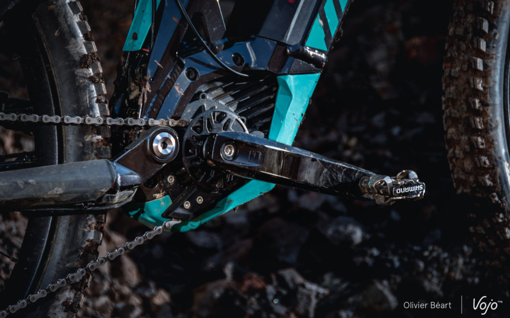 Par contre, elle est flatteuse à vitesse plus faible. Le contraste avec l’amortisseur maison, qui rivalise sans mal avec les grands noms, est assez saisissant. Un dernier mot sur la fourche : son système de blocage de roue original n’a pas fait l’unanimité et ne se révèle pas plus simple qu’un axe classique pour la plupart des personnes à qui nous l’avons fait essayer.