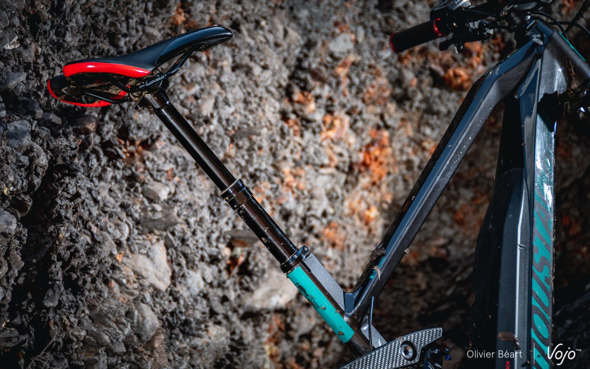 Avec le Trail 6, on n’a pas juste une suspension. On a une très bonne suspension arrière. Sensible, gardant bien l’assiette du vélo, magnifiant le grip de la roue arrière, elle permet aussi de rouler vite quand c’est défoncé. Et pas besoin d’être en descente pour l’apprécier. Au contraire, c’est même presque sur le plat qu’on le sent le plus ; là où on va vouloir rester assez sur la selle et se consacrer sur le plaisir de pilotage dans ce petit single rempli de trous et de cailloux, sans avoir envie que l’arrière rebondisse un peu partout. On va plus vite, plus sereinement et avec plus de plaisir, qu’en l’absence de suspension arrière.