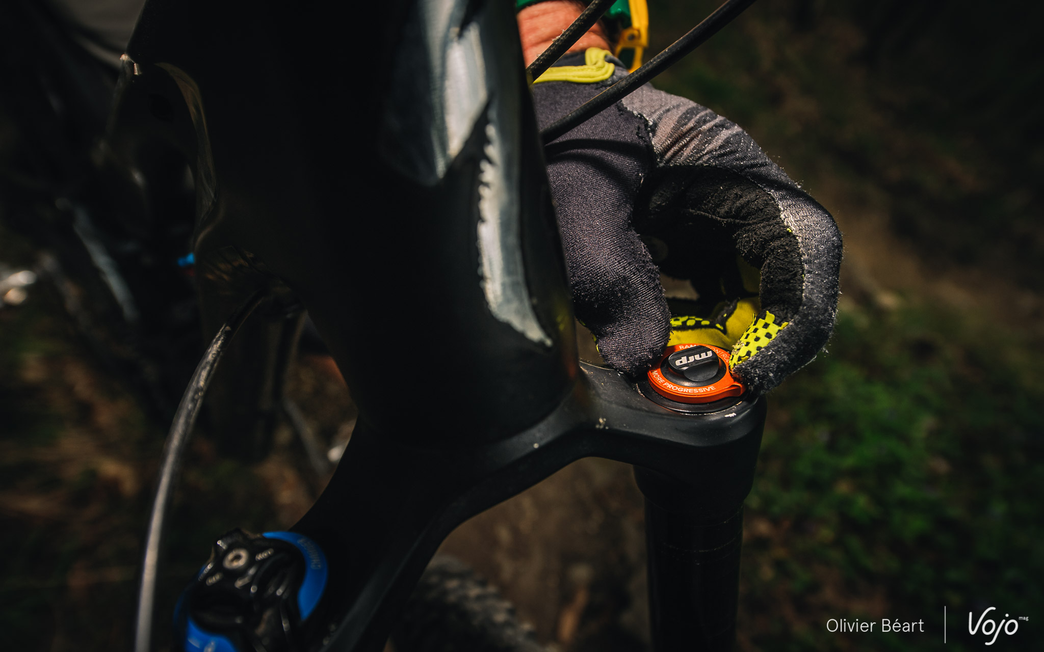 La manipulation de la mollette de réglage du MRP Ramp Control est relativement facile et les clics assez marqués pour se faire sentir même avec des mains gantées. Soyons clairs : c’est un réglage qu’on peut faire sur le terrain, en cours de sortie, mais pas en roulant. Le mieux est de s’arrêter et de prendre un peu de temps pour compter le nombre de clics afin de les mémoriser et de mettre chaque modification en corrélation avec ses sensations sur le terrain.