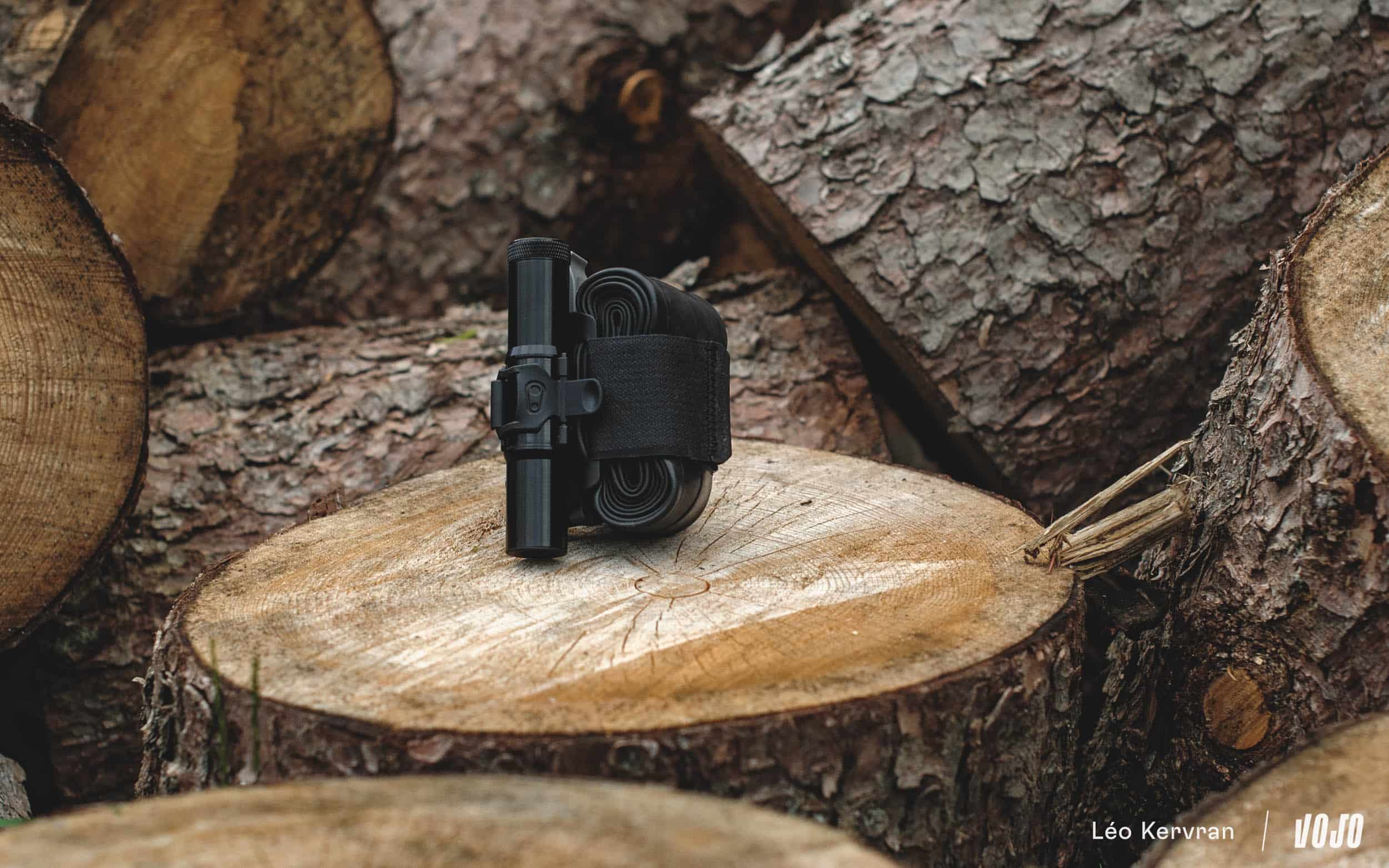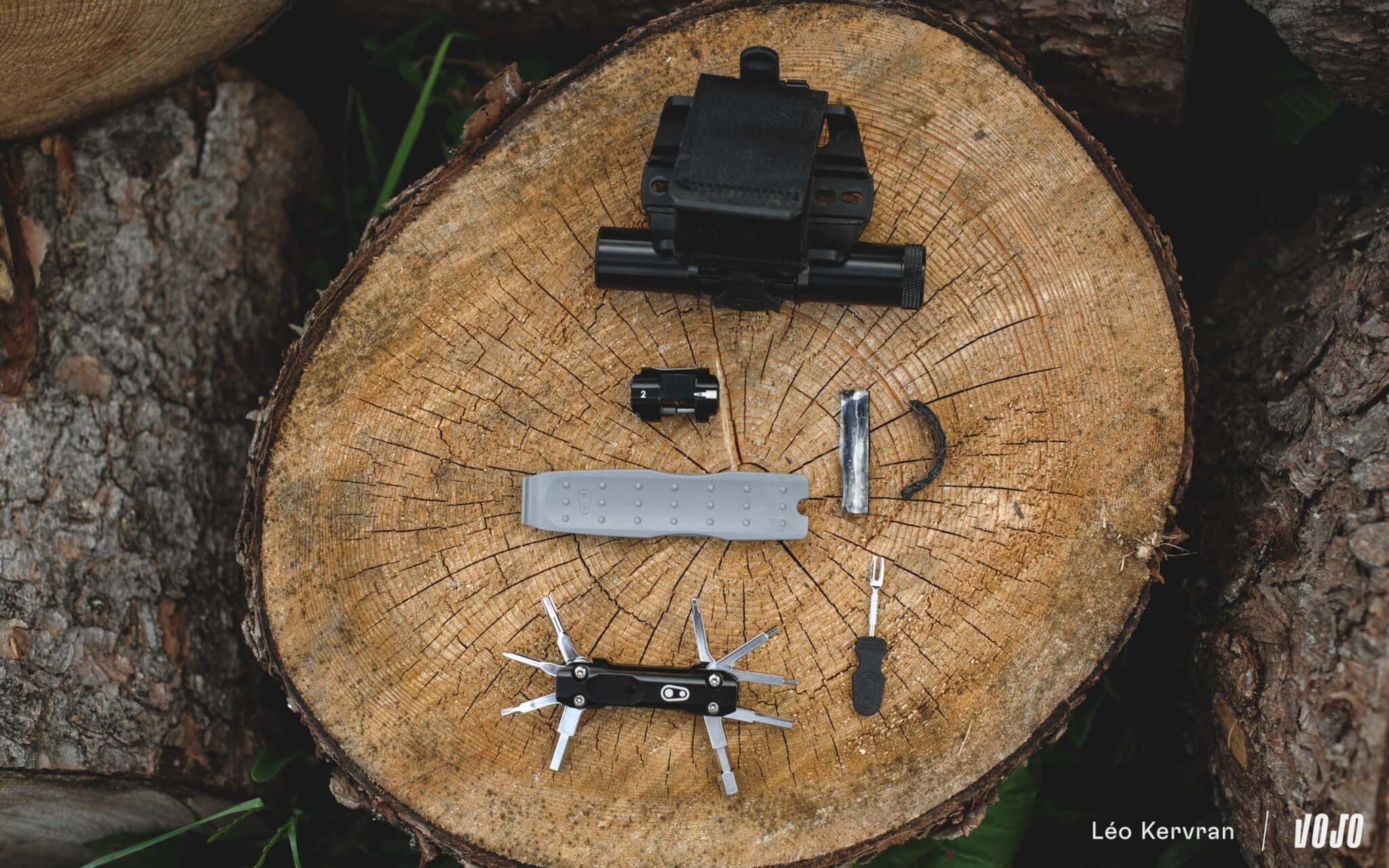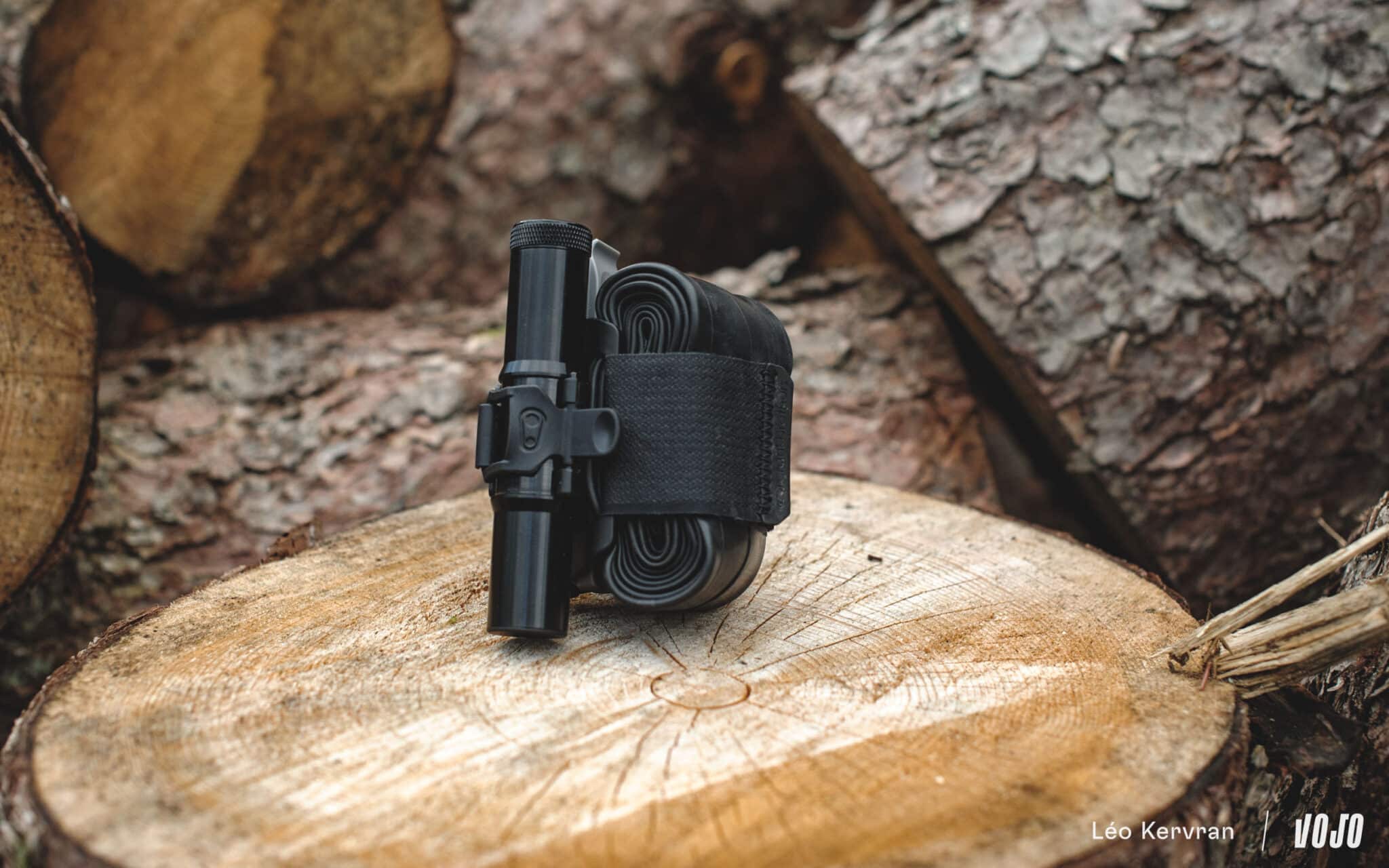 Aujourd’hui, c’est donc le TS18 qui nous intéresse. L’ensemble se décompose en trois (voire quatre) parties : un multi-outils très complet rangé dans un joli tube en aluminium d’un côté, la bande scratch au centre avec un démonte-pneu qui a plus d’un tour dans son sac et un support pour pompe ou cartouche CO2 de l’autre côté.