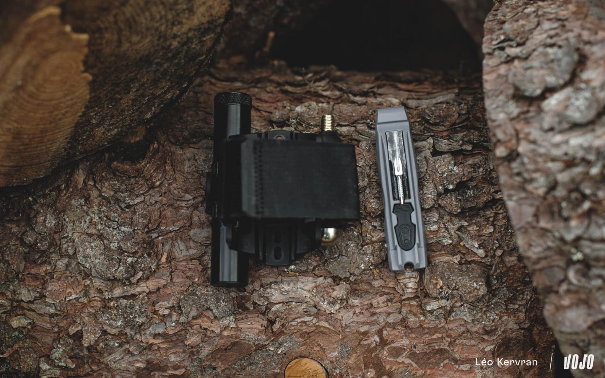 En sus, le démonte-pneu cache dans son dos deux autres mèches tubeless ainsi que l’aiguille pour les insérer dans le pneu. Lorsqu’on n’en a pas besoin, tout cela se clipse fermement en place et nous n’avons jamais perdu un seul élément du système. Même l’embout hexagonal de 8 mm, laissé « libre » à l’intérieur du châssis du multi-outils, tient finalement bien au milieu des clés grâce à de petits aimants de part et d’autre du châssis, les mêmes aimants qui sécurisent le maillon rapide dans son emplacement.