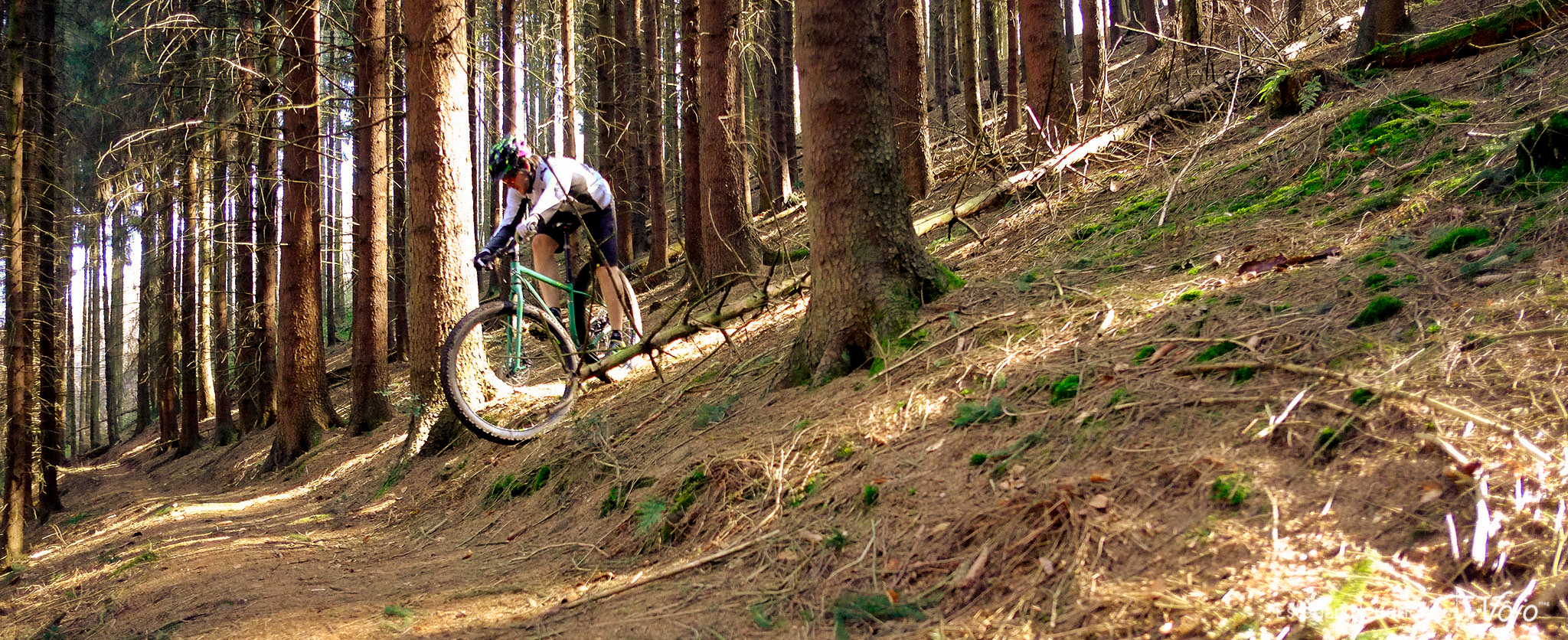 Mais on a l’impression de faire du vrai vtt, pur, sans filtre, et avec l’esprit focalisé uniquement sur le sentier. Avec quand même ces fameux gros pneus qui rendent la machine bien plus capable dans les portions techniques qu’un « simple » tout rigide avec des pneus étroits qui sera vite limité aux parcours roulants. Le Ros 9 Plus, ce qu’il aime, ce sont les passages trialisants, avec de la rocaille de des racines à négocier à basse vitesse. Bref, des circonstances où l’absence de suspension avant est un atout car l’avant le plonge pas; alors que les gros pneus assurent une accroche démentielle sur les reliefs agressifs.