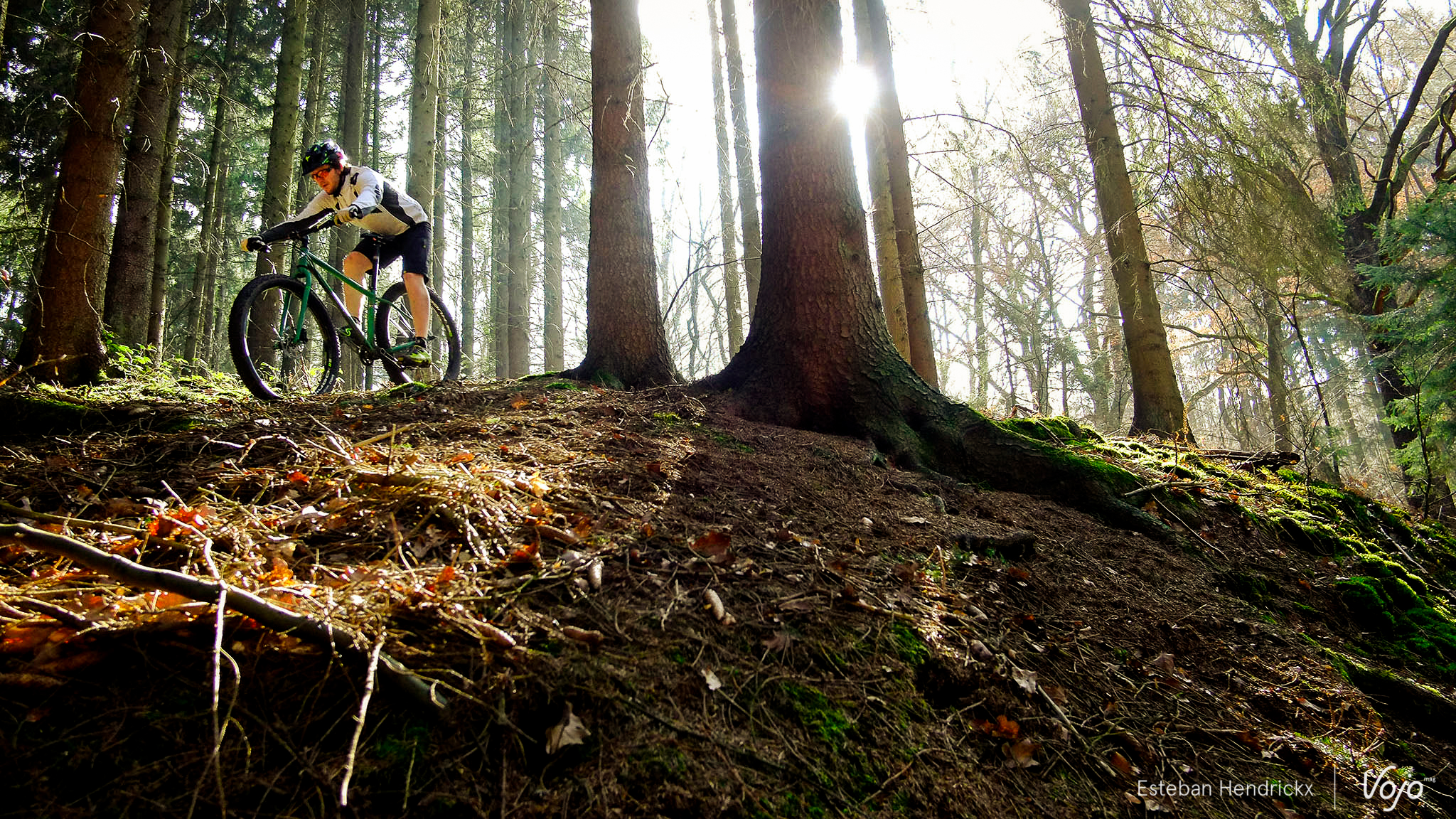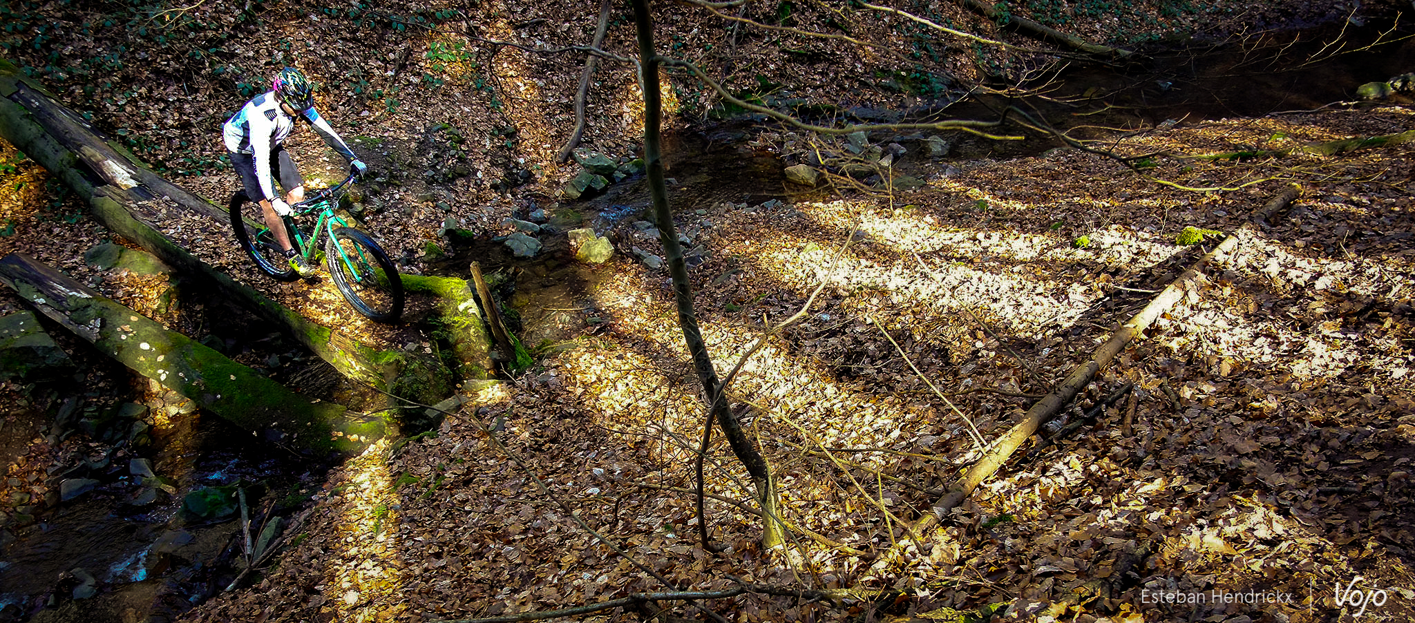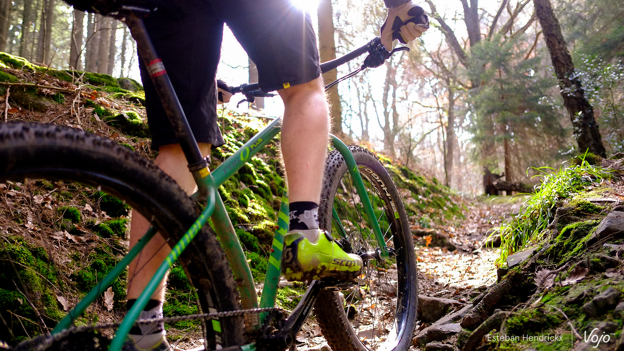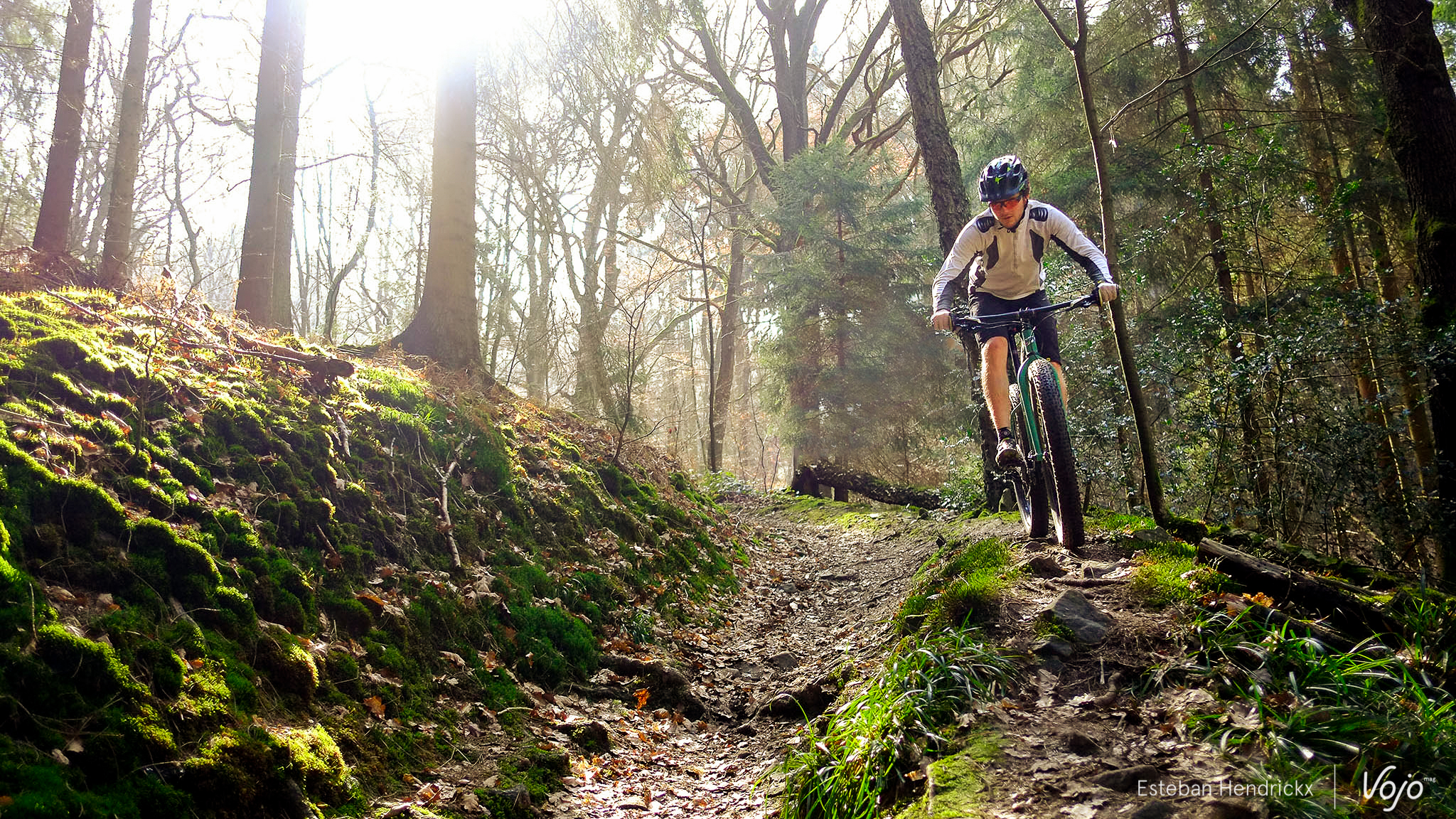 Ca y est, on vient de mettre le doigt sur une des limites de ce vélo en « Plus » : si la traction du pneu arrière est monstrueuse quasi en toutes circonstances, même dans la boue, l’accroche latérale devient précaire dès que le sol est fuyant. Si c’est de la terre compacte ou qu’il y a des rochers bien ancrés au sol, ça passe.