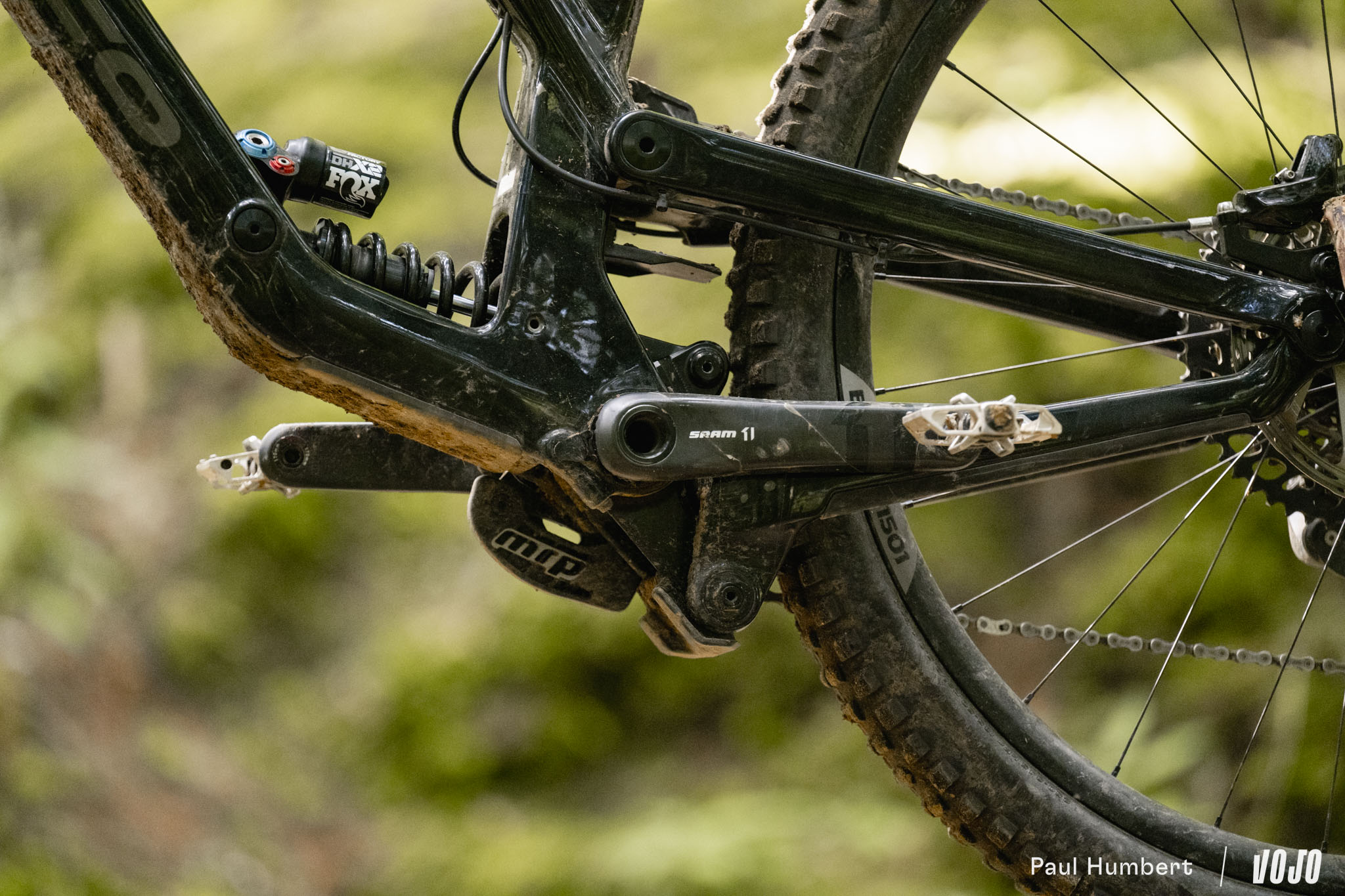 L’intérêt d’un point de pivot haut est désormais bien connu, tant le système est revenu à la mode ces dernières années : cela permet d’avoir une trajectoire de roue qui recule sur les impacts, ce qui s’avère particulièrement utile pour conserver de la vitesse sur tous les obstacles avec des arêtes marquées qui tendent à « accrocher » la roue, type racines ou cailloux.