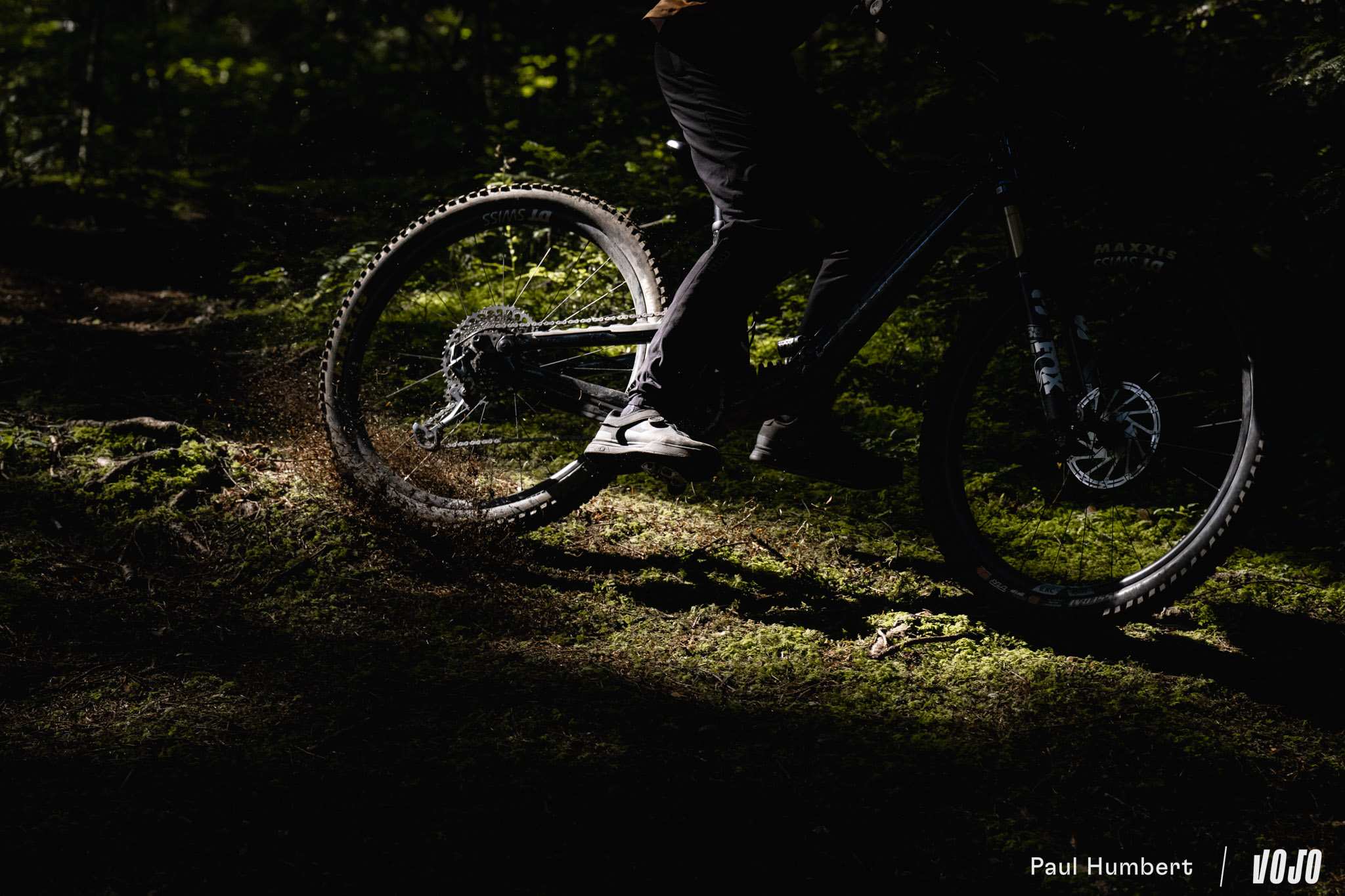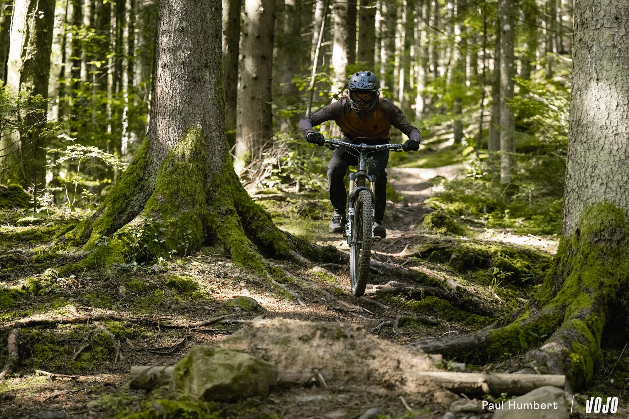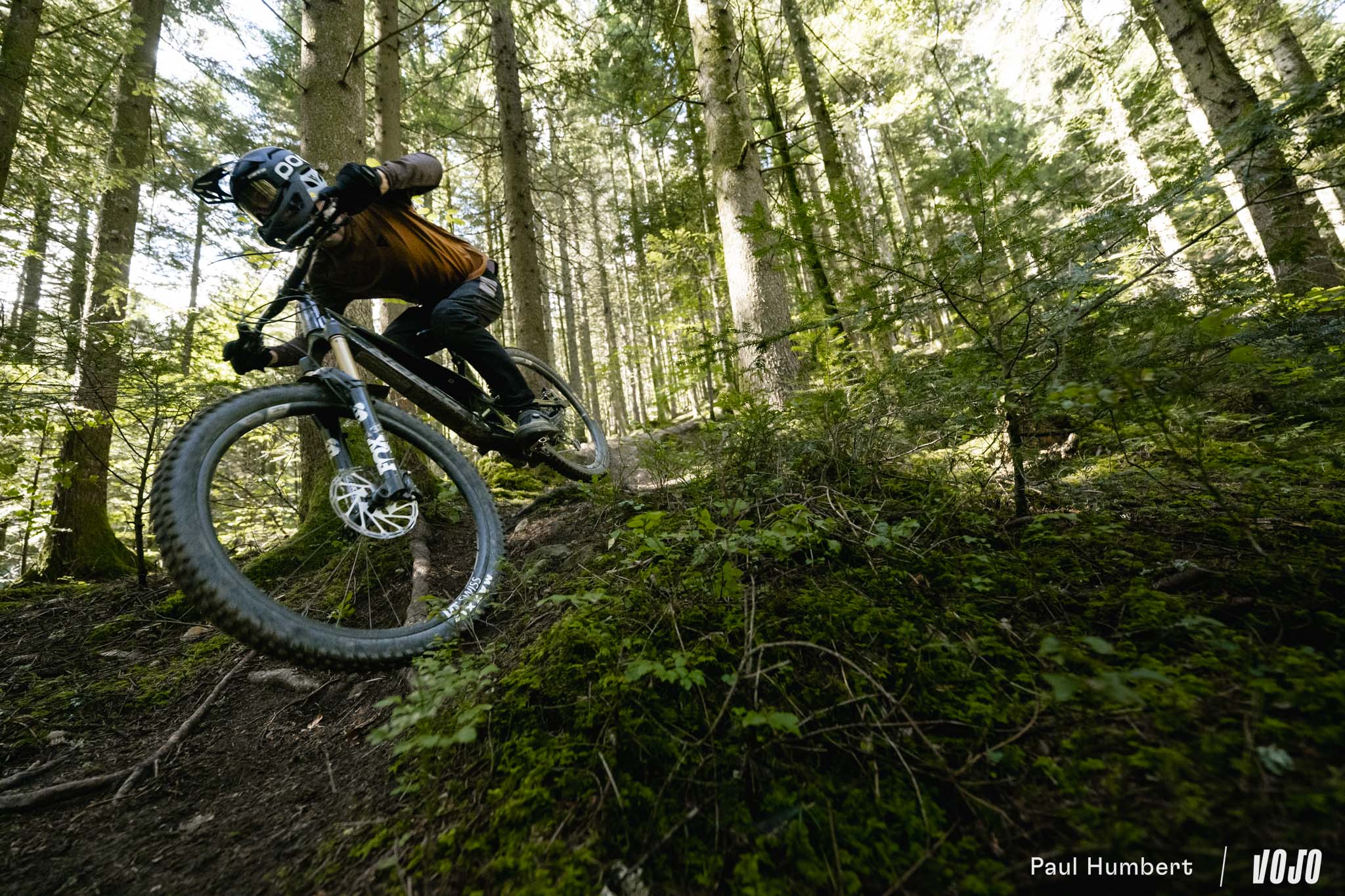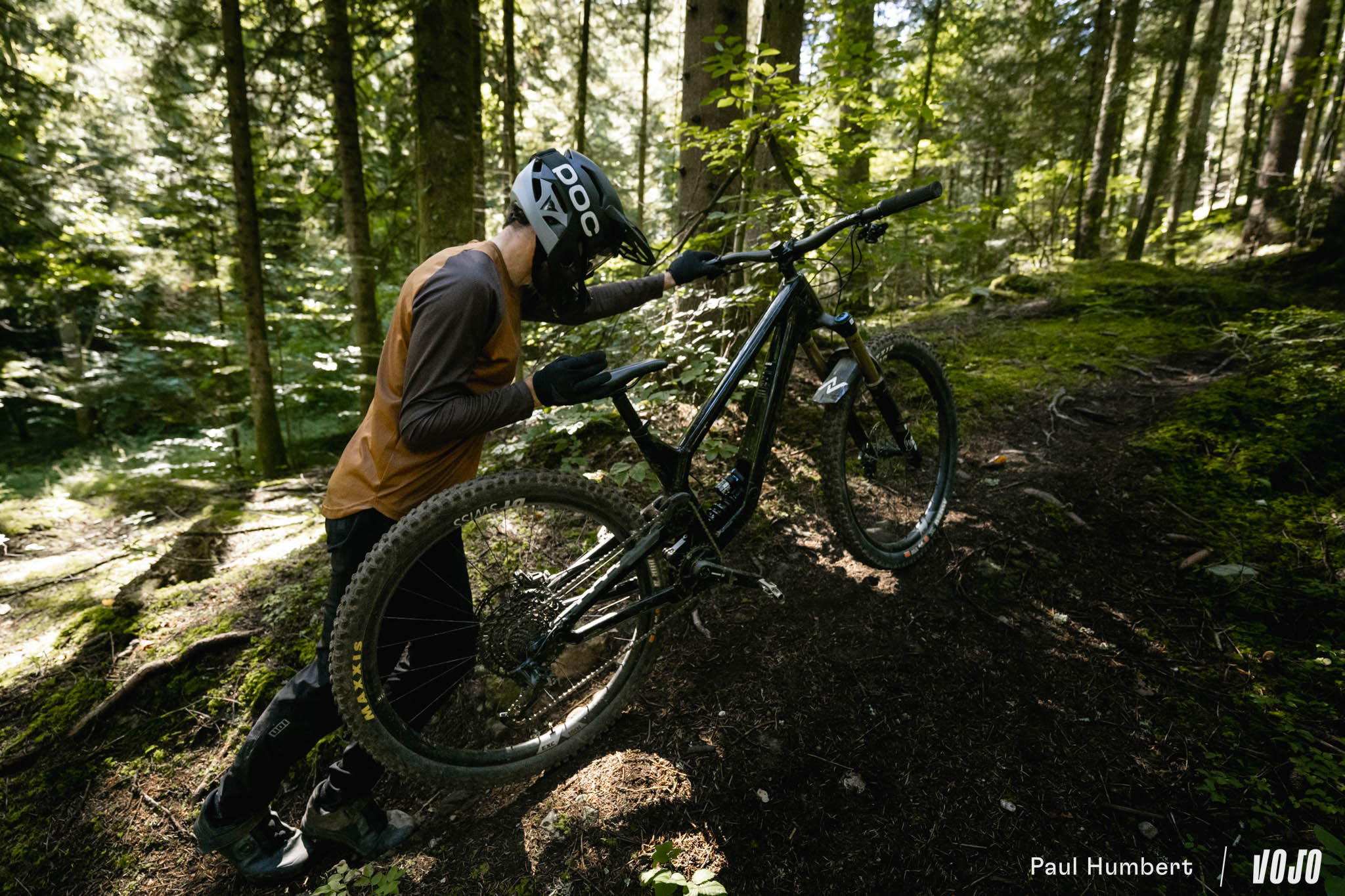 A basse vitesse, la rigidité de la machine est bien présente et peut impressionner mais en réalité, elle n’est pas excessive et elle ne rend pas les choses difficiles dans les conditions humides comme on a pu le voir chez d’autres marques nord-américaines (oui, c’est de Trek qu’on parle). Une fois qu’on a compris que le vélo ne nous fera pas de mauvaise surprise ou de ruade vicieuse, on n’hésite plus à se lancer. C ‘est comme un filet de sécurité, on sait qu’il arrivera à tirer parti du moindre bout de terre ou d’appui pour trouver du grip s’il faut s’arrêter.