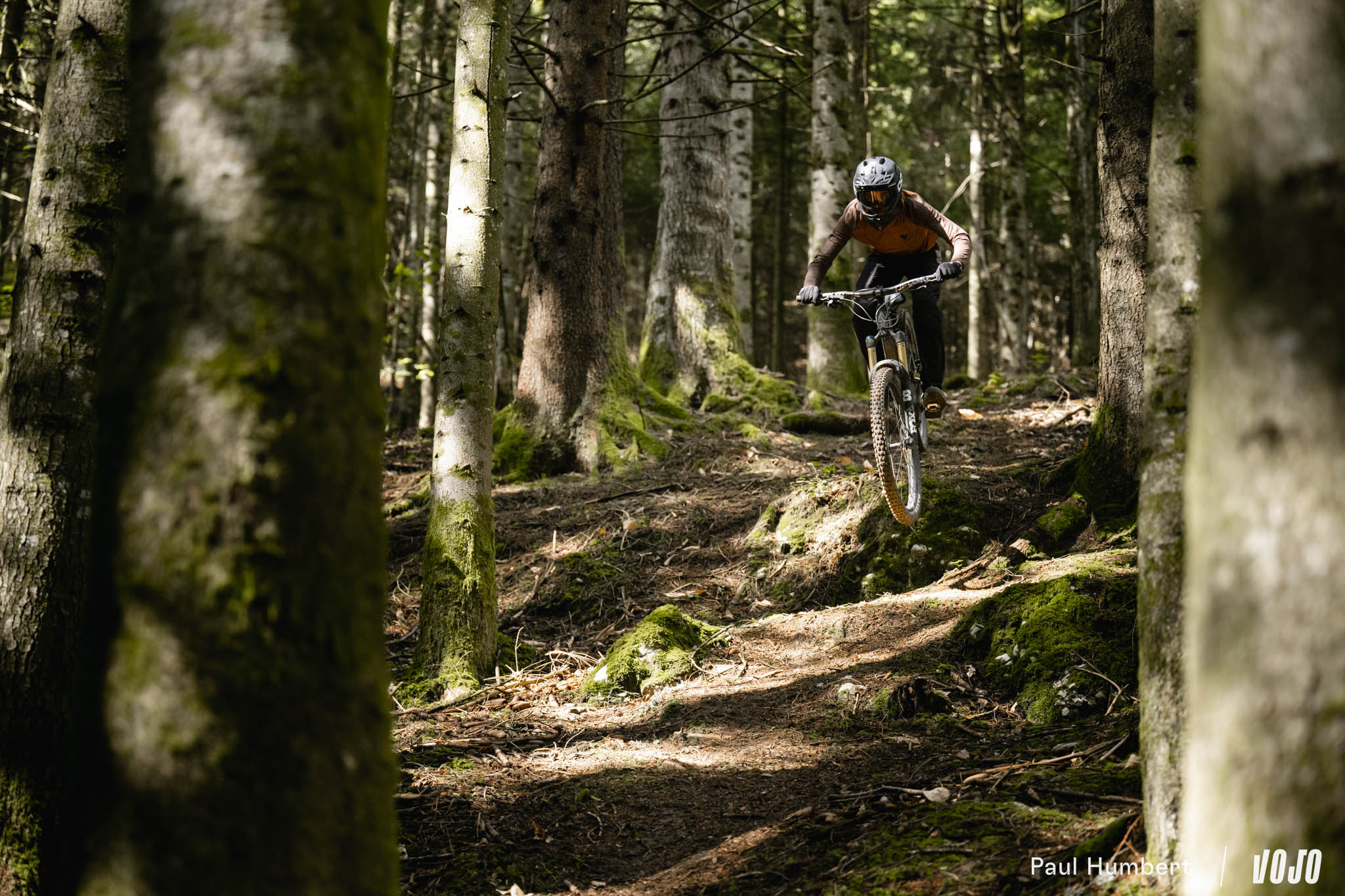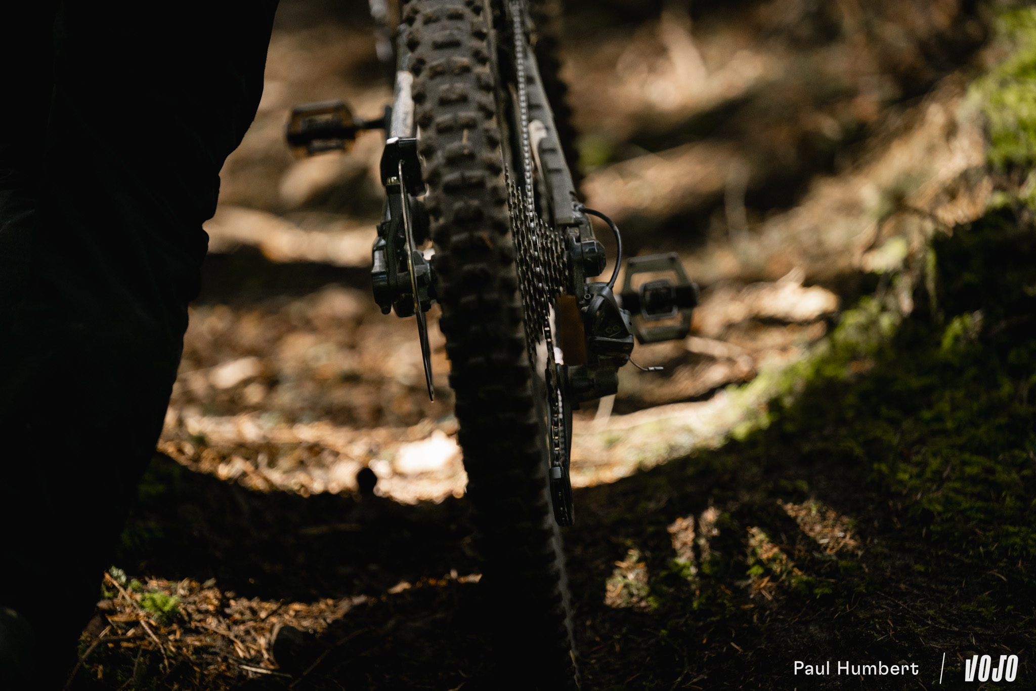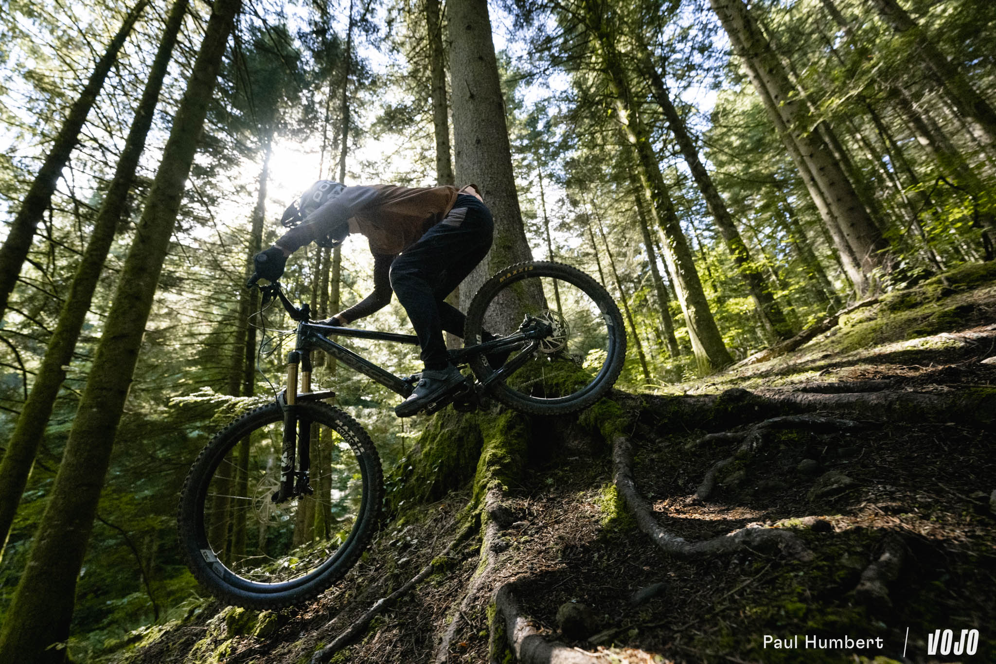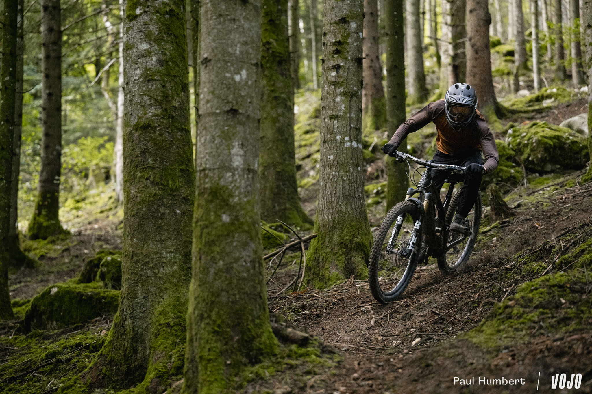 A basse vitesse, la rigidité de la machine est bien présente et peut impressionner mais en réalité, elle n’est pas excessive et elle ne rend pas les choses difficiles dans les conditions humides comme on a pu le voir chez d’autres marques nord-américaines (oui, c’est de Trek qu’on parle). Une fois qu’on a compris que le vélo ne nous fera pas de mauvaise surprise ou de ruade vicieuse, on n’hésite plus à se lancer. C ‘est comme un filet de sécurité, on sait qu’il arrivera à tirer parti du moindre bout de terre ou d’appui pour trouver du grip s’il faut s’arrêter.