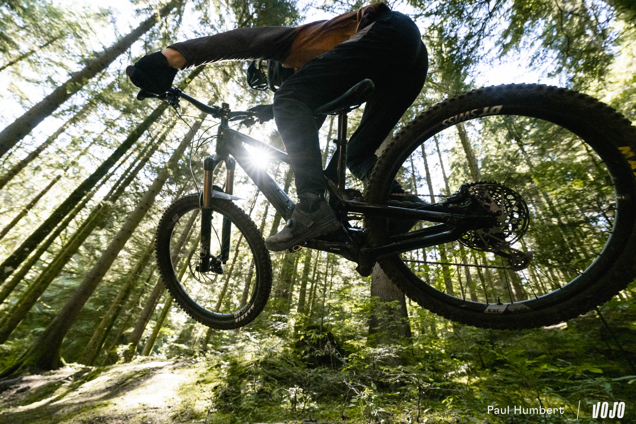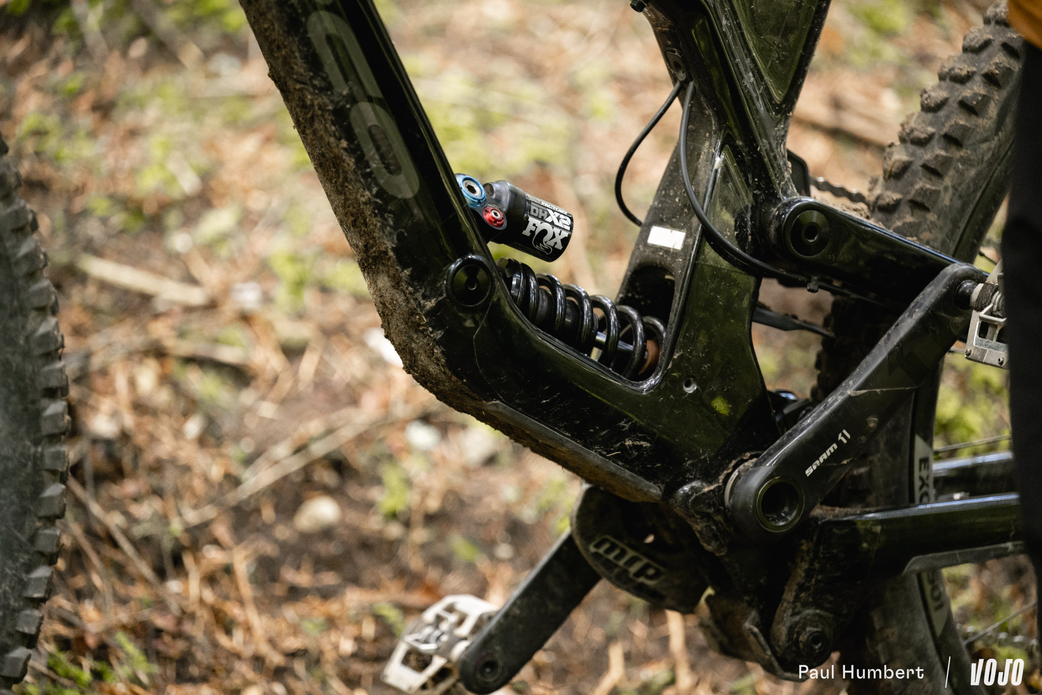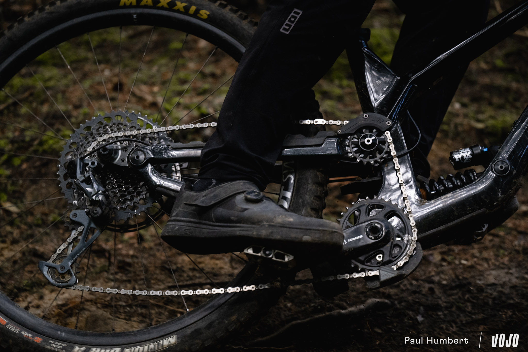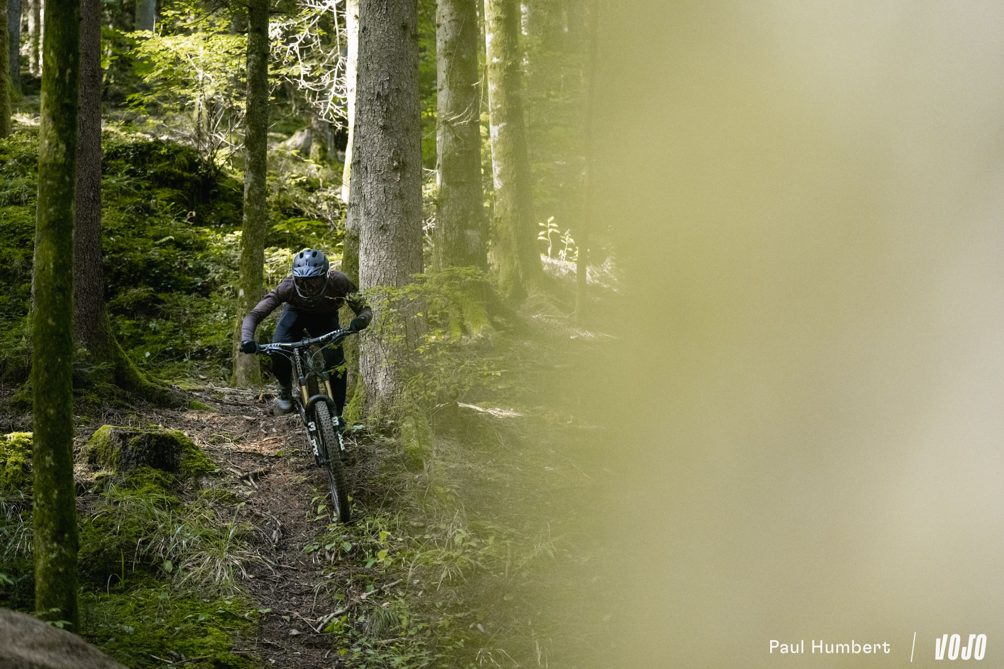 A basse vitesse, la rigidité de la machine est bien présente et peut impressionner mais en réalité, elle n’est pas excessive et elle ne rend pas les choses difficiles dans les conditions humides comme on a pu le voir chez d’autres marques nord-américaines (oui, c’est de Trek qu’on parle). Une fois qu’on a compris que le vélo ne nous fera pas de mauvaise surprise ou de ruade vicieuse, on n’hésite plus à se lancer. C ‘est comme un filet de sécurité, on sait qu’il arrivera à tirer parti du moindre bout de terre ou d’appui pour trouver du grip s’il faut s’arrêter.