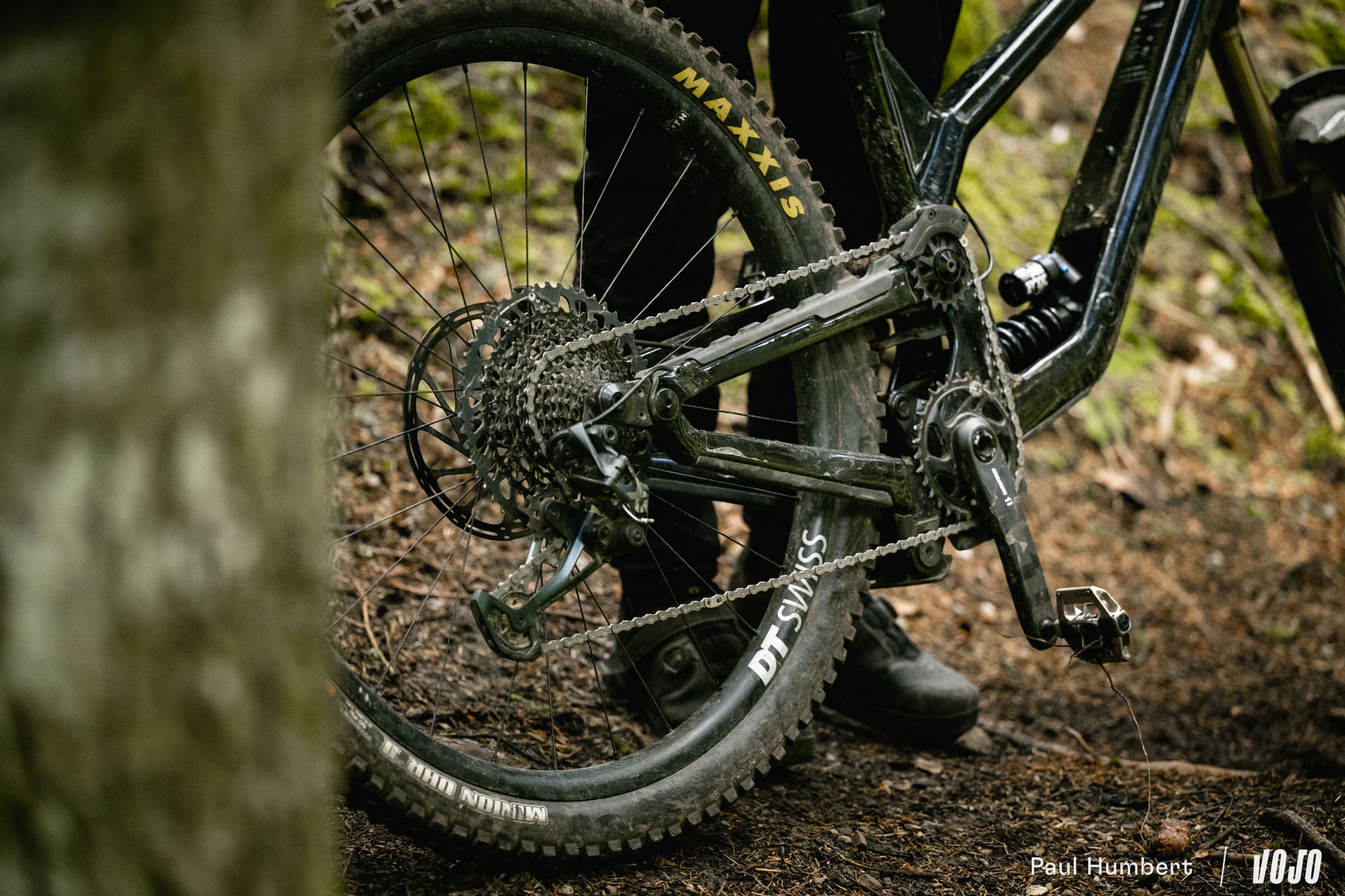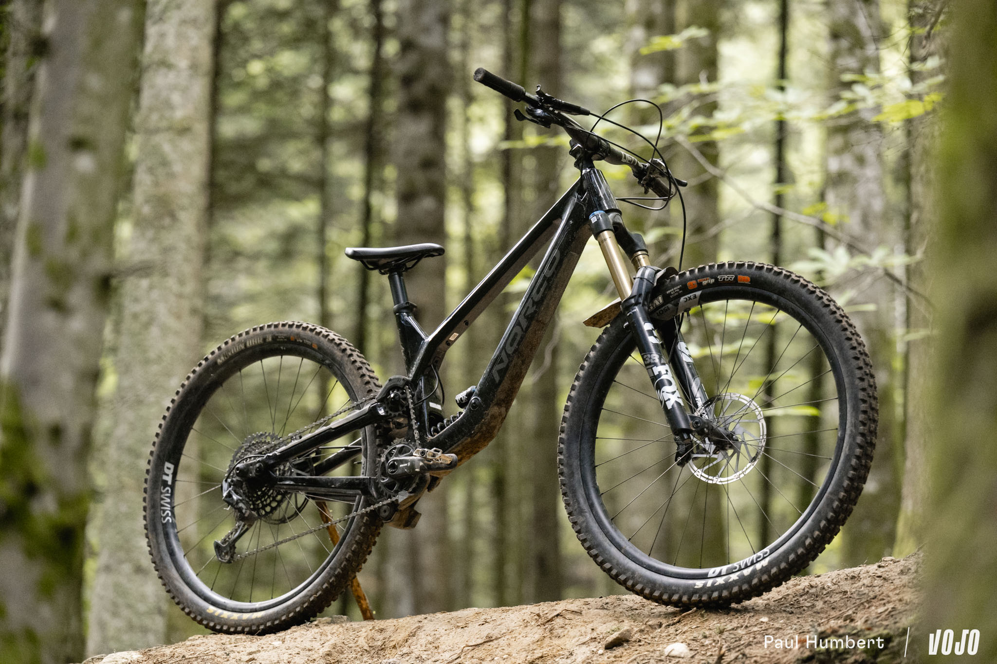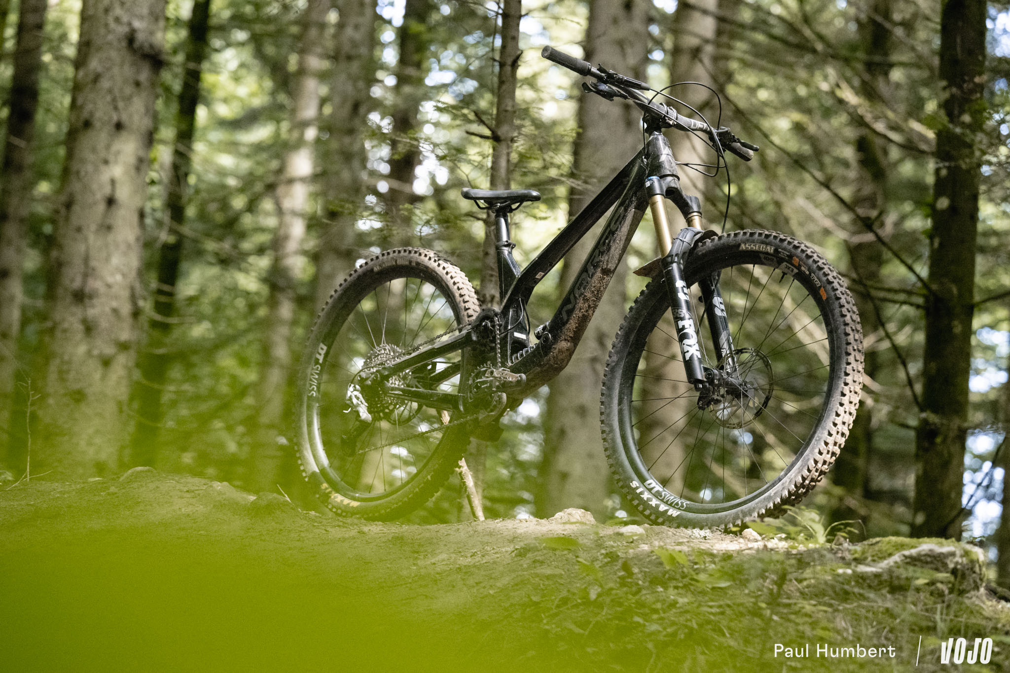 Au niveau du train roulant, le vélo est officiellement équipé de jantes We Are One Union montées sur des moyeux Industry Nine Hydra mais notre modèles disposait de DT Swiss EXC 1500. En revanche, pas de changement sur les pneus, on avait bien le reconnu et éprouvé combo Maxxis Assegai (AV) / Maxxis DHR II (AR), tous deux en carcasse DoubleDown et gomme MaxxGrip.