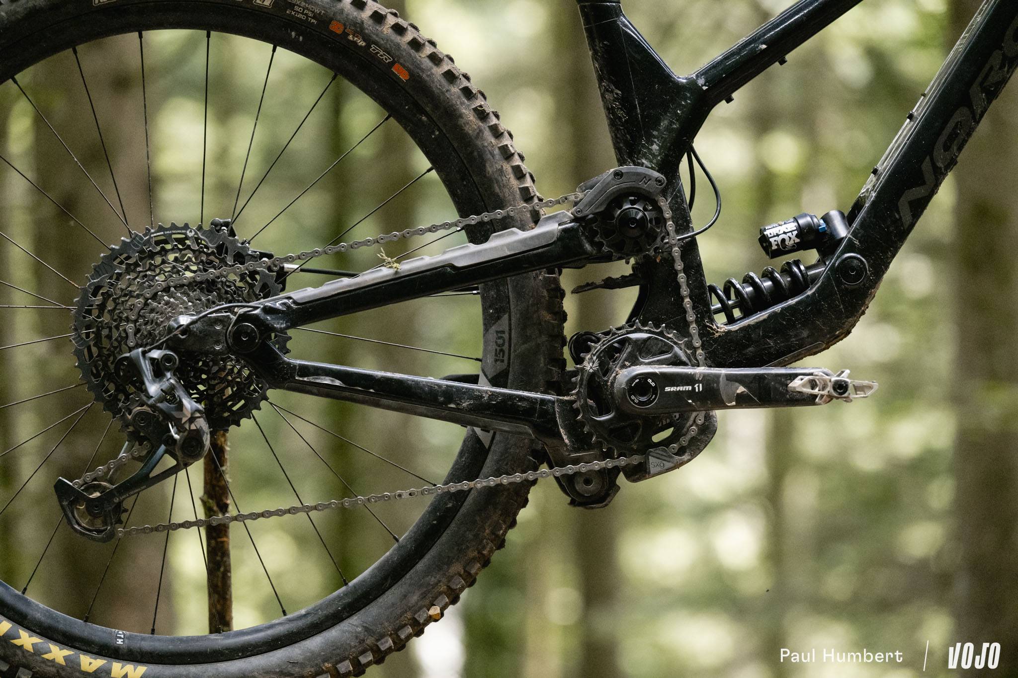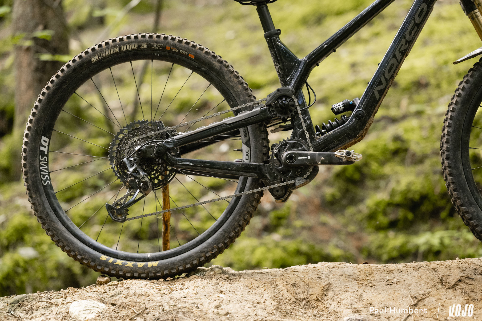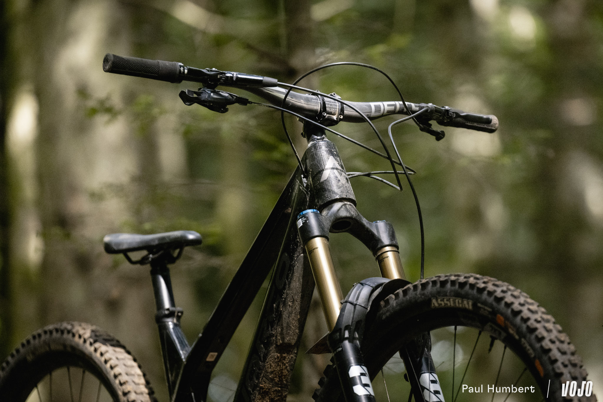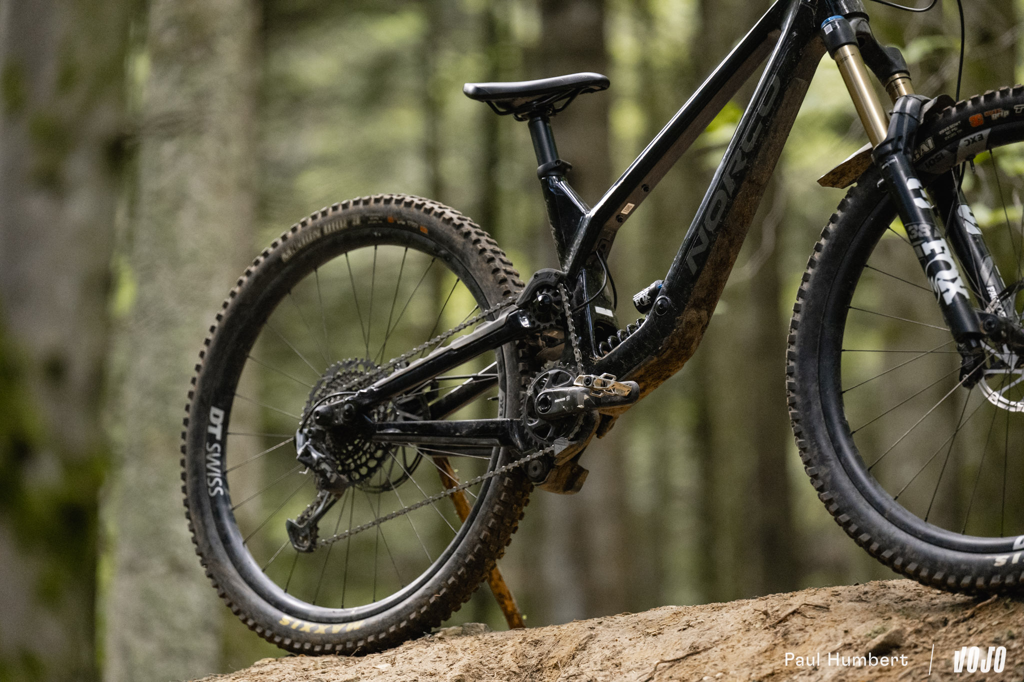 Au niveau du train roulant, le vélo est officiellement équipé de jantes We Are One Union montées sur des moyeux Industry Nine Hydra mais notre modèles disposait de DT Swiss EXC 1500. En revanche, pas de changement sur les pneus, on avait bien le reconnu et éprouvé combo Maxxis Assegai (AV) / Maxxis DHR II (AR), tous deux en carcasse DoubleDown et gomme MaxxGrip.