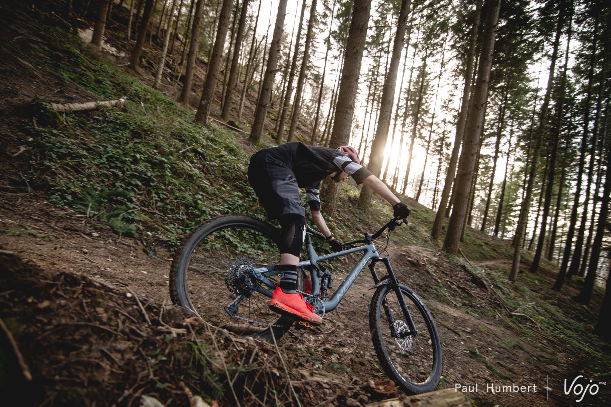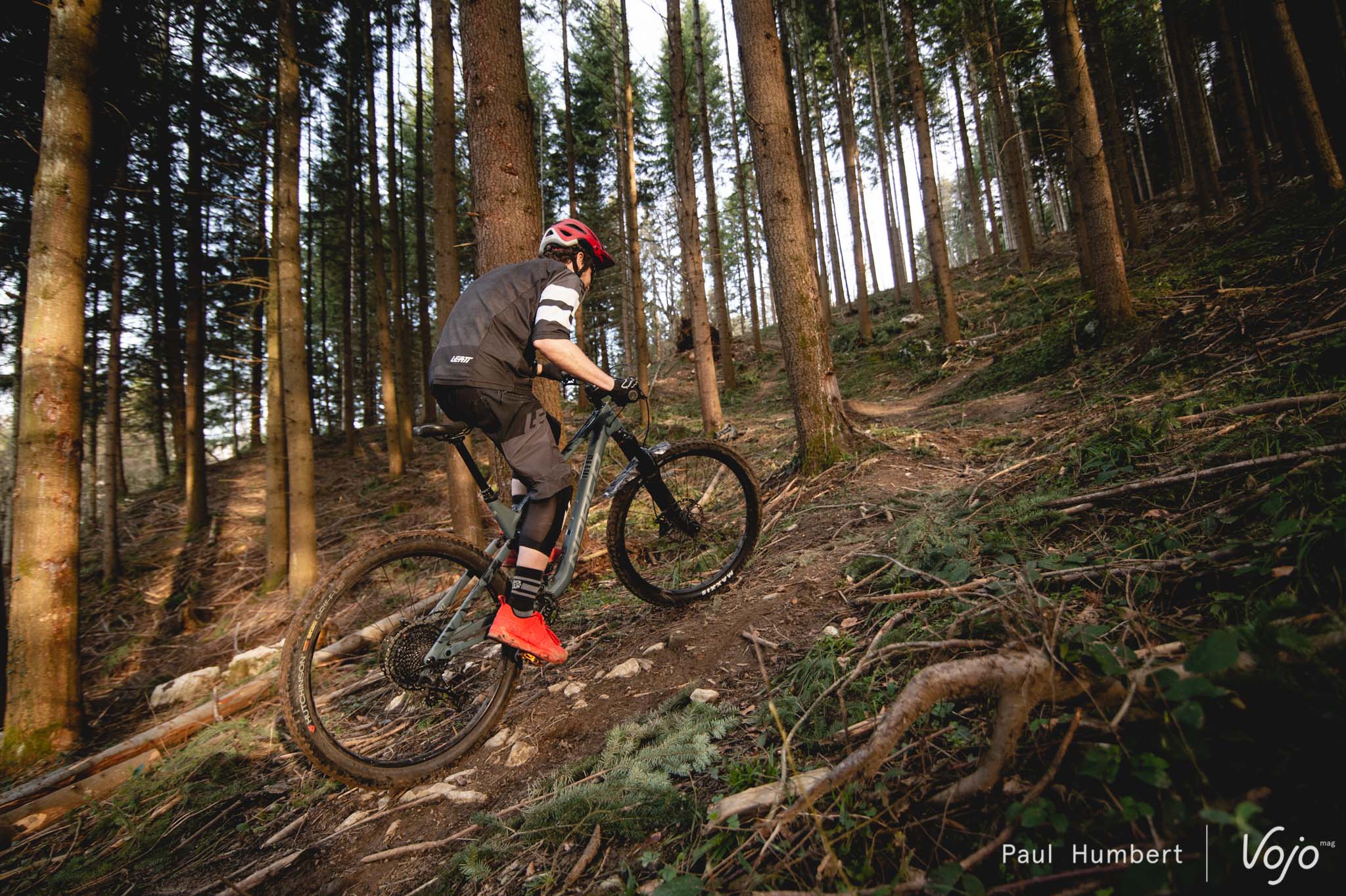 En revanche, ne comptez pas sur lui pour prendre la voie des airs à chaque petit rocher ou racine. Entre son poids et sa suspension, le vélo est solidement rivé au sol et il faudra réussir le geste parfait à chaque bunny-up pour décoller, sans quoi vous vous retrouverez simplement à soulever votre roue avant tandis que la roue arrière encaissera l’obstacle en roulant.