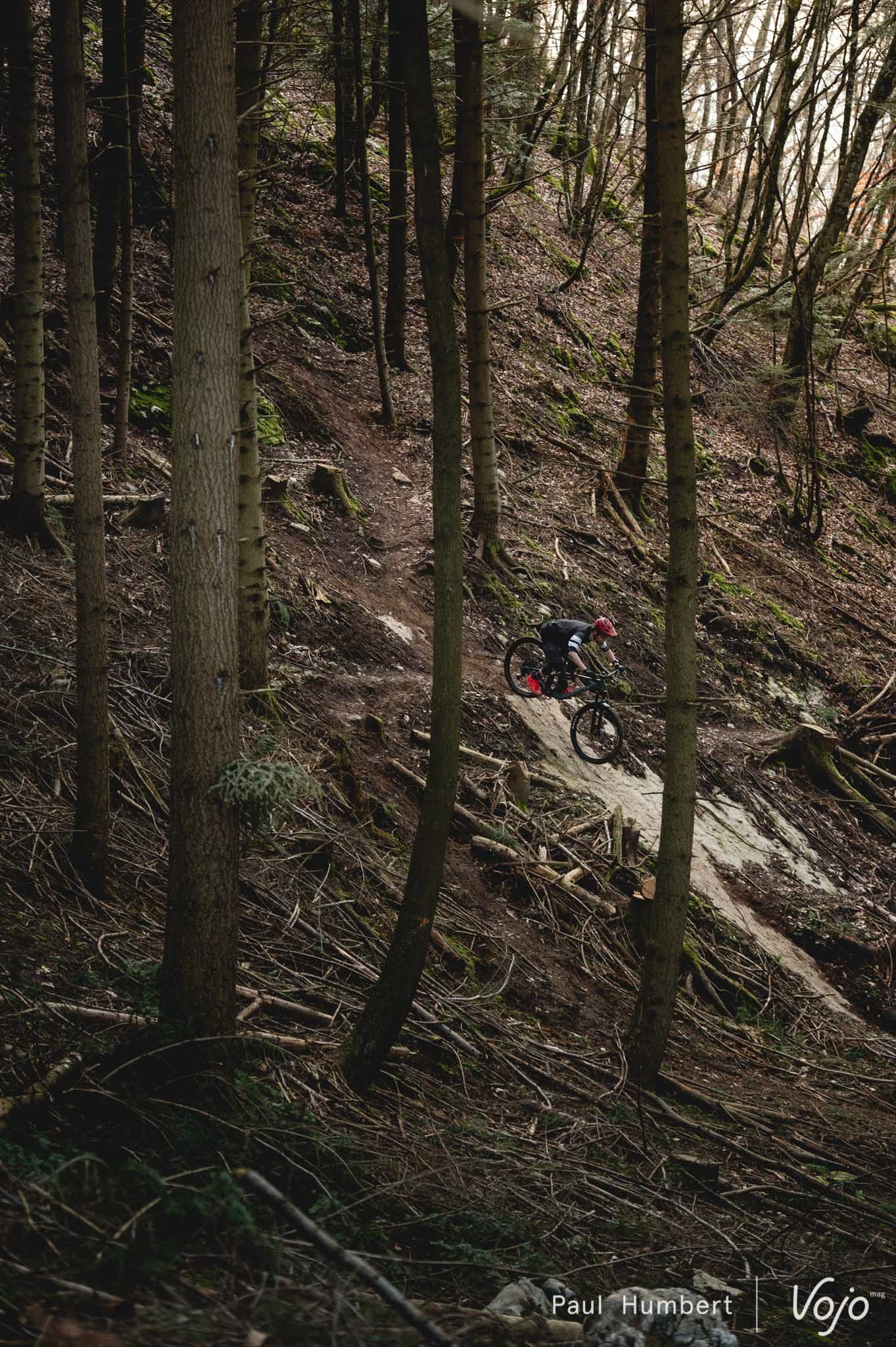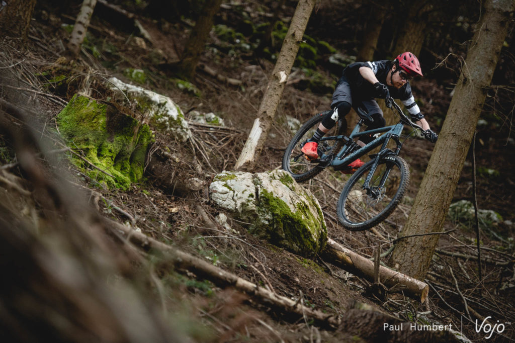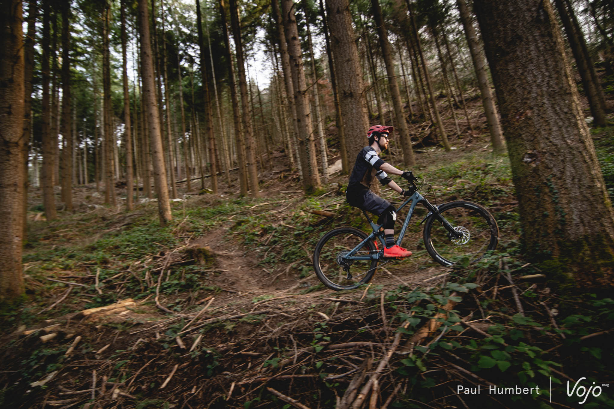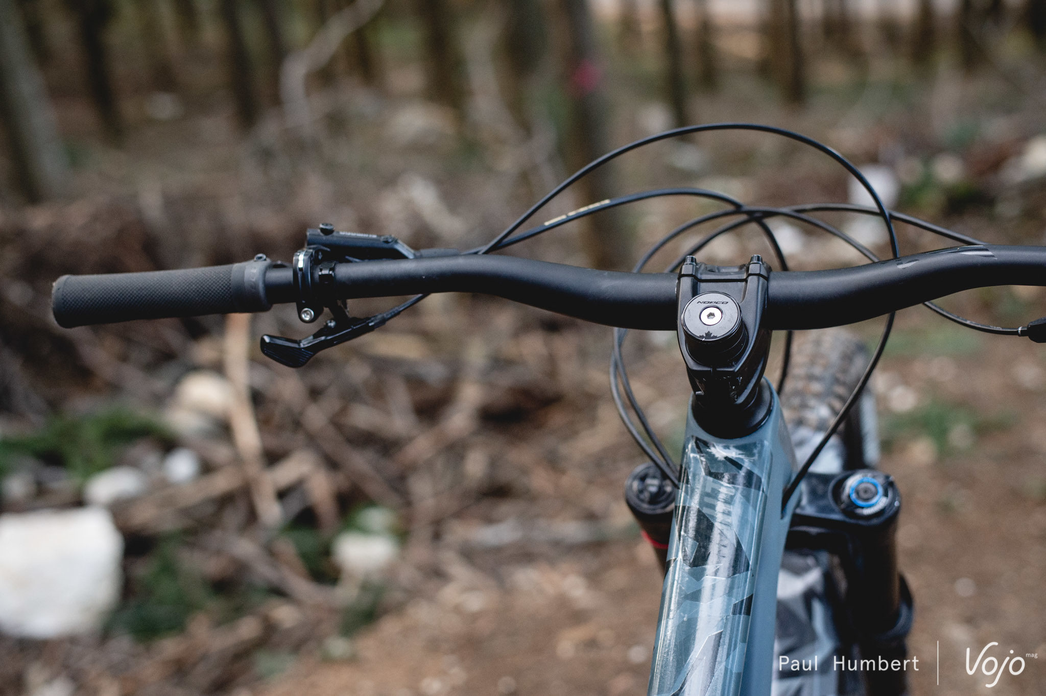 En revanche, ne comptez pas sur lui pour prendre la voie des airs à chaque petit rocher ou racine. Entre son poids et sa suspension, le vélo est solidement rivé au sol et il faudra réussir le geste parfait à chaque bunny-up pour décoller, sans quoi vous vous retrouverez simplement à soulever votre roue avant tandis que la roue arrière encaissera l’obstacle en roulant.