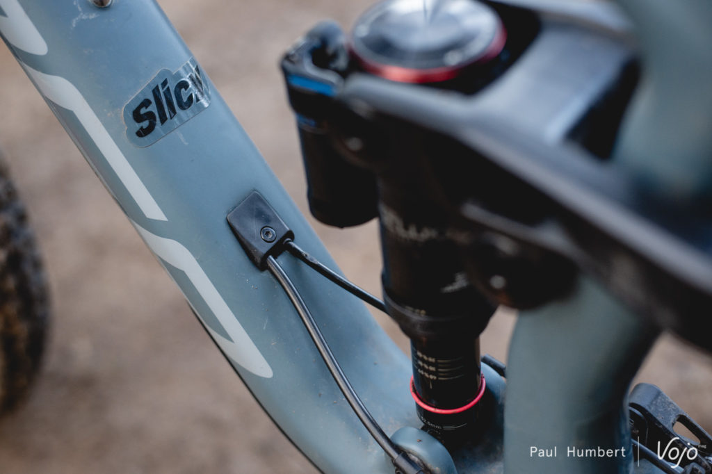 Le changement est donc de taille mais une fois tous les éléments mis en relation, cette nouvelle géométrie apparaît cohérente. Le tube de selle très droit permet d’avoir une bonne position au pédalage et de garder un peu de poids sur l’avant du vélo malgré le reach long et l’angle de direction à 64°. On apprécie aussi le tube de selle assez court, qui permet de monter une tige de selle télescopique à grand débattement.