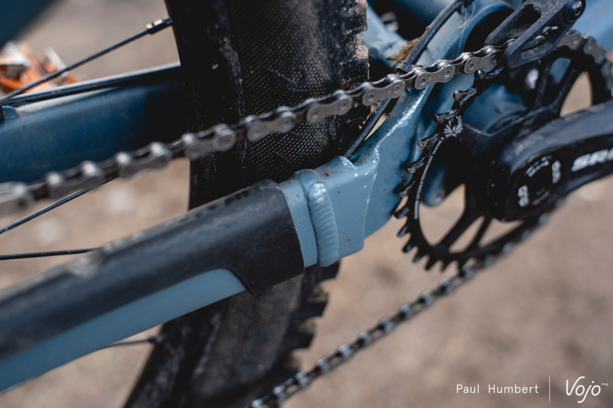 Autres nouveautés, un support d’outillage sur la face inférieure du tube supérieur et un protège-base séparé en plusieurs sections, dans l’optique de réduire les bruits de chaîne. Malheureusement, il est un peu court et ne protège pas parfaitement le cadre des impacts.