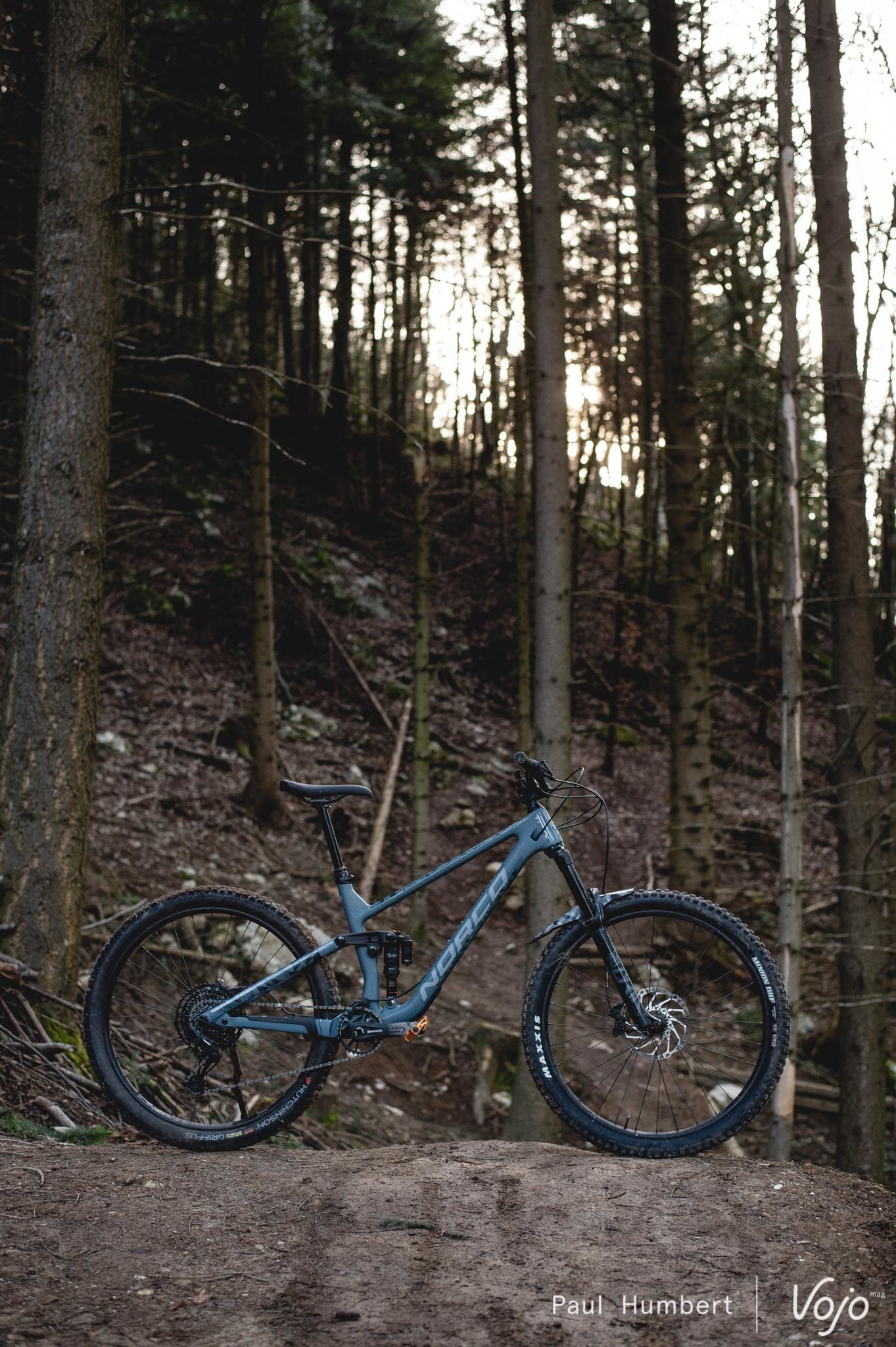 Ces données sont aussi valables sur les modèles en 27,5″ puisque Norco a fait le choix de proposer la même géométrie – à quelques détails près – pour les deux tailles de roues. On retrouve donc le même reach, les mêmes bases ou encore le même angle de selle sur les versions « petites roues ». Les seuls éléments qui évoluent sont des adaptations liées au diamètre inférieur (angle de direction à 63,5°, offset de fourche plus court de 5 mm et douille de direction un peu plus longue) ou des éléments inhérents à cette réduction de taille, comme l’empattement un peu plus court ou le boîtier de pédalier plus bas de quelques millimètres.