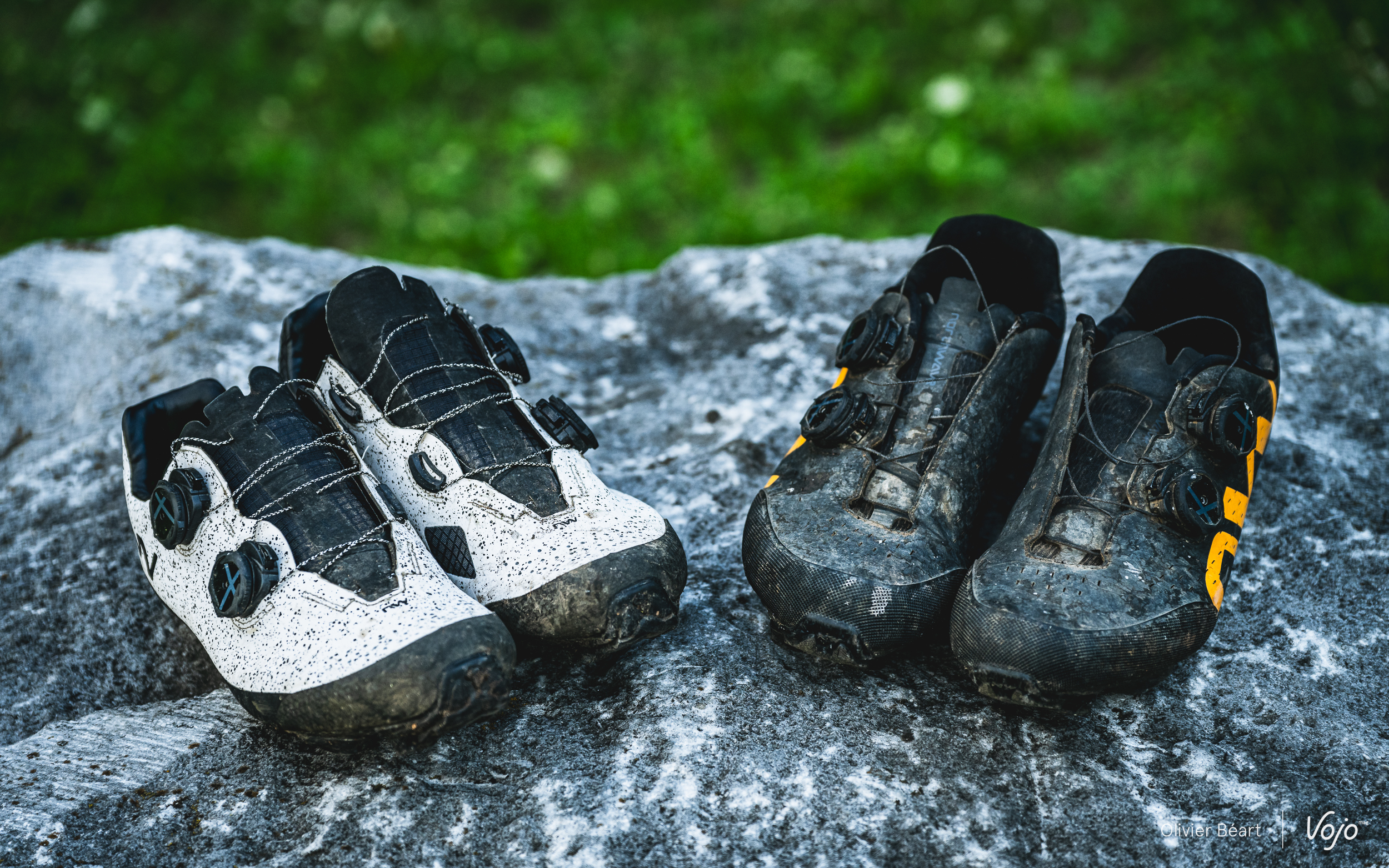 Dernier point : la solidité. Il s’agit évidemment d’un point crucial quand on investit de tels montants pour une paire de chaussures. Et Northwave a malheureusement déjà connu des soucis à ce niveau par le passé. Nous avons donc été très attentifs à ce point. Notre test s’est étendu sur près de 6 mois, avec des sorties XC, gravel, les 24h des Crapauds où nous avons alterné les deux modèles au fil des tours pour bien les comparer, plusieurs reportages où nous avons marché et crapahuté avec ces chaussures pour faire des photos. Et, au final, elles s’en sont toutes les deux remarquablement bien sorties. Bien sûr, les semelles carbone sont marquées visuellement, surtout sur la XC 2 où le carbone est plus présent, mais à part cela, elles sont encore en excellent état. Les renforts judicieusement placés font leur job, et les matériaux de qualité combinés à un bon assemblage font le reste.