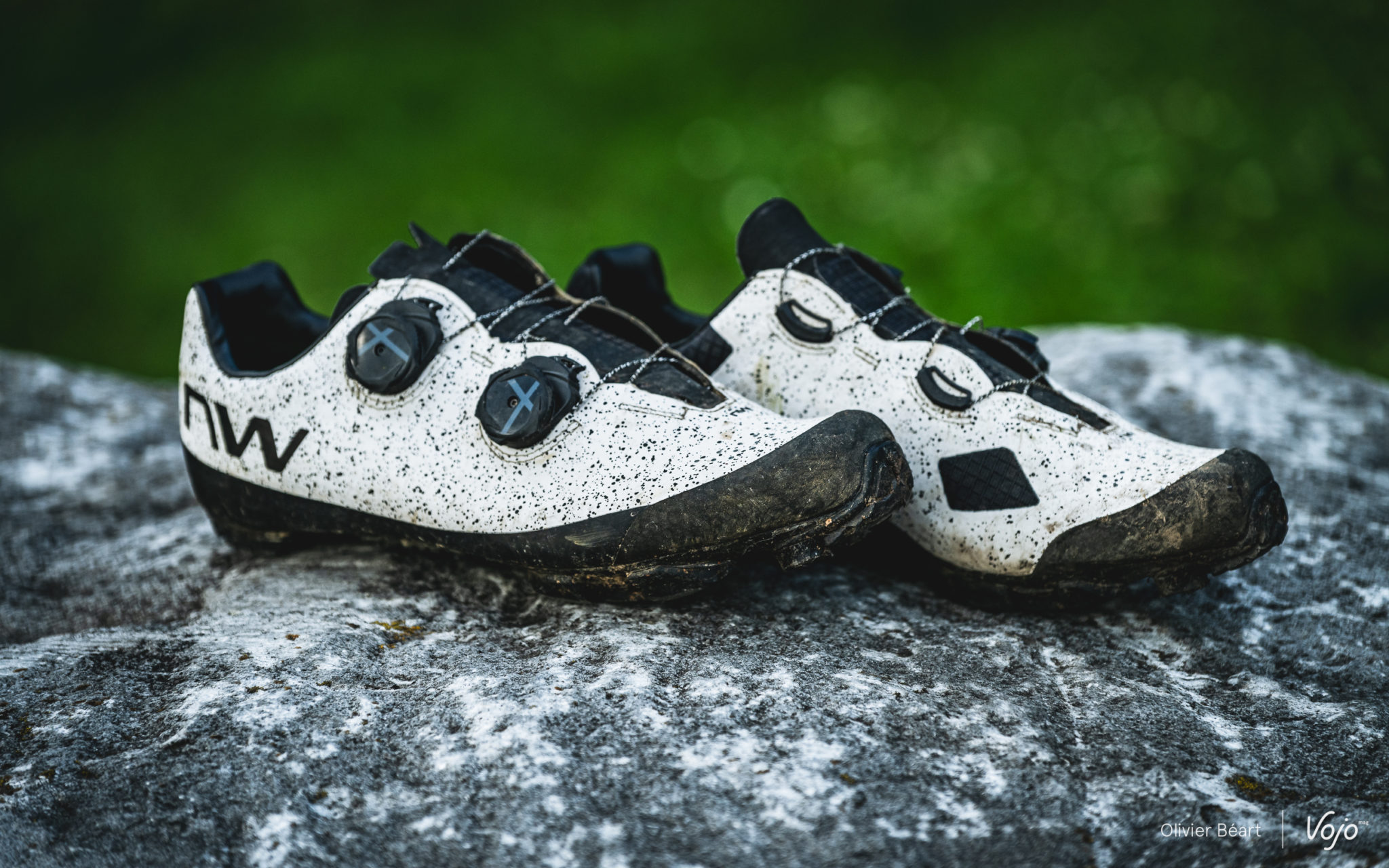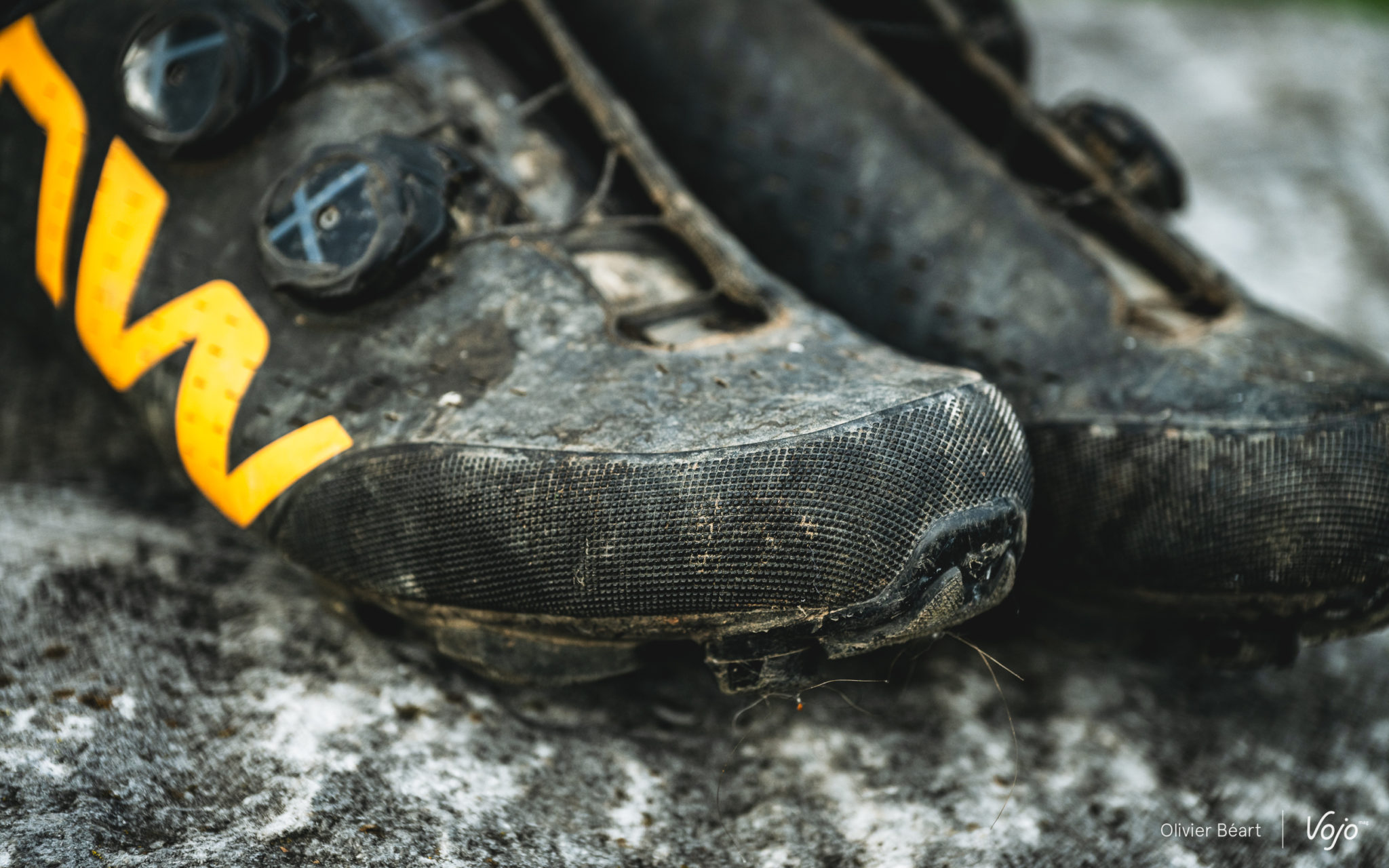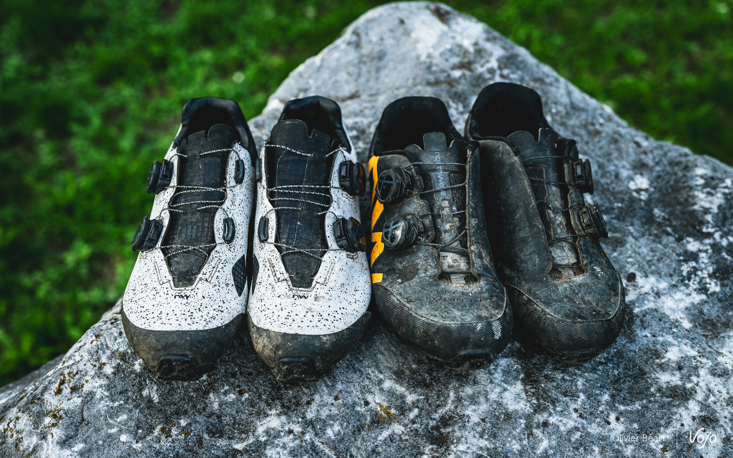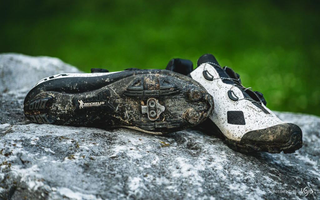 Dernier point : la solidité. Il s’agit évidemment d’un point crucial quand on investit de tels montants pour une paire de chaussures. Et Northwave a malheureusement déjà connu des soucis à ce niveau par le passé. Nous avons donc été très attentifs à ce point. Notre test s’est étendu sur près de 6 mois, avec des sorties XC, gravel, les 24h des Crapauds où nous avons alterné les deux modèles au fil des tours pour bien les comparer, plusieurs reportages où nous avons marché et crapahuté avec ces chaussures pour faire des photos. Et, au final, elles s’en sont toutes les deux remarquablement bien sorties. Bien sûr, les semelles carbone sont marquées visuellement, surtout sur la XC 2 où le carbone est plus présent, mais à part cela, elles sont encore en excellent état. Les renforts judicieusement placés font leur job, et les matériaux de qualité combinés à un bon assemblage font le reste.