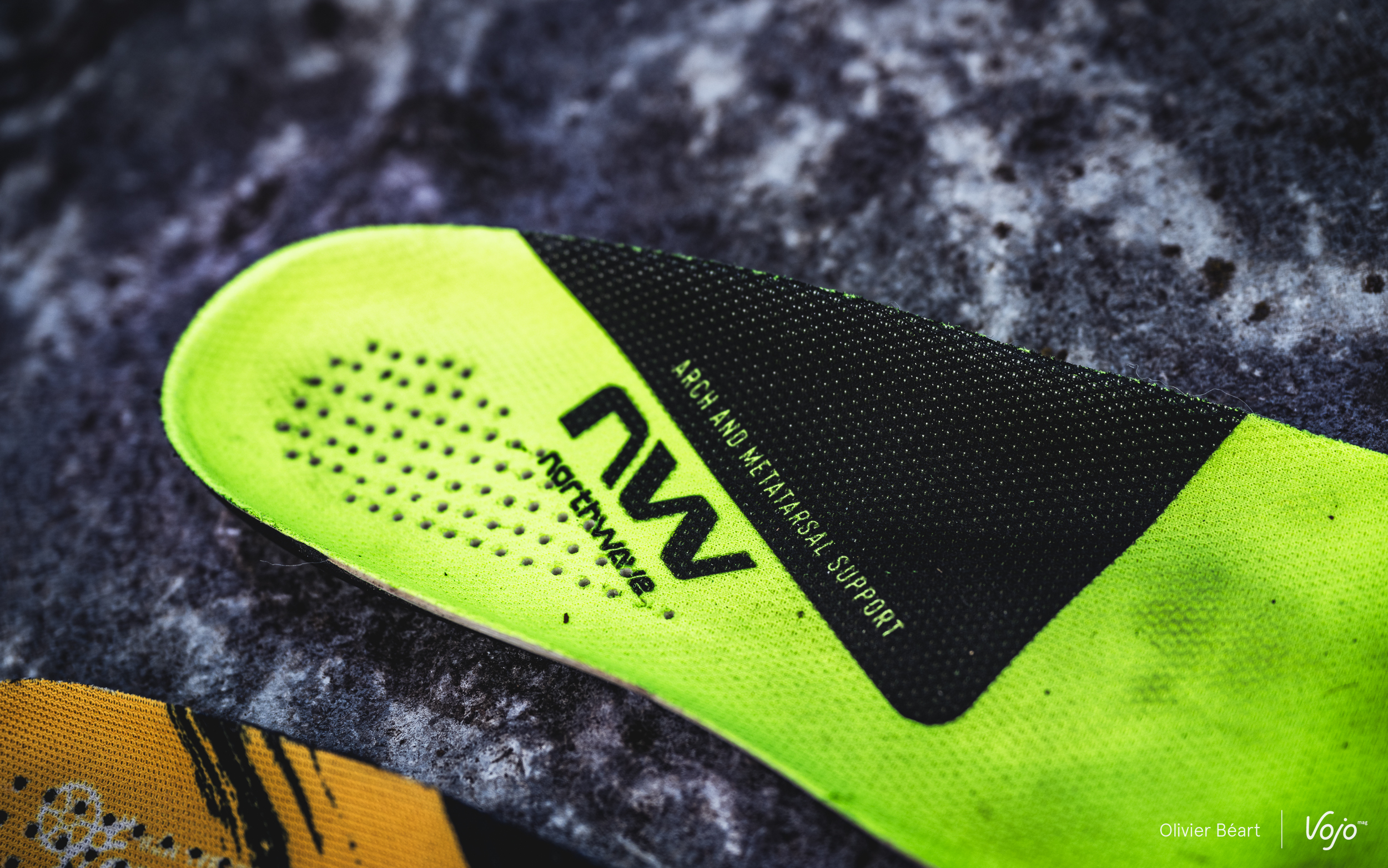 À l’intérieur, on découvre une semelle interne double densité, dotée d’un support plus travaillé pour la voûte plantaire (la semelle de la XC 2 est la jaune fluo et blanche). À première vue, celles-ci peuvent sembler similaires aux semelles des Rebel 3, pourtant une fois les deux paires de semelles en main, on se rend rapidement compte de la différence de densité et de renforts des semelles des Extreme XC 2 par rapport à celles des Rebel 3, plus classiques et basiques.