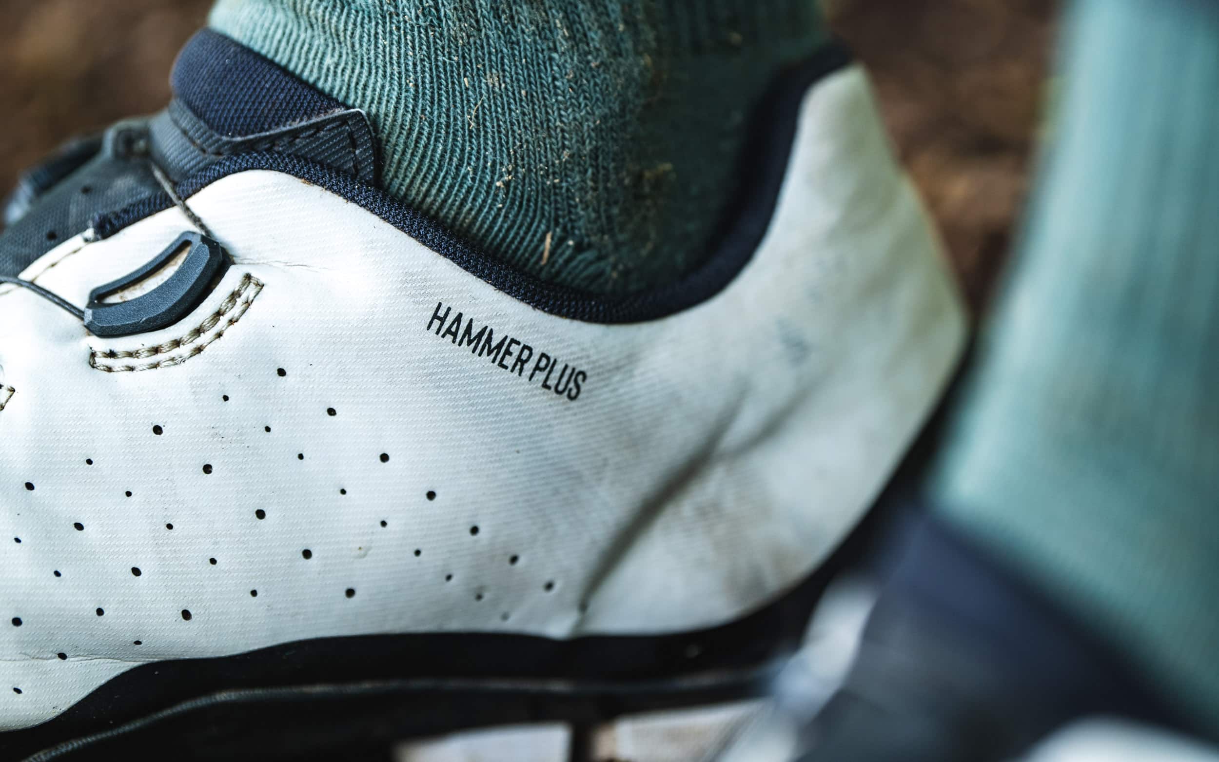 Et force est de constater que ces Hammer Plus ne nous ont pas déçus niveau confort. L’entrée au sein de la chaussure est facile avec une ouverture généreuse, et une fois les serrages réglés, le pied est parfaitement maintenu. On a cependant eu tendance à serrer un peu trop le X-Dial en début de sortie, et à le desserrer d’un clic ou deux en cours de route, mais cela se fait facilement en roulant. On notera également que la simple construction du talon (pas de coque rigide ou de silicone sur la partie interne) offre un confort très convaincant.
