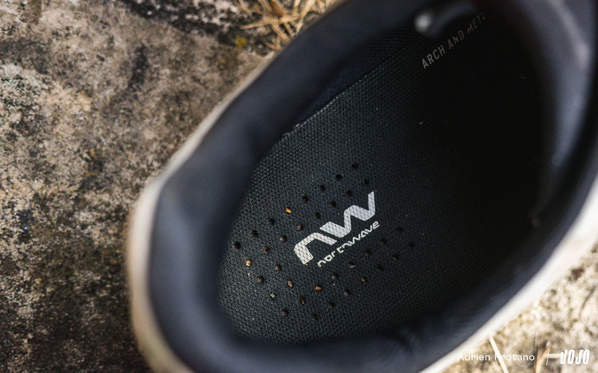 À notre avis, Northwave peut aller un cran plus loin également du côté de la semelle interne amovible. Si elle affiche déjà bien un « arch and metatarsal support », on pense que celui-ci pourrait être plus marqué. À titre d’exemple, nous avons eu la curiosité de remplacer les semelles d’origine par une paire en provenance de chez SQ-Lab et offrant un nettement meilleur support de la plante du pied. Les sensations n’en ont été qu’améliorées, tant au niveau du confort sur les plus longues sorties que du côté de la transmission de la puissance.