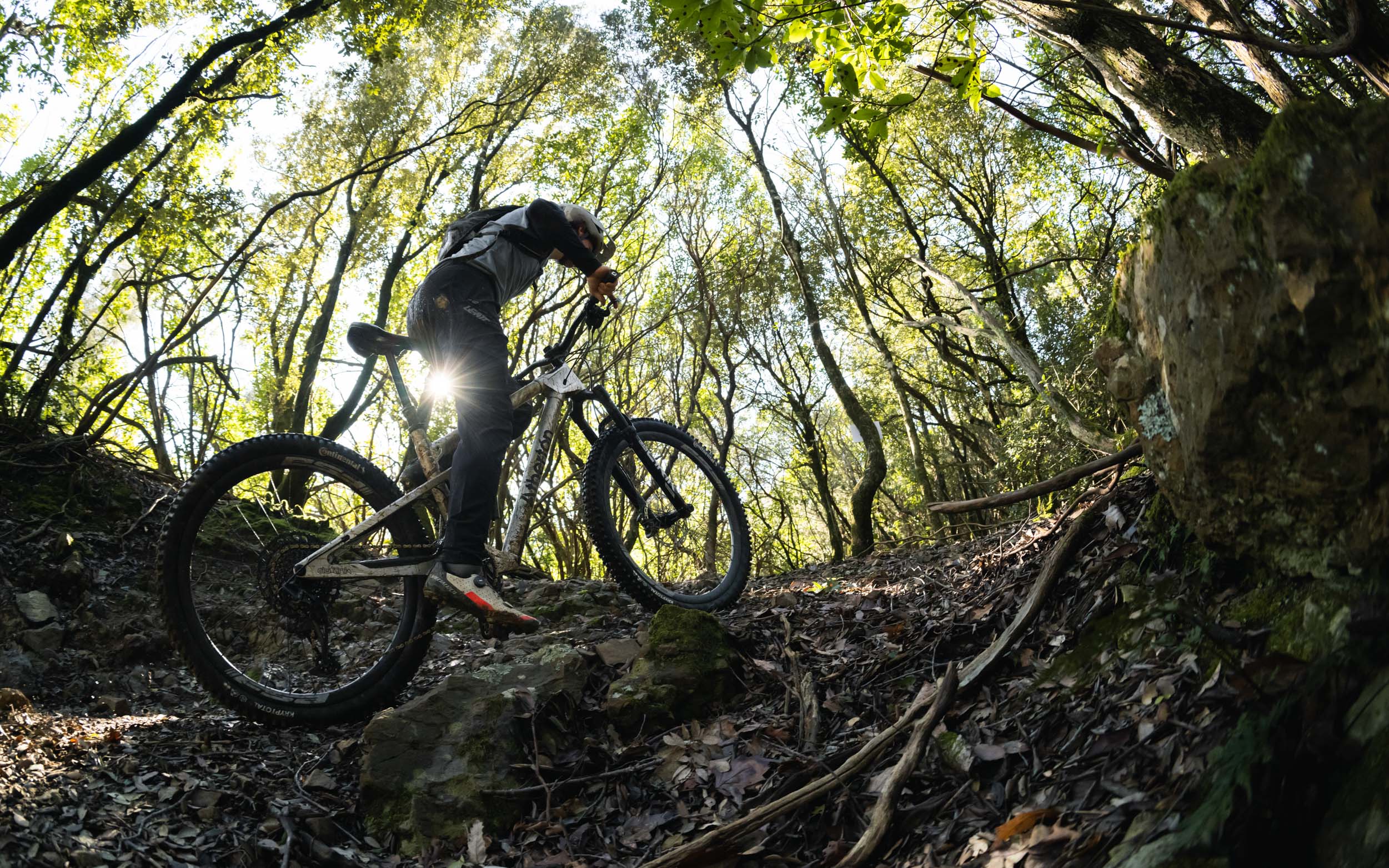 Pour notre taille d’un mètre 78 et nos préférences personnelles, c’est sur une taille S5, soit un reach de 455 mm, que nous avons grimpé pour cette première prise en main du S150. Mais avant de descendre les amusants singletracks qui nous entourent ici à Massa Marittima, il faut y accéder !