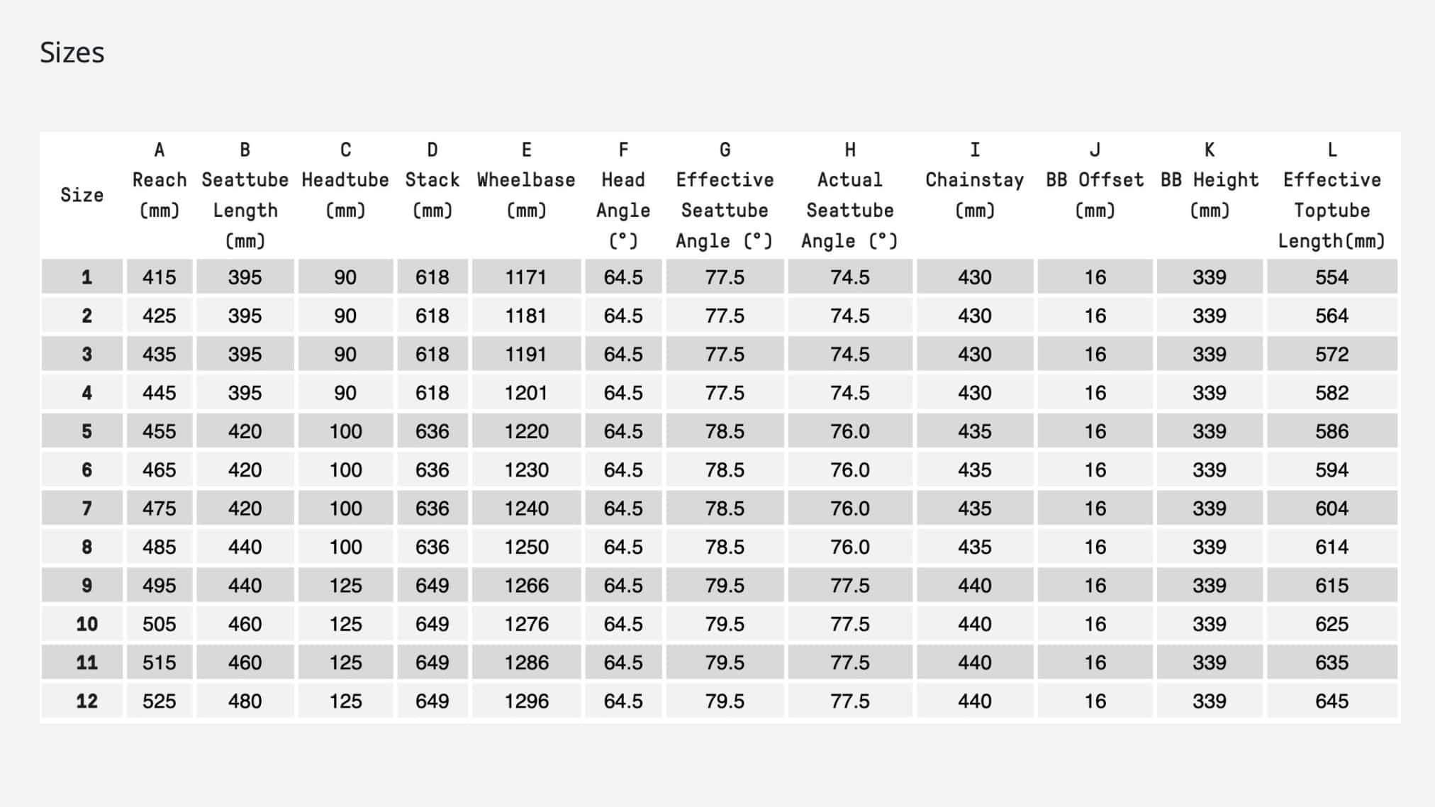 Pour ce S150, c’est ainsi 12 tailles de cadre que l’on retrouve, échelonnées en fonction du reach du vélo, les valeurs augmentant par intervalles de 10 mm entre les tailles de cadre. De quoi choisir un reach idéal en fonction de sa taille et de ses préférences, allant de 415 mm à 525 mm. Les bases grandissent également avec la taille du cadre, mais pas dans toutes les tailles – il existe trois longueurs de bases différentes pour les 12 tailles de cadre. Notre vélo d’essai en taille 5 affiche des bases de 435 mm.
