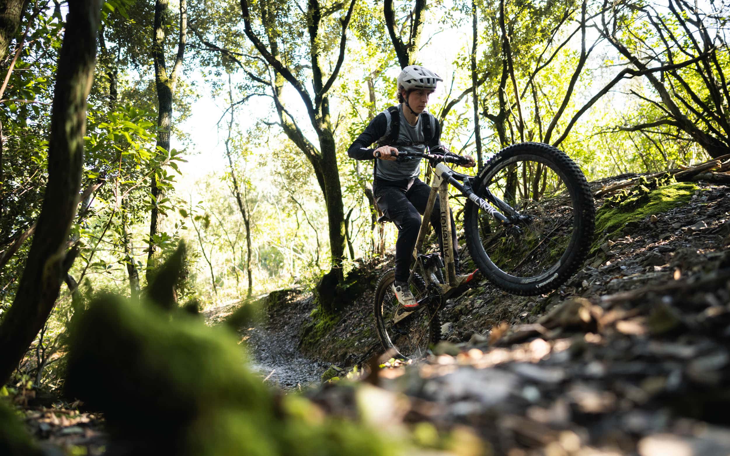 Après quelques spéciales débute le second temps dans notre prise en main de ce S150 : on a compris le mode d’emploi du S150 et on parvient à exploiter davantage le vélo, à en faire façon. Là, c’est une autre réalité qui s’ouvre à nous. La cinématique progressive et la bonne géométrie permettent d’avoir un joli mix entre grip, agilité, fun et stabilité. Sur les spéciales plus roulantes, on bascule d’un virage à l’autre avec aisance, on jette le vélo et tire des bunny-hops au-dessus d’obstacles pour jouer avec le terrain, c’est un vrai plaisir.