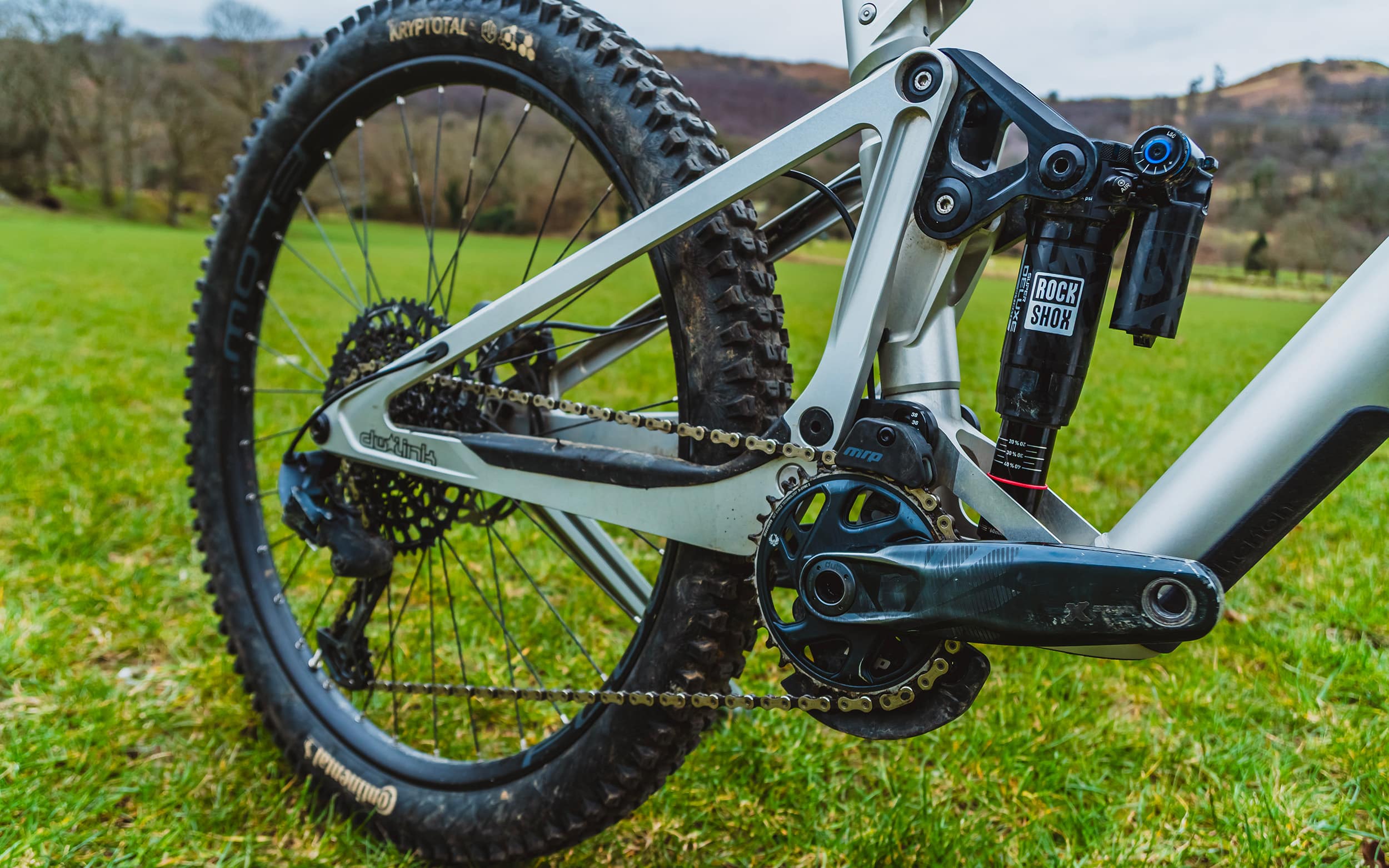 Notre modèle est équipé de suspensions RockShox, avec une fourche Lyrik Ultimate à l’avant de 160 mm de débattement et un amortisseur SuperDeluxe Ultimate développant 150 mm.