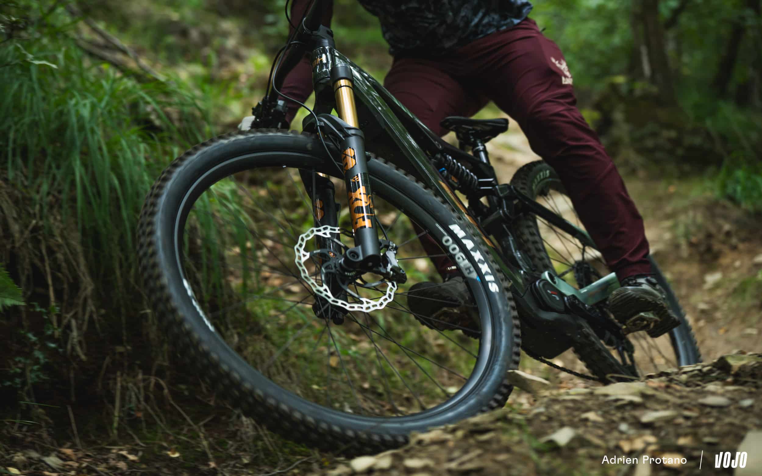 Les roues sont des DT Swiss H1900 TR, chaussées de pneus Maxxis Assegai / Minion DHR II EXO en 2.5/2.4″.