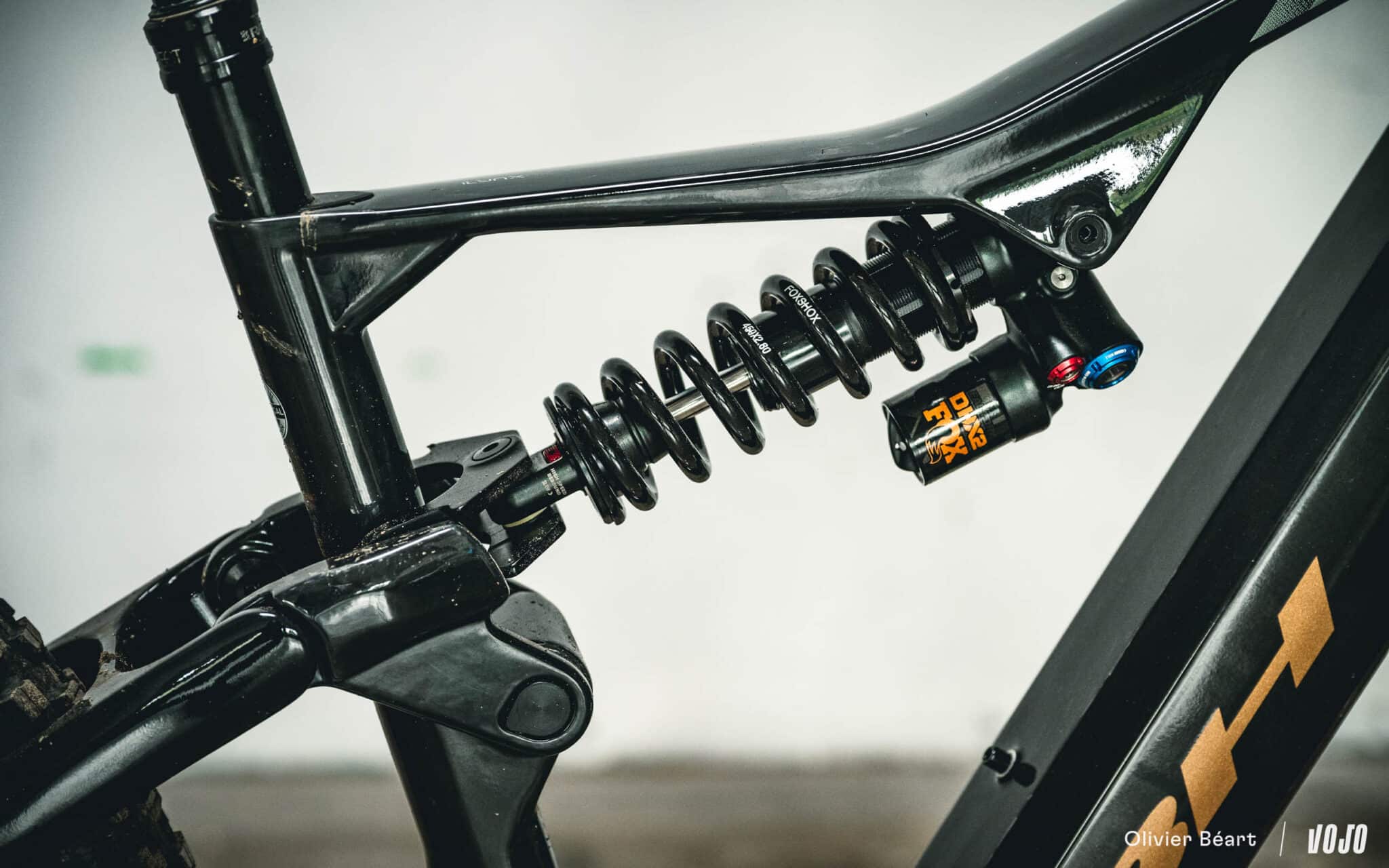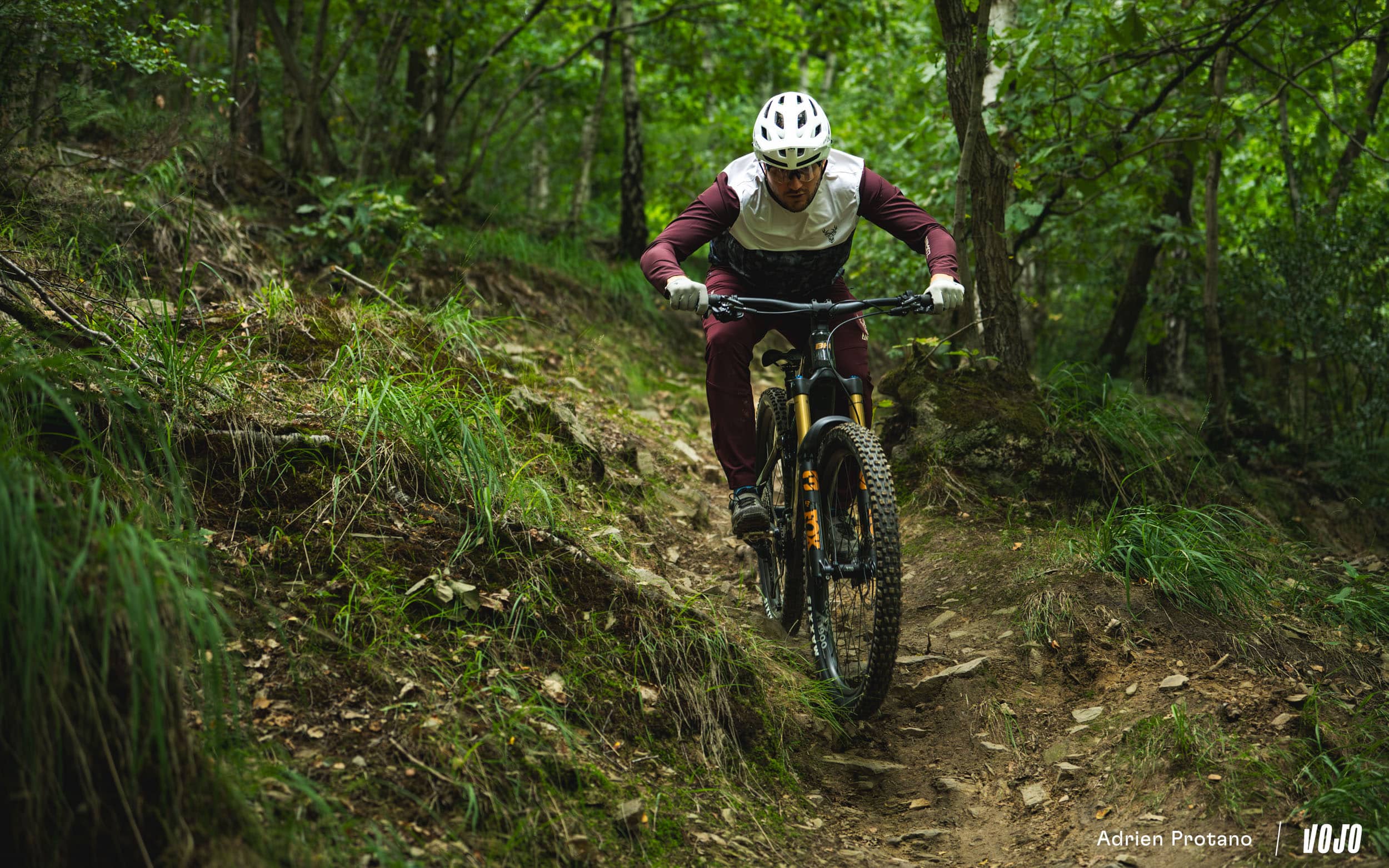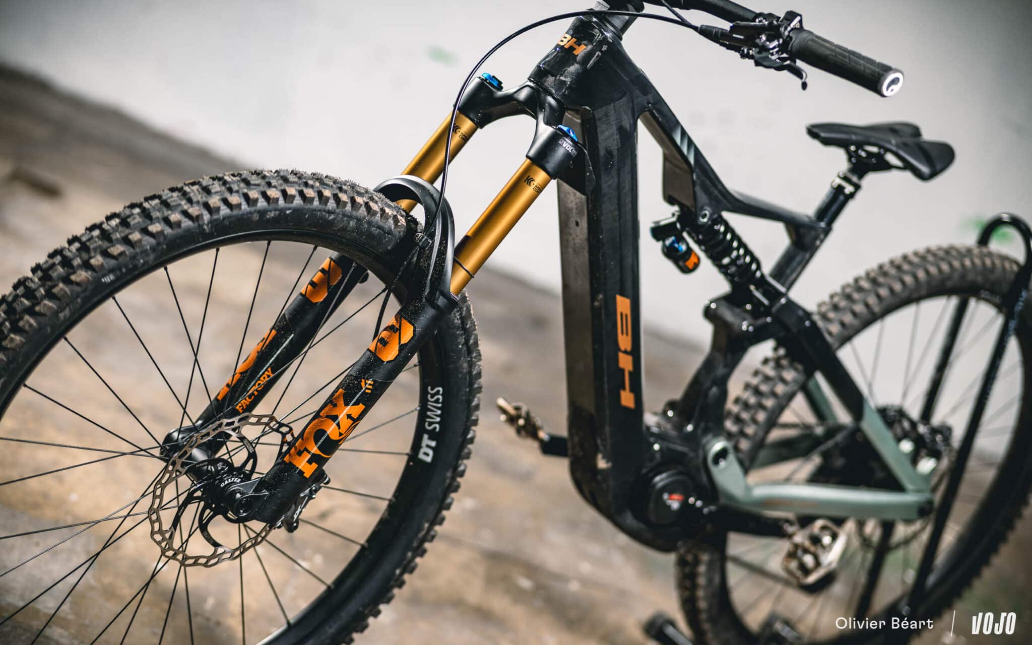 Cela met en lumière que le plus important sur une fourche, ce n’est pas son débattement, ni le diamètre de ses plongeurs, mais bien ce qu’il y a à l’intérieur. Et, ici, elle bride clairement les performances et l’agrément ressenti en descente. C’est dommage car le vélo marche déjà franchement bien tel quel et on a un large sourire quand on enchaîne les spéciales en descente, même si on sent que les bras fatiguent et que le châssis ne peut pas délivrer tout son potentiel. A propos du châssis, il faut souligner que le travail sur la rigidité du cadre est excellent : c’est assez rigide pour être précis et homogène, mais sans aucun excès, et on est sur un carbone conciliant qui filtre bien les vibrations sans verser dans la rigidité excessive.