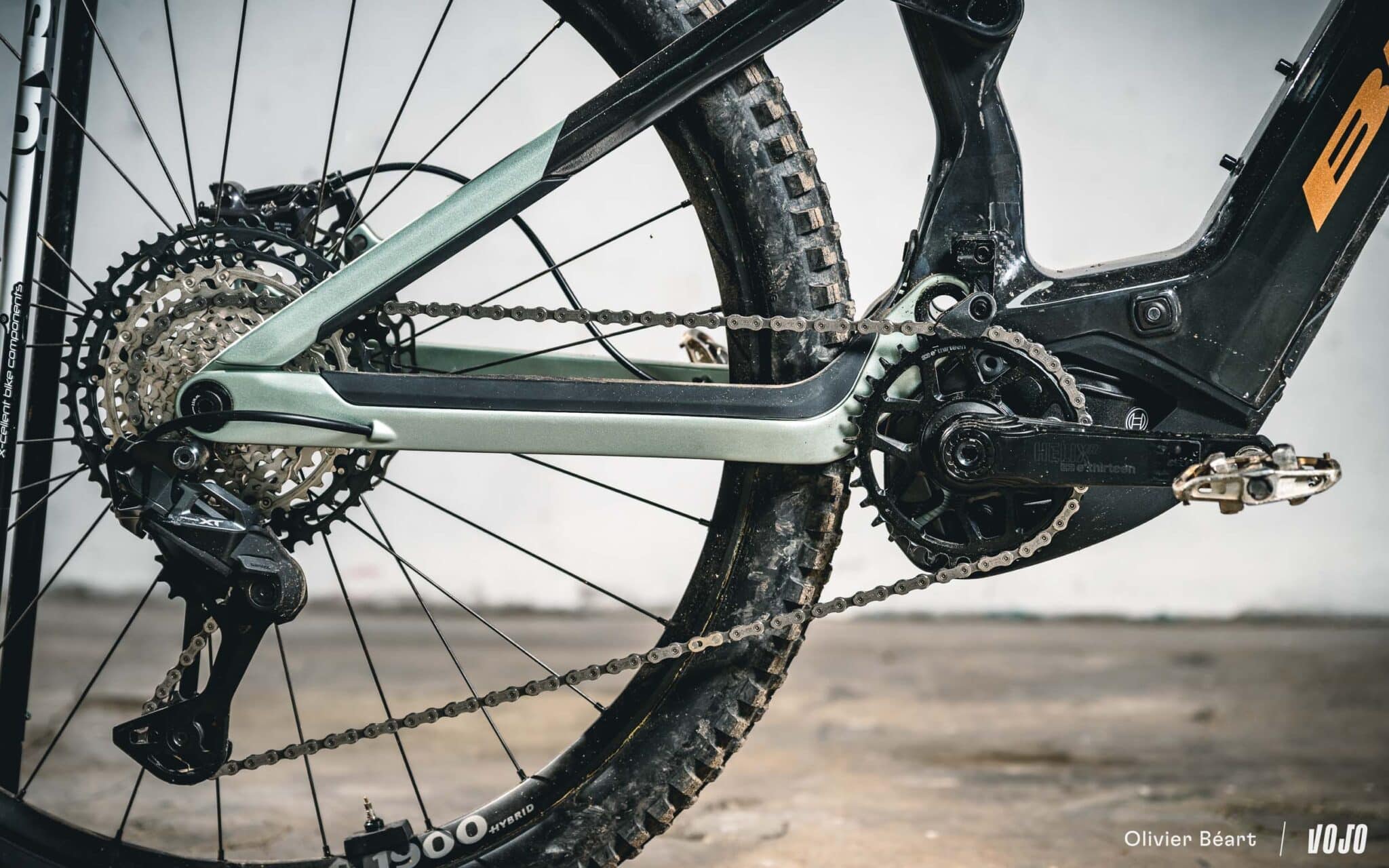 C’est la première fois que BH référence le Bosch Performance CX sur un de ses vélos… et on est tentés de dire : « il était temps » ! Avec la mise à jour 750 W / 100 Nm, il offre énormément de poigne et le mariage avec ce châssis BH iLynx est particulièrement heureux. La suspension arrière est exemplaire pour procurer beaucoup de grip, ce qui permet de maîtriser aisément la puissance et le couple de ce moteur qui renforce encore plus son caractère de (grosse) main de fer dans un gant de velours. Nous avons en tout cas pris énormément de plaisir dans les côtes techniques, avec un vélo qui sait se montrer subtil quand il faut piloter finement et envoyer la sauce quand c’est très raide et/ou qu’on veut grimper plus vite. Nous reviendrons plus en détail très rapidement sur cette mise à jour du moteur Bosch Performance CX, mais ce qu’on retient ici, c’est que la rencontre avec le châssis BH est très naturelle et qu’on a un vélo encore plus efficace que la version en moteur Shimano.